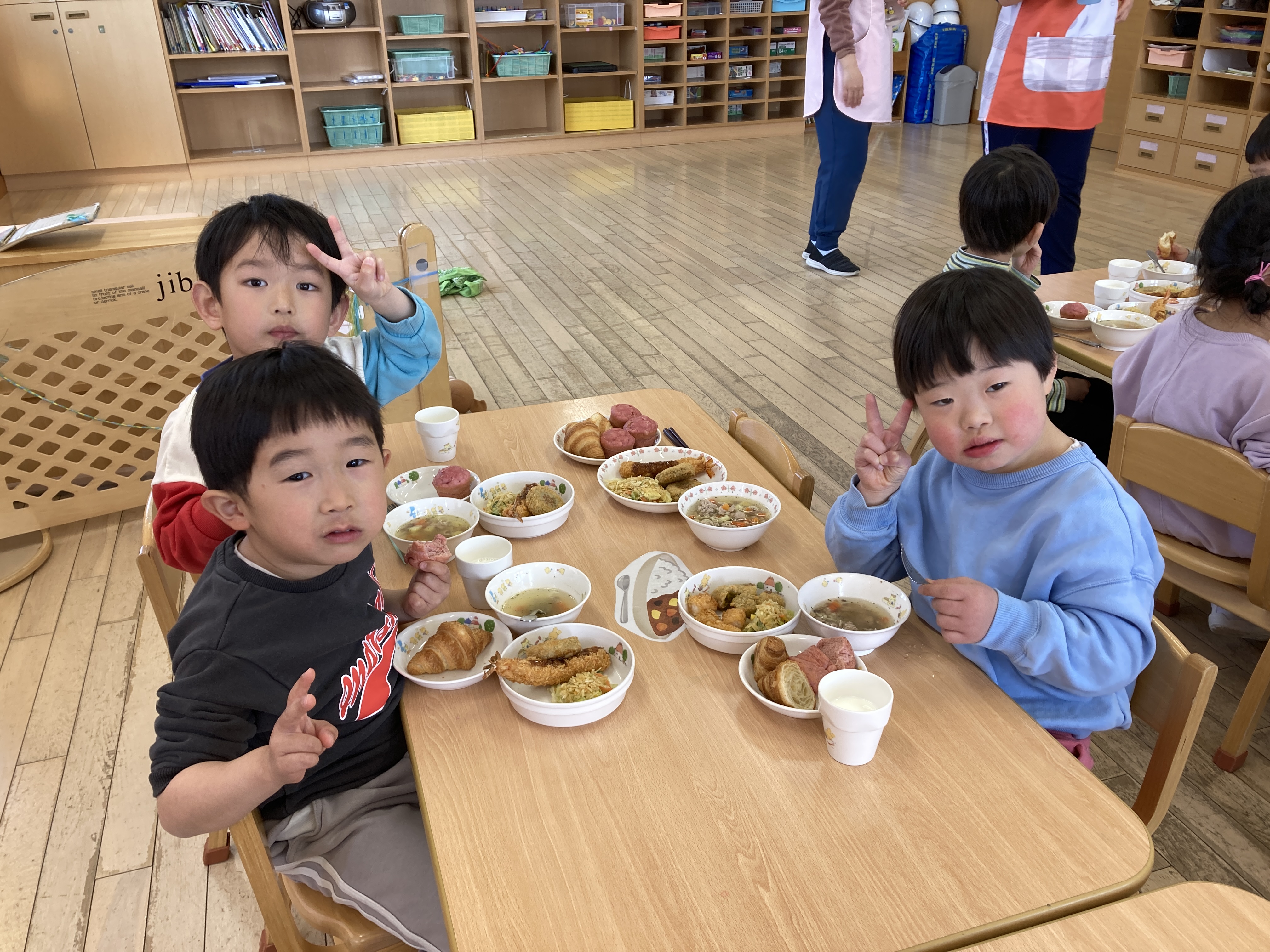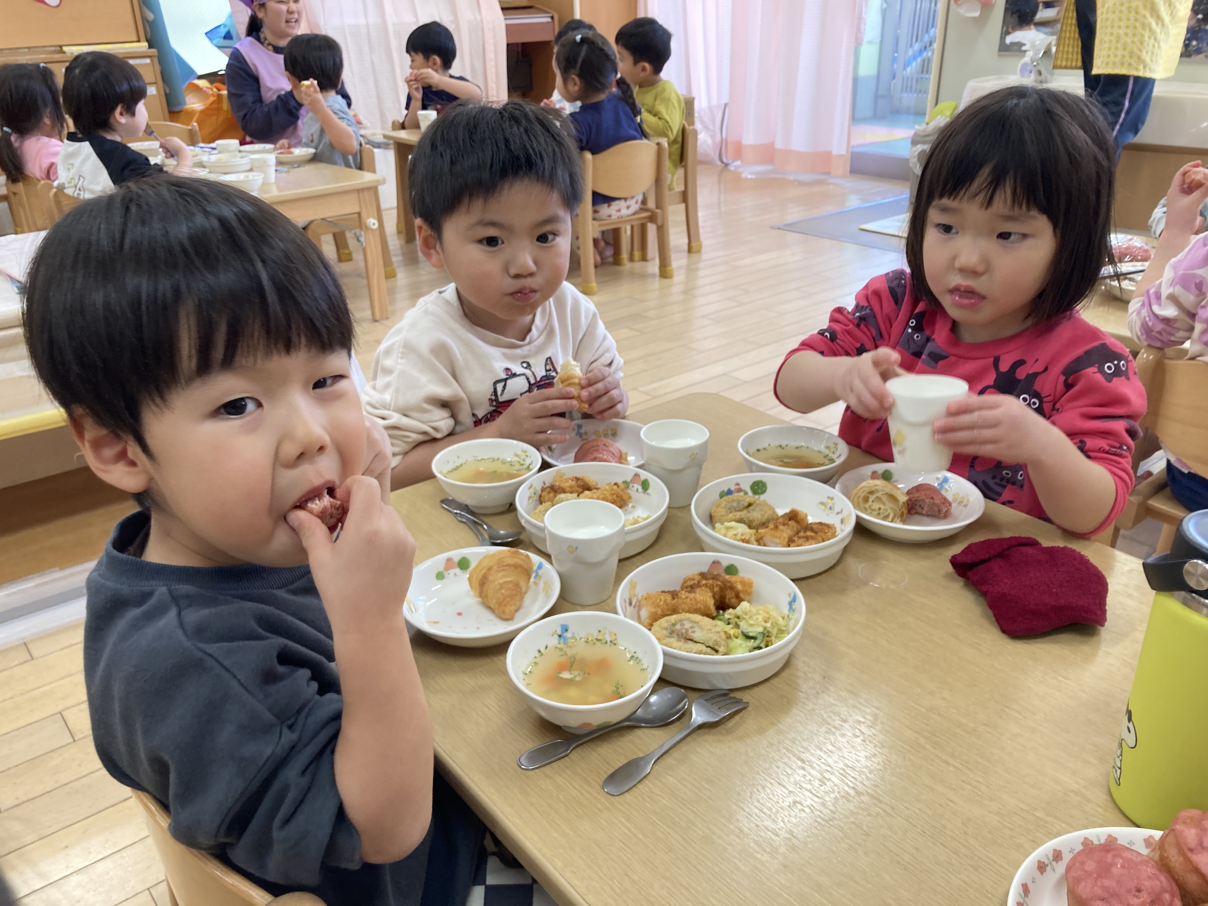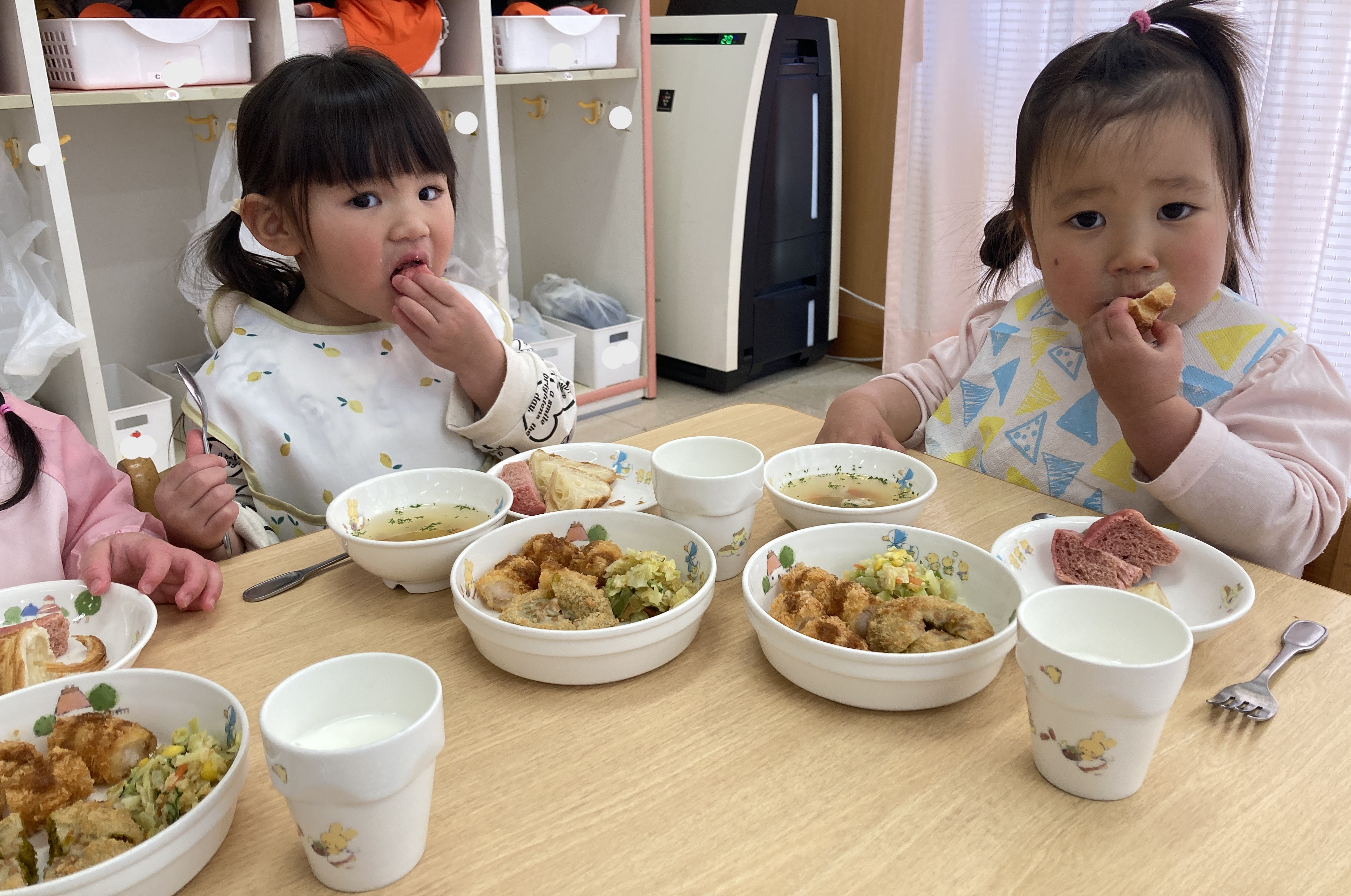 1.2歳のお友だちは、大きなお口で美味しそうに食べていました。