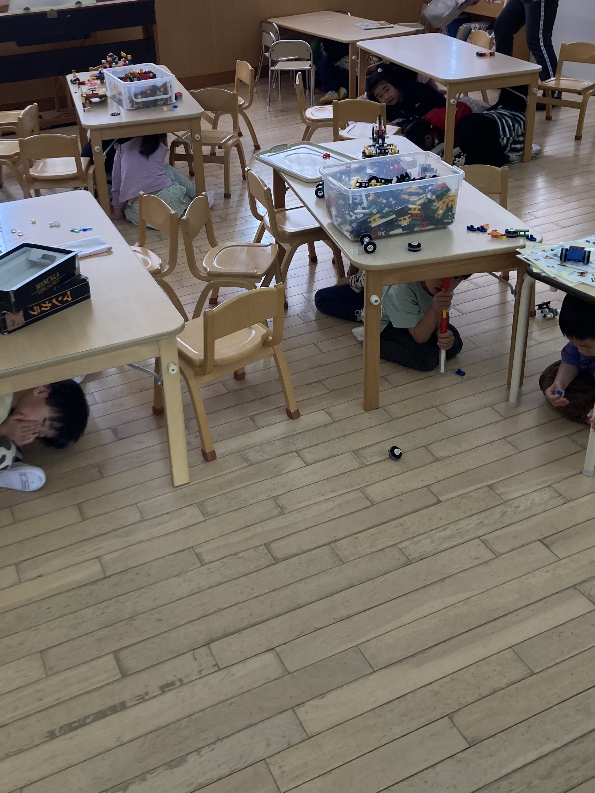 放送が流れると、子ども達は真剣な表情で話を聞き、揺れがおさまる放送が流れるまで、机の下で待機する事が出来ました。