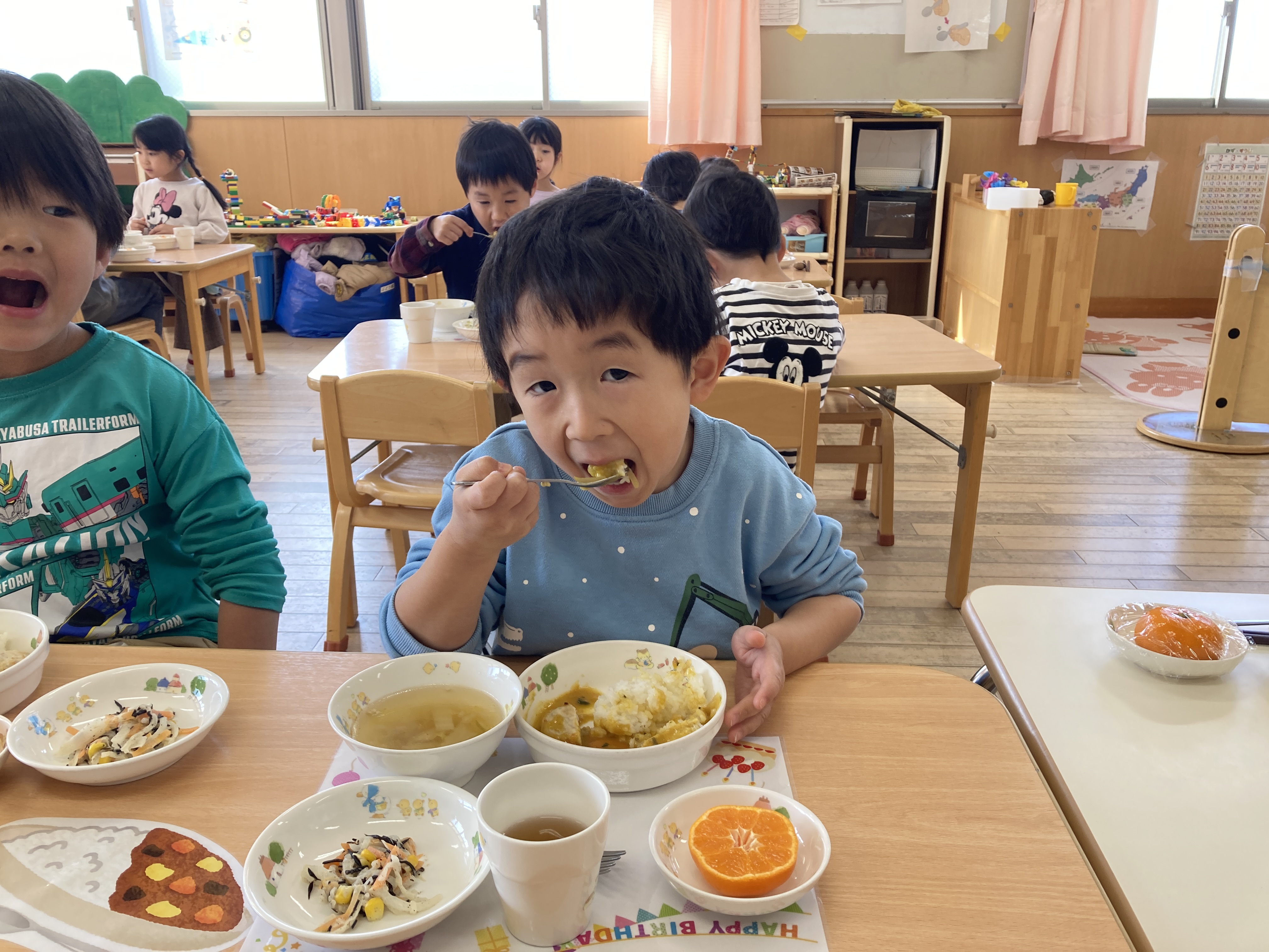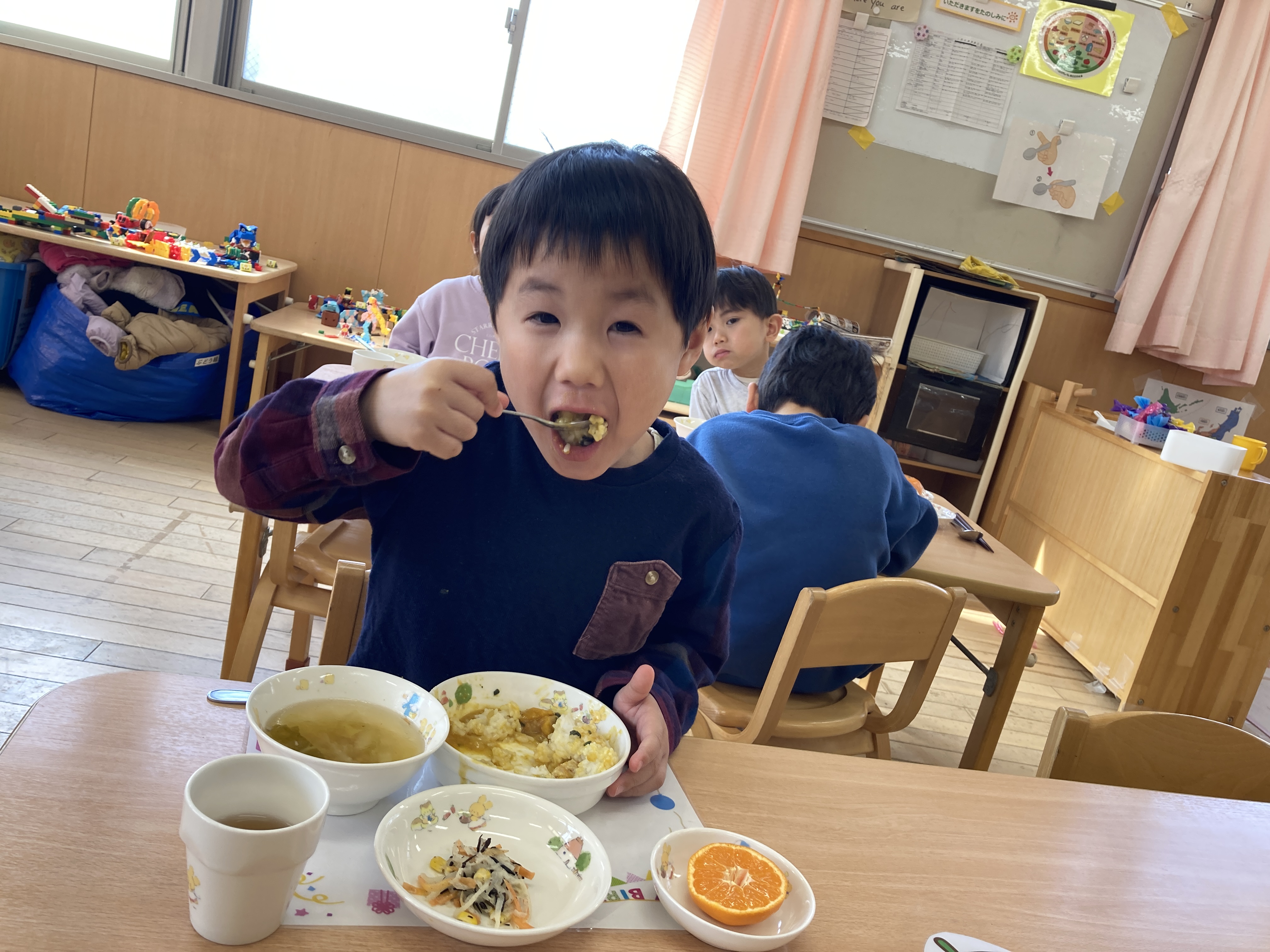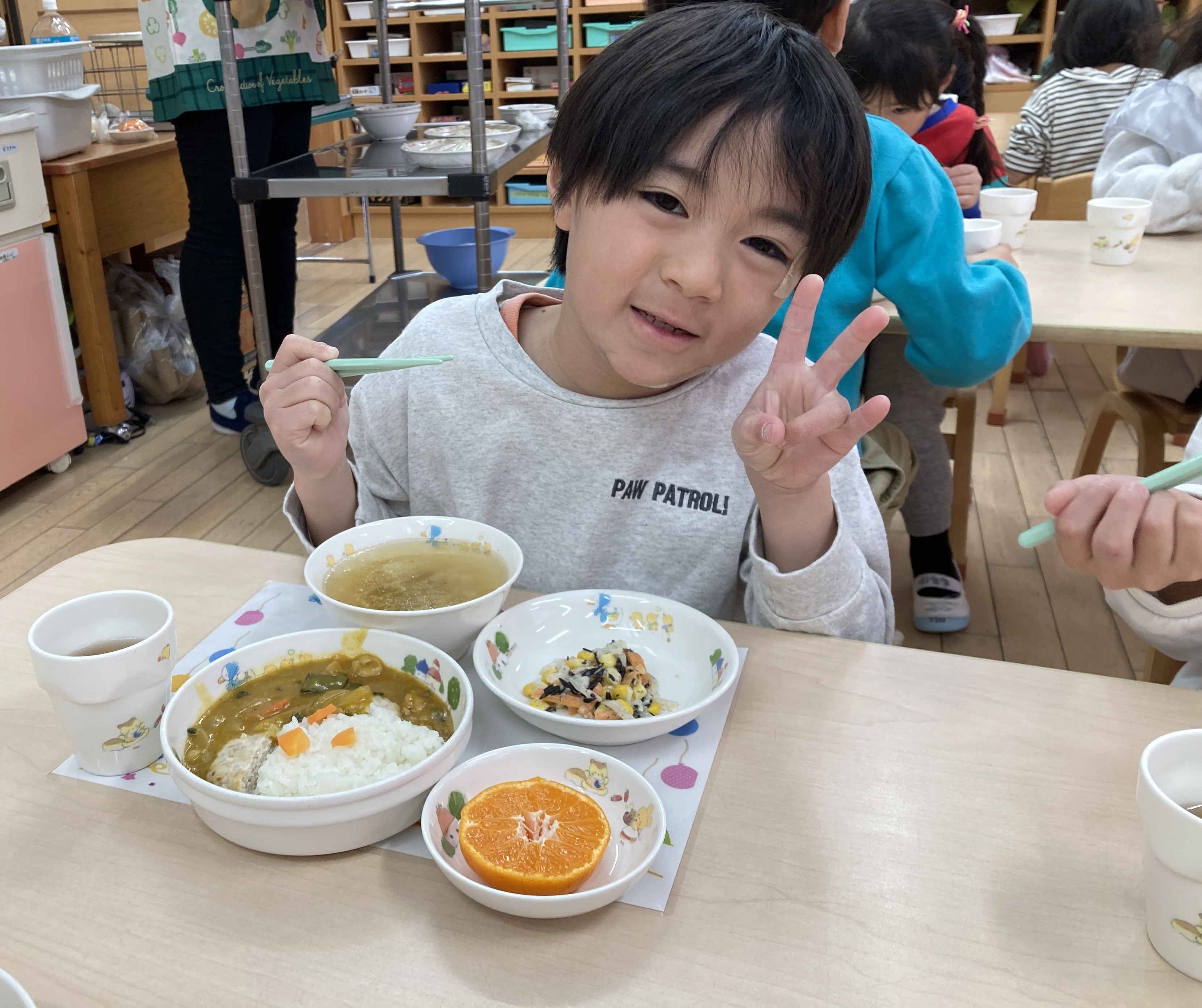 カボチャが入っているのでほんのり甘さがあり、ボリュームのあるカレーで子どもたちはペロっと食べていました。