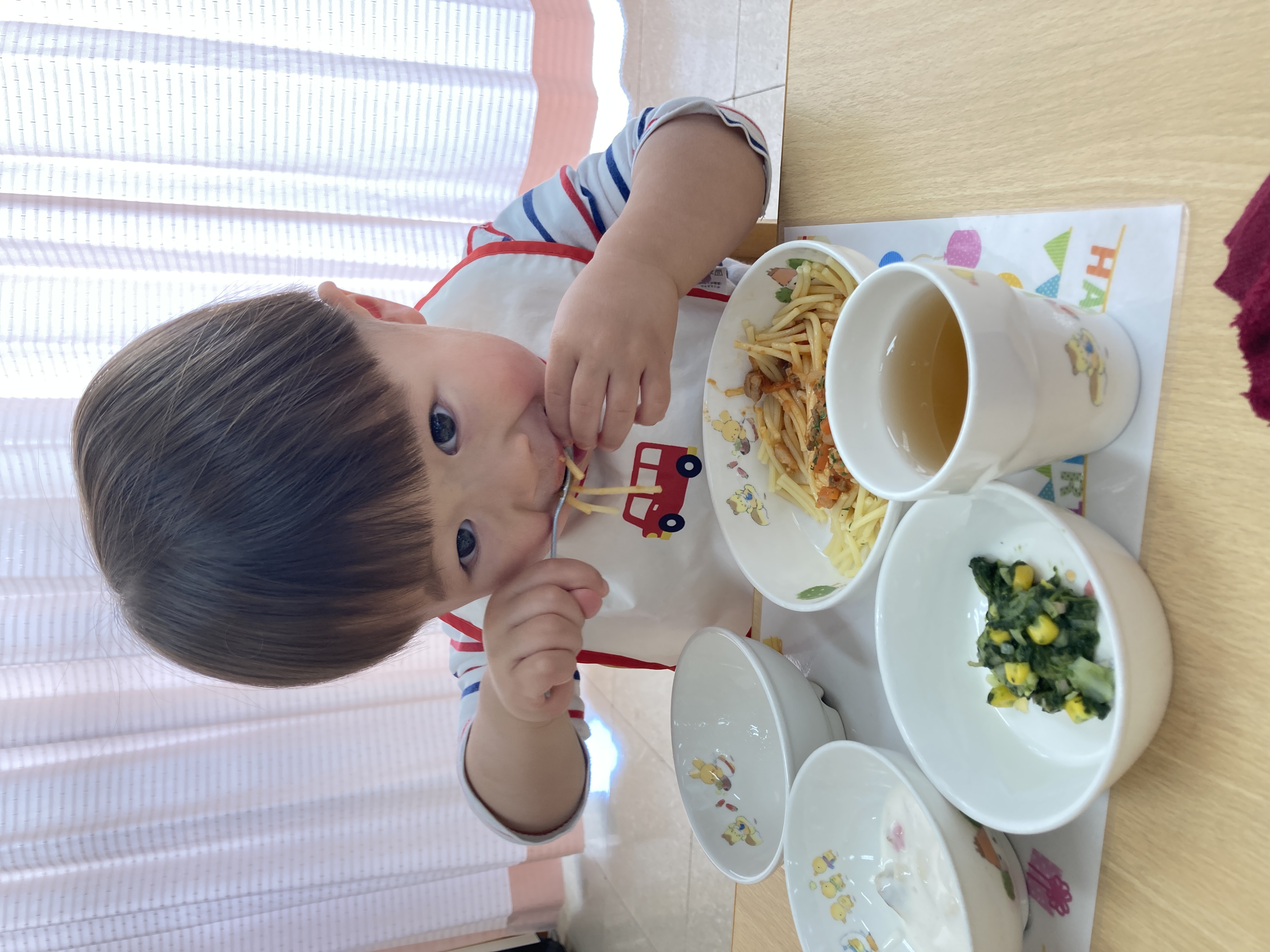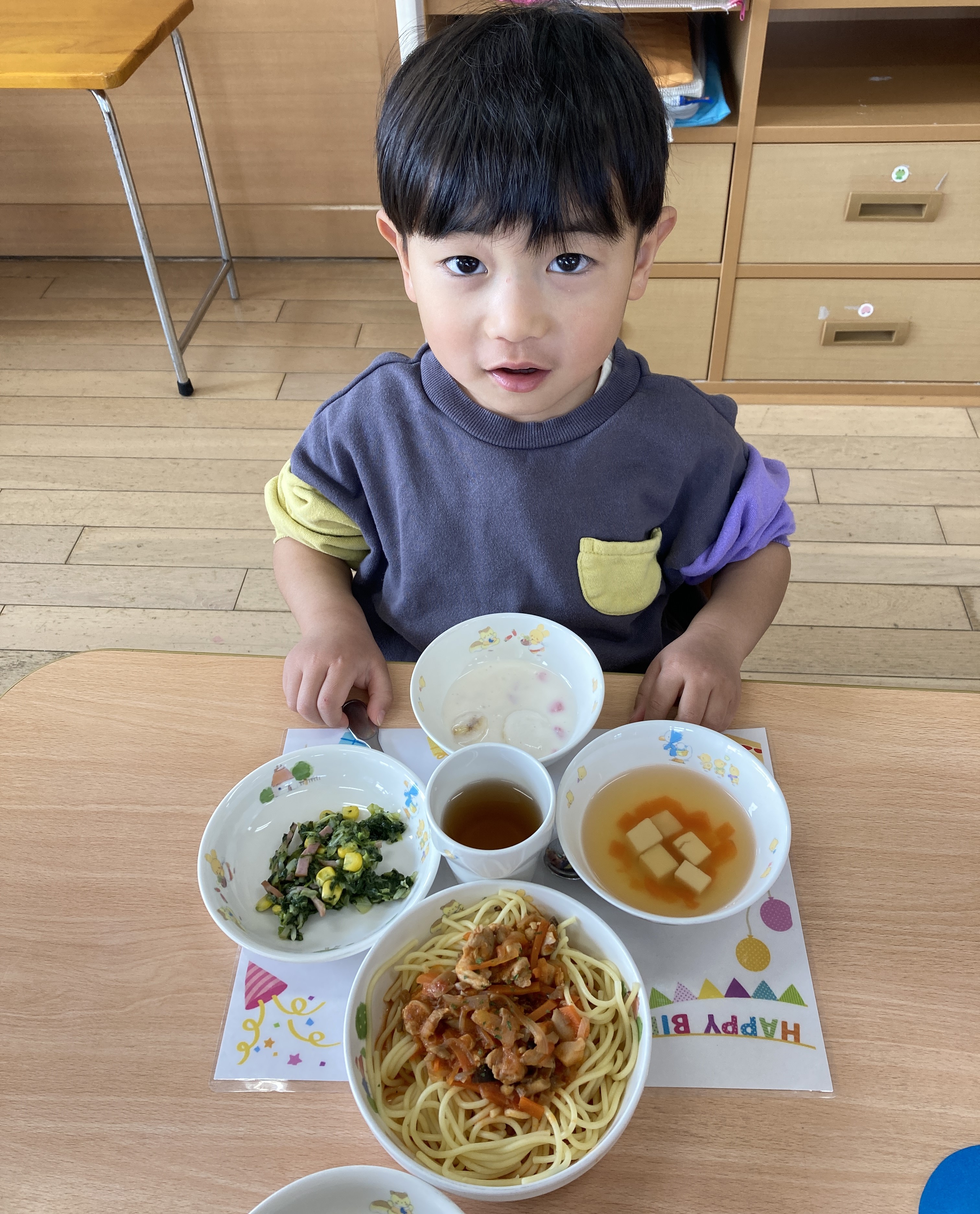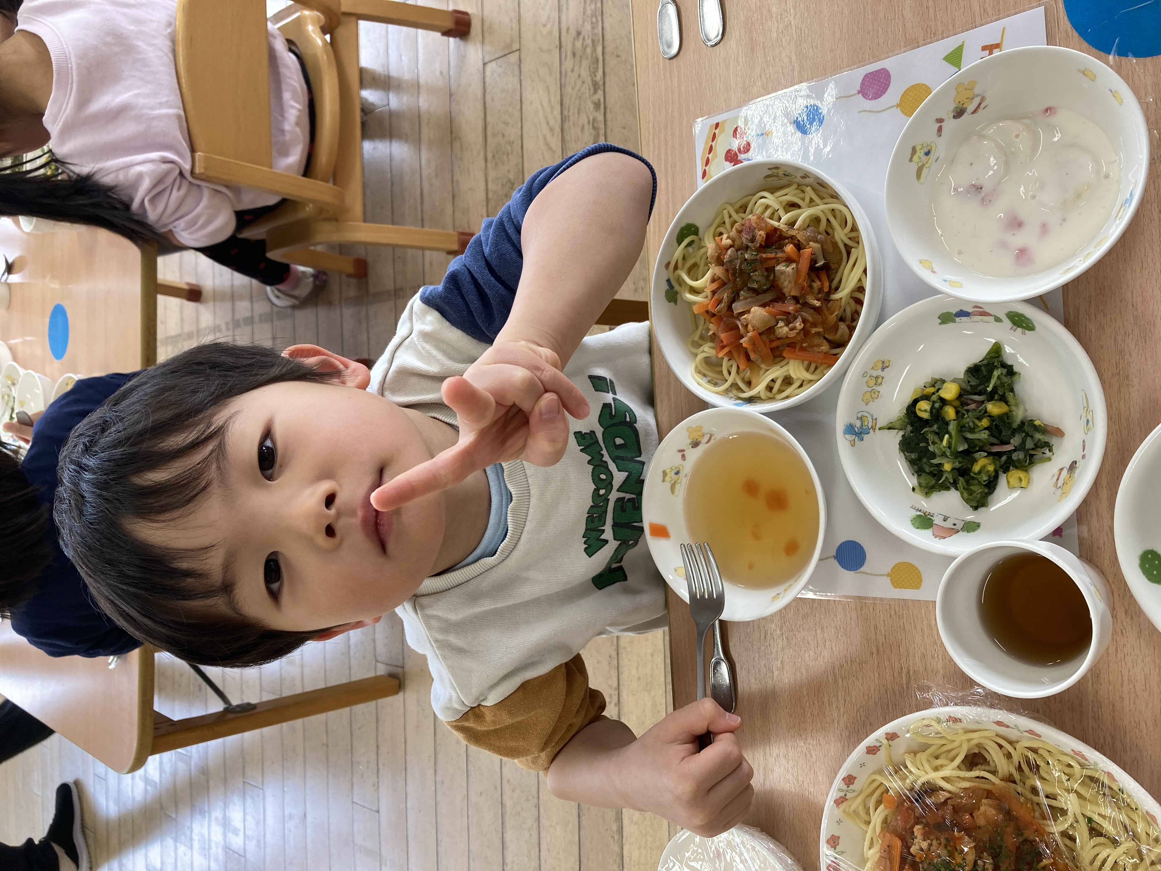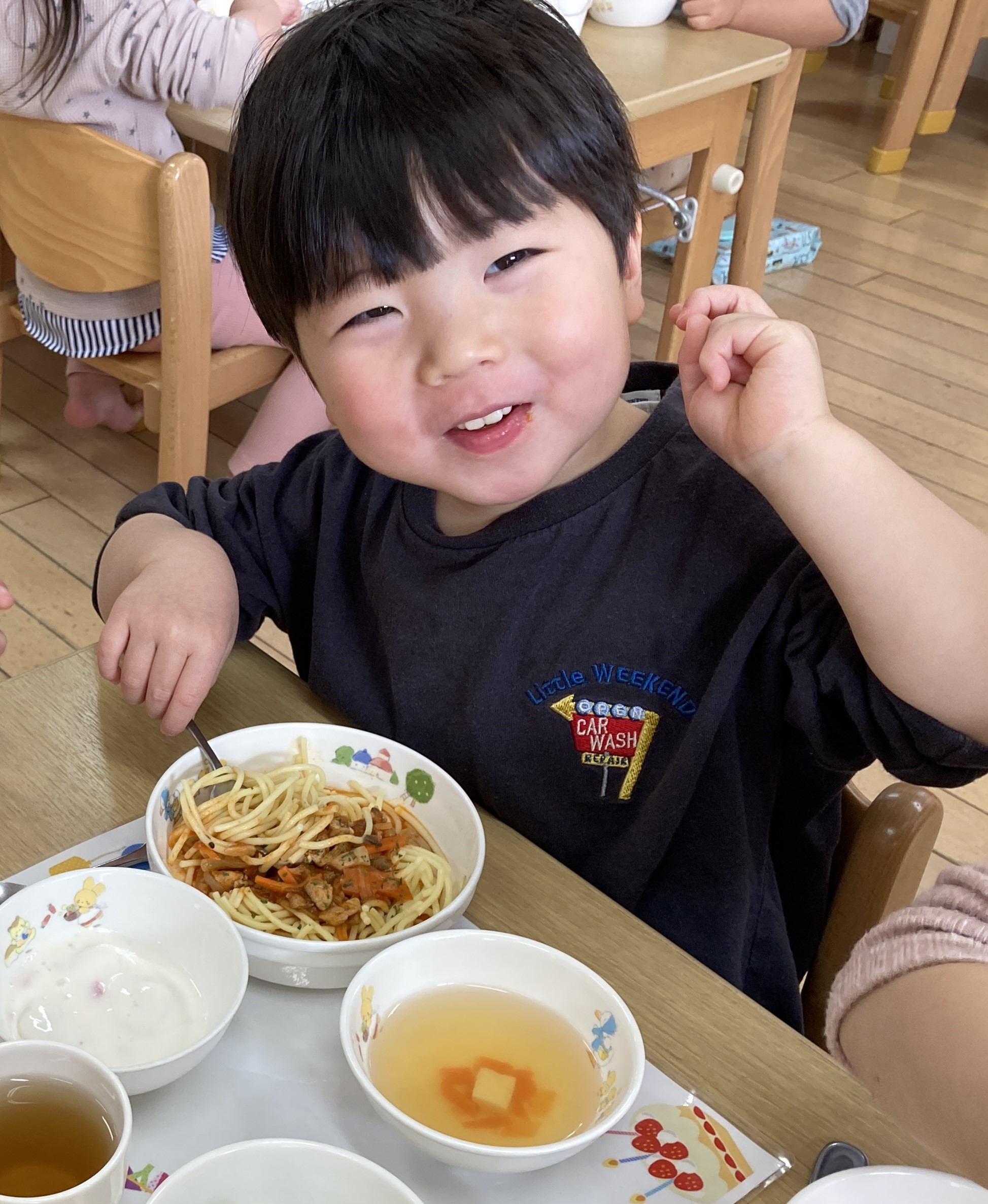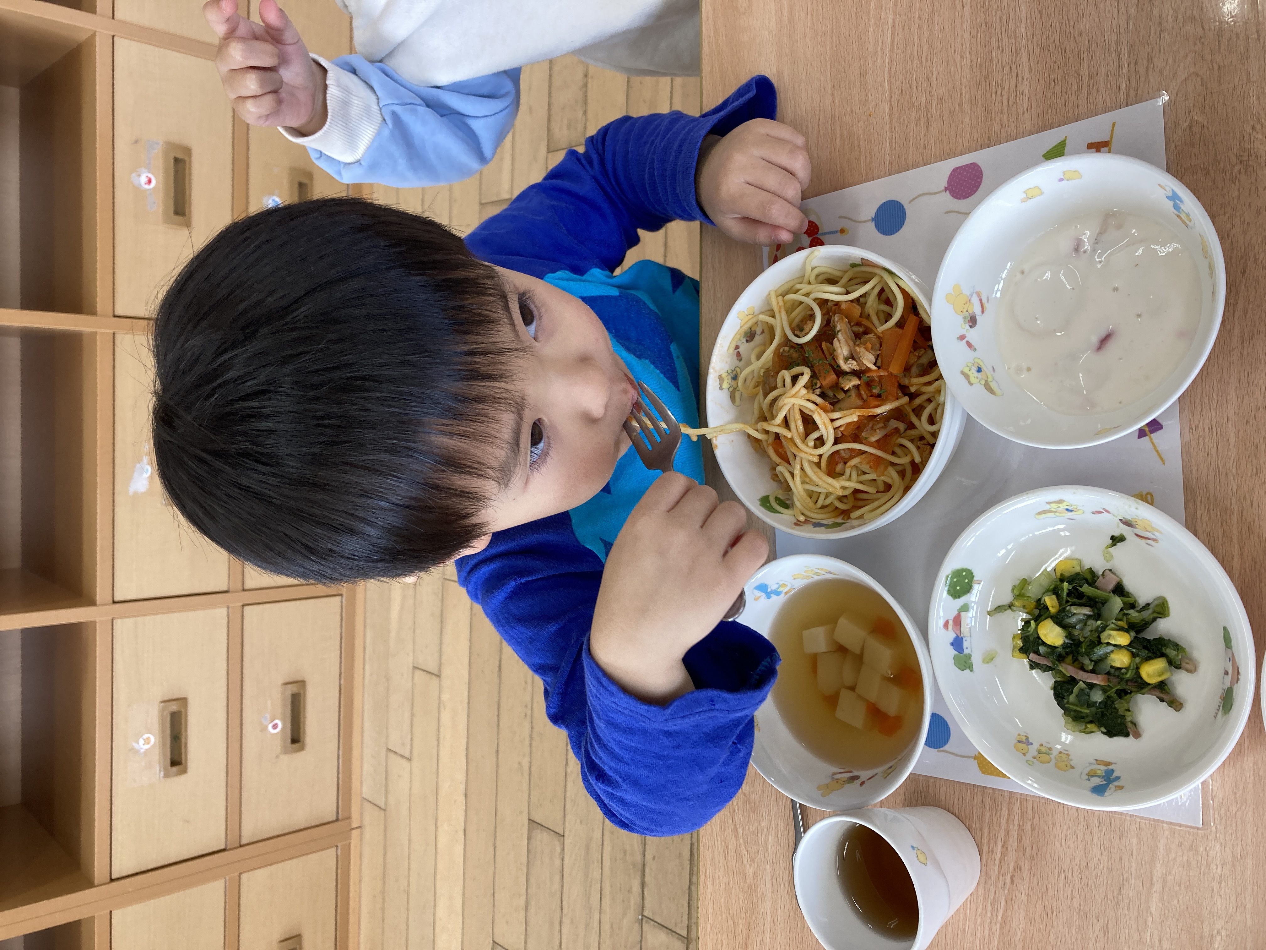 今日のメニューには「ポパイサラダ」があり、名前を聞いて「ポパイ?」と不思議そうな顔の子ども達。