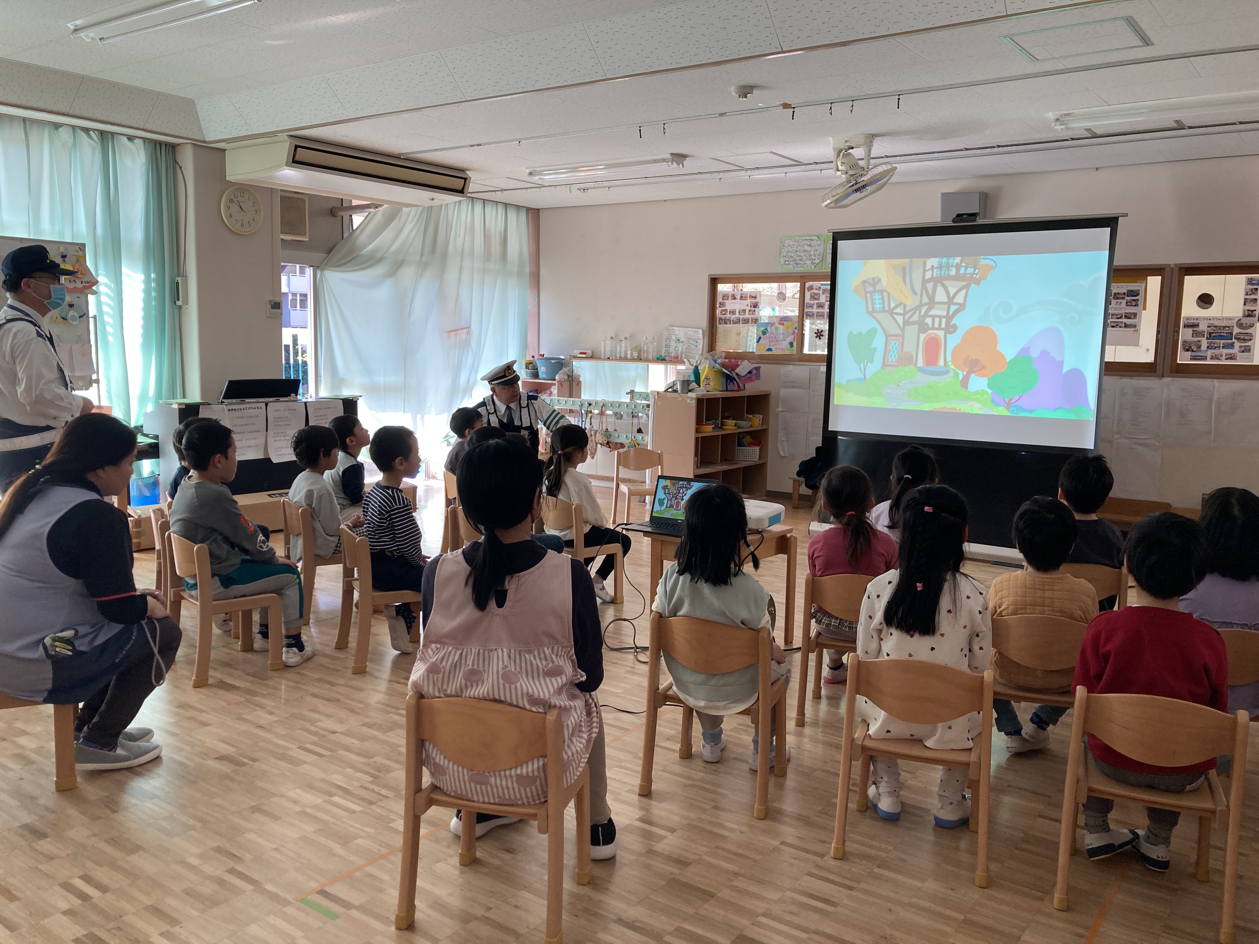 最後には5歳児の保育室で交通安全のDVDを見ました。