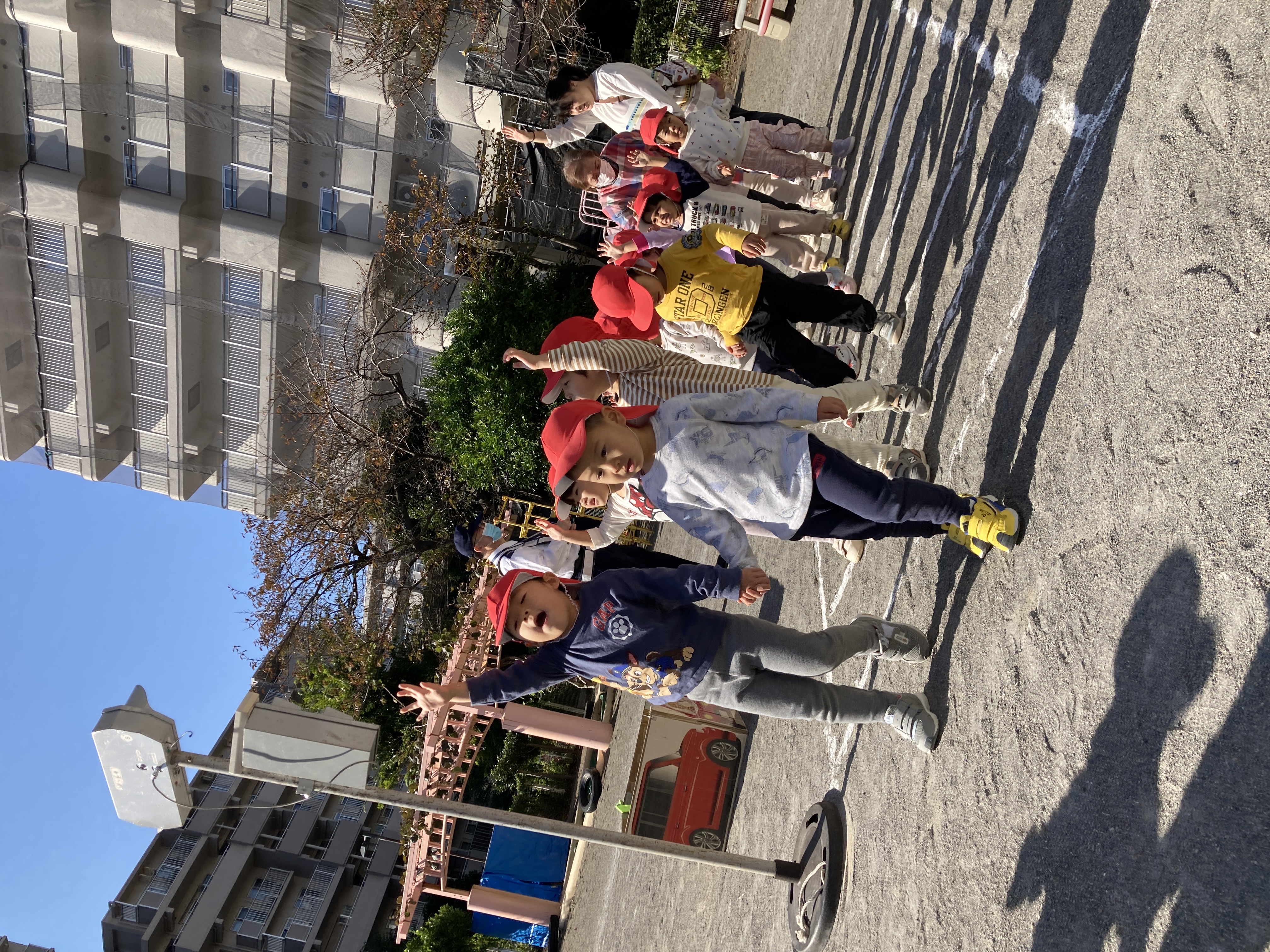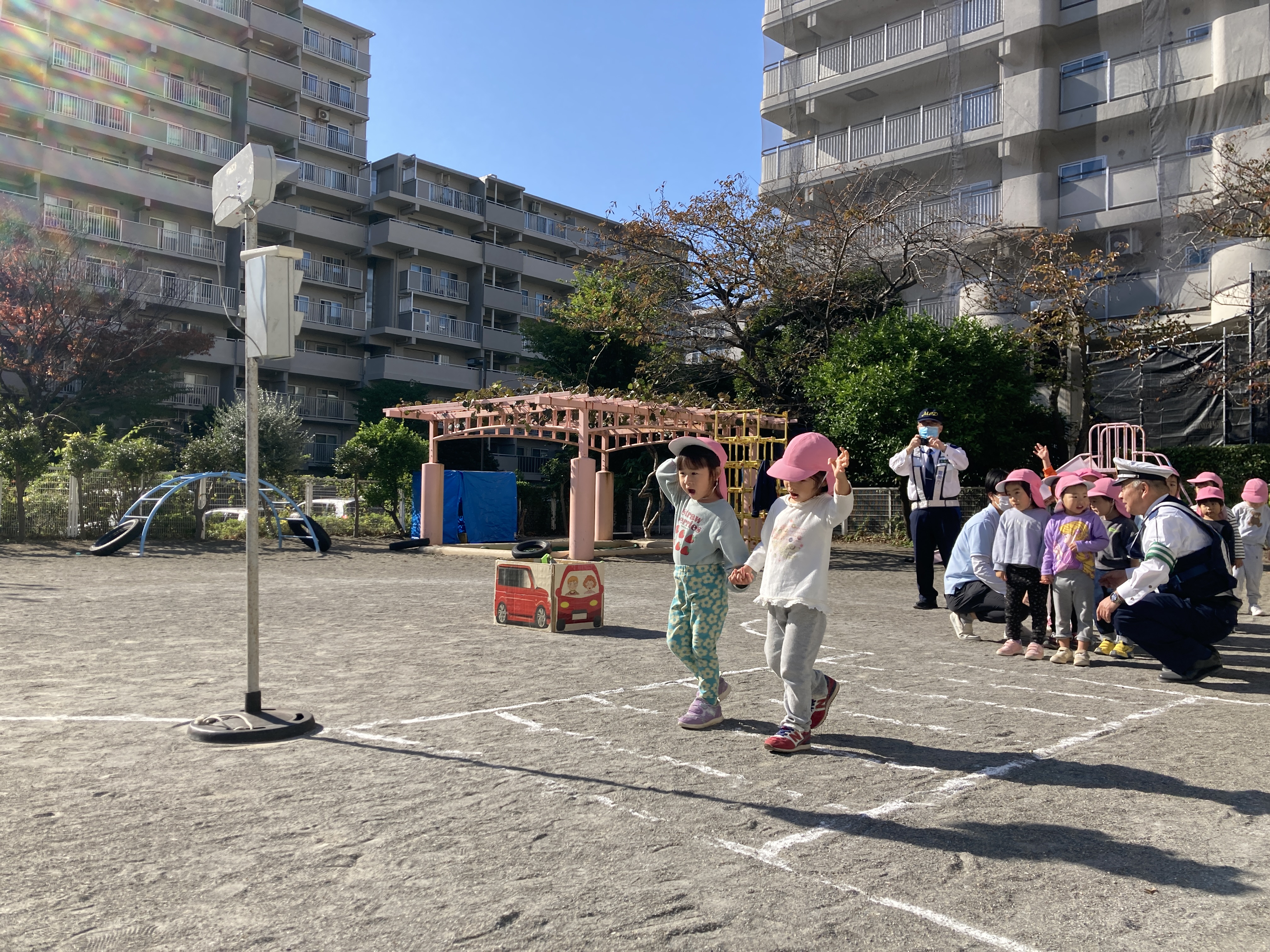 元気よく手をまっすぐ上げて上手に渡ることが出来ました。