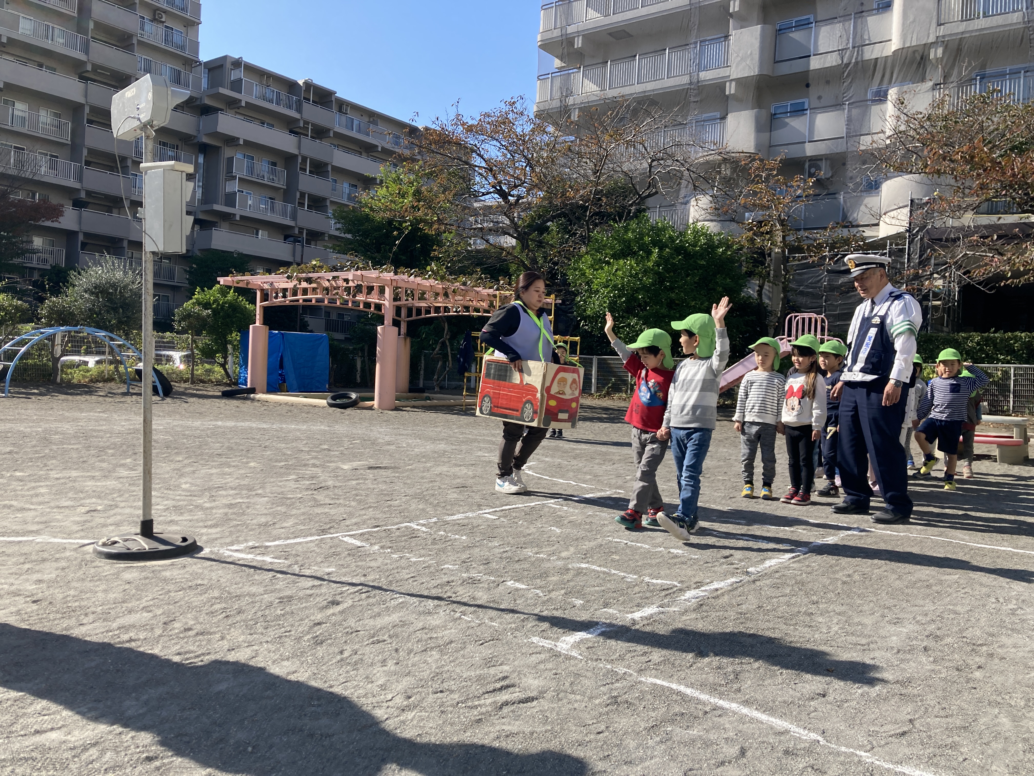 交通ルールを守ってお散歩を楽しんでいる子どもたち。