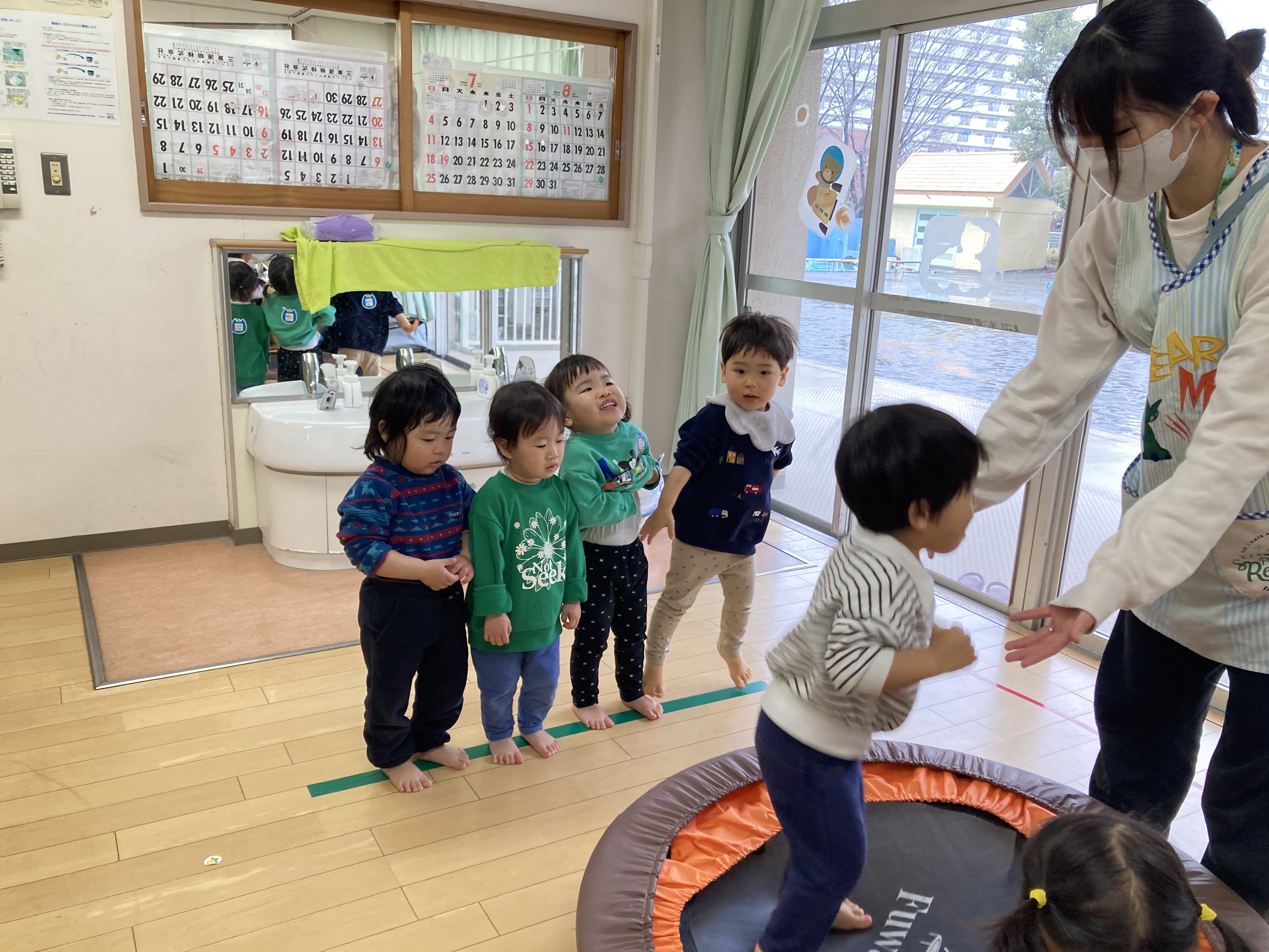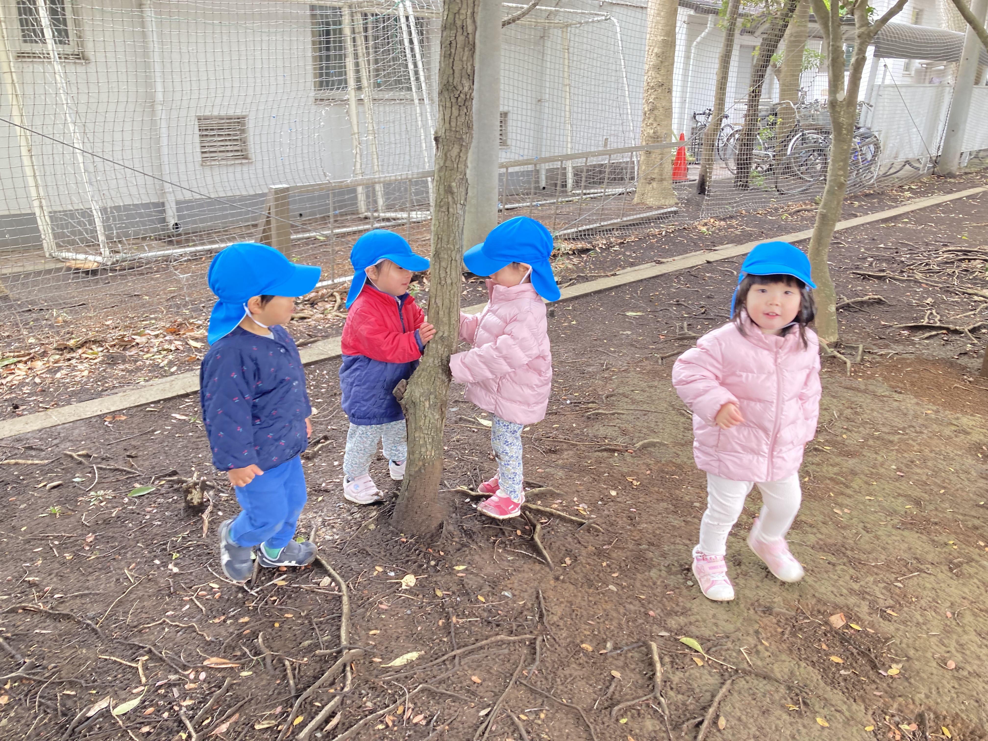 気温がぐっと下がり雪が降る日もあった2月でしたが、いちご組のお友だちはそんな中でも元気いっぱい!