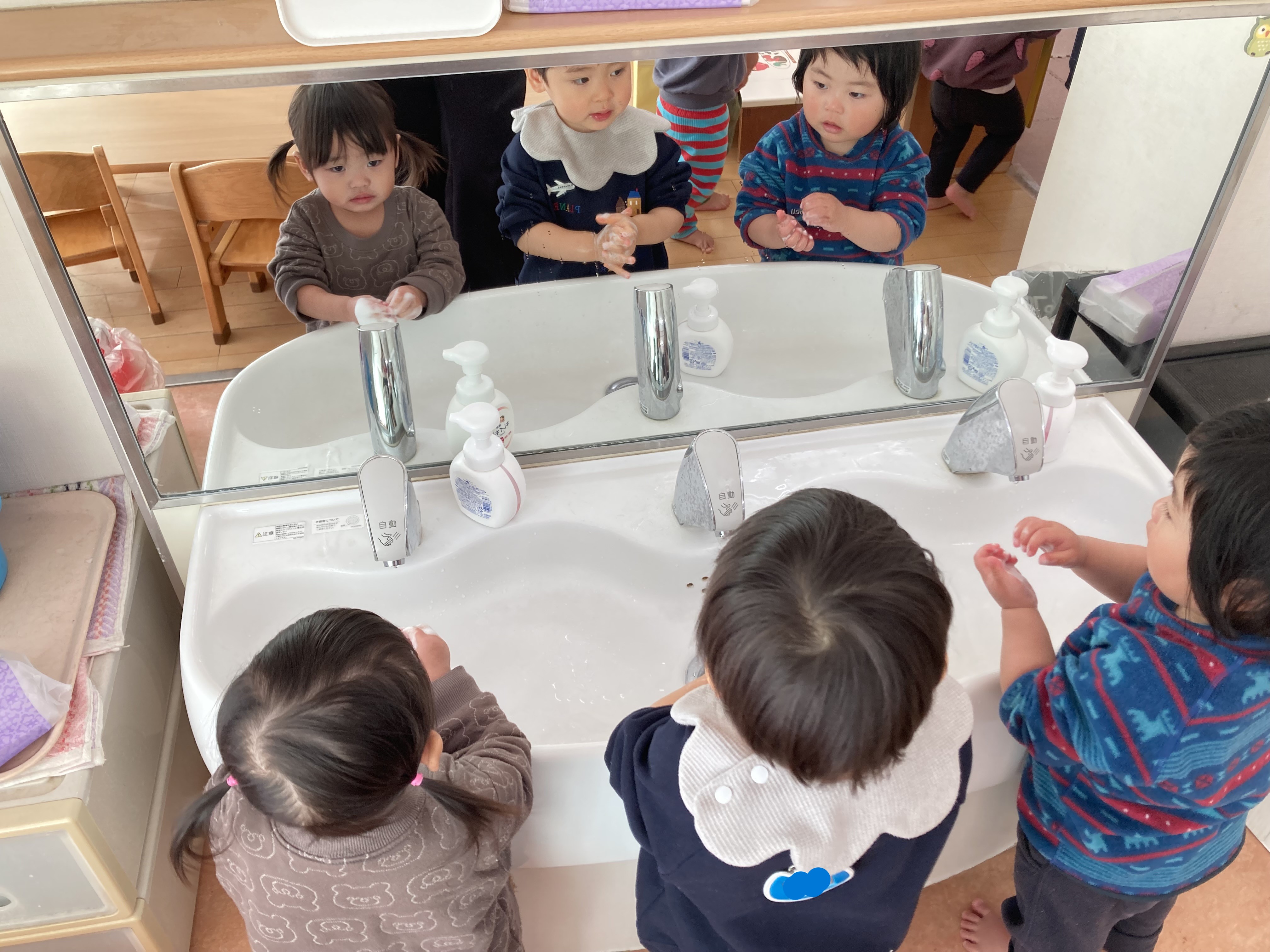 沢山遊んだあとは、手洗い教室で教わった手洗いも上手に行っています。