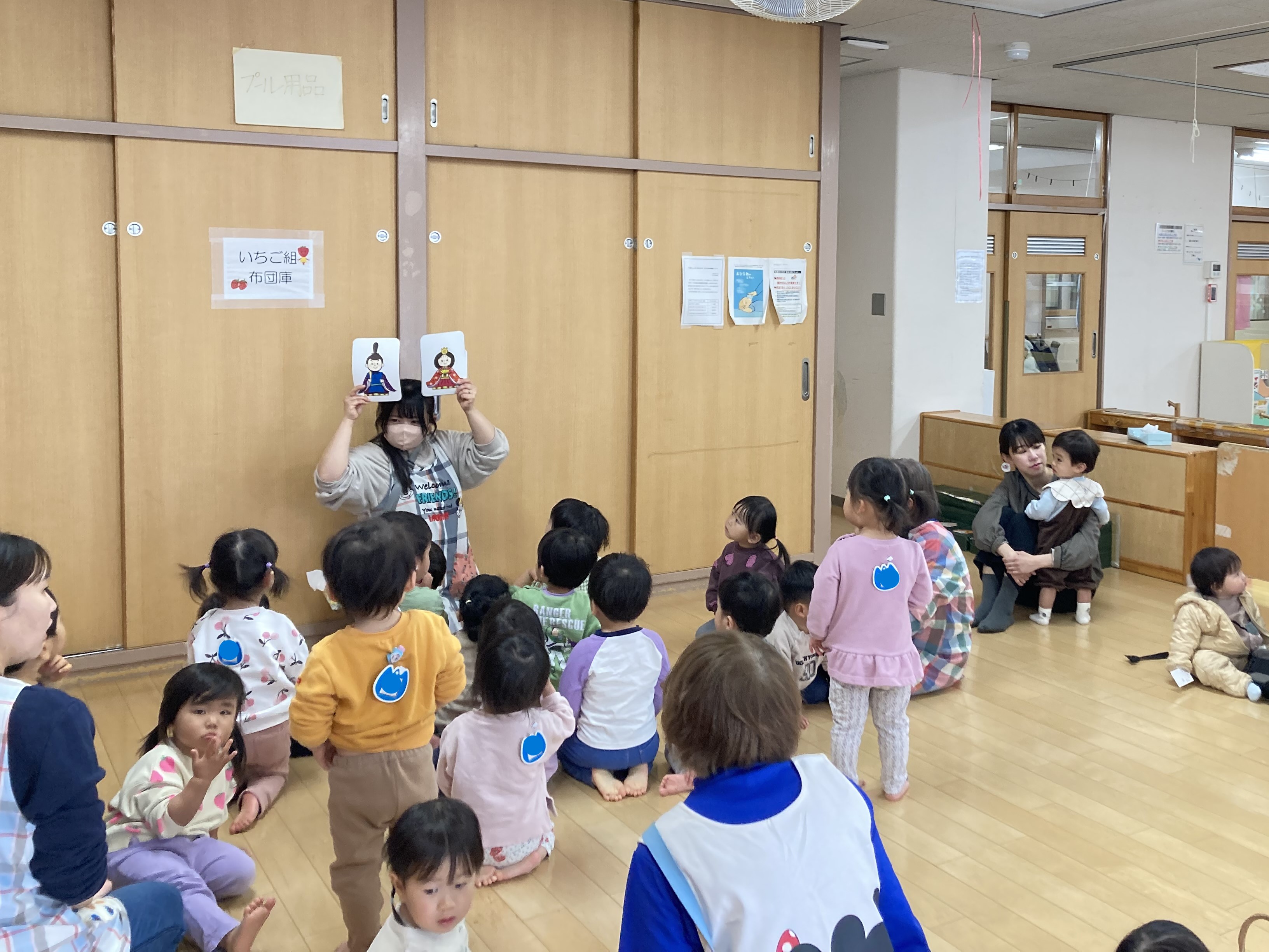 お部屋では、ひなまつりはどんなものを飾るのか、その由来等もそれぞれお話をしました。