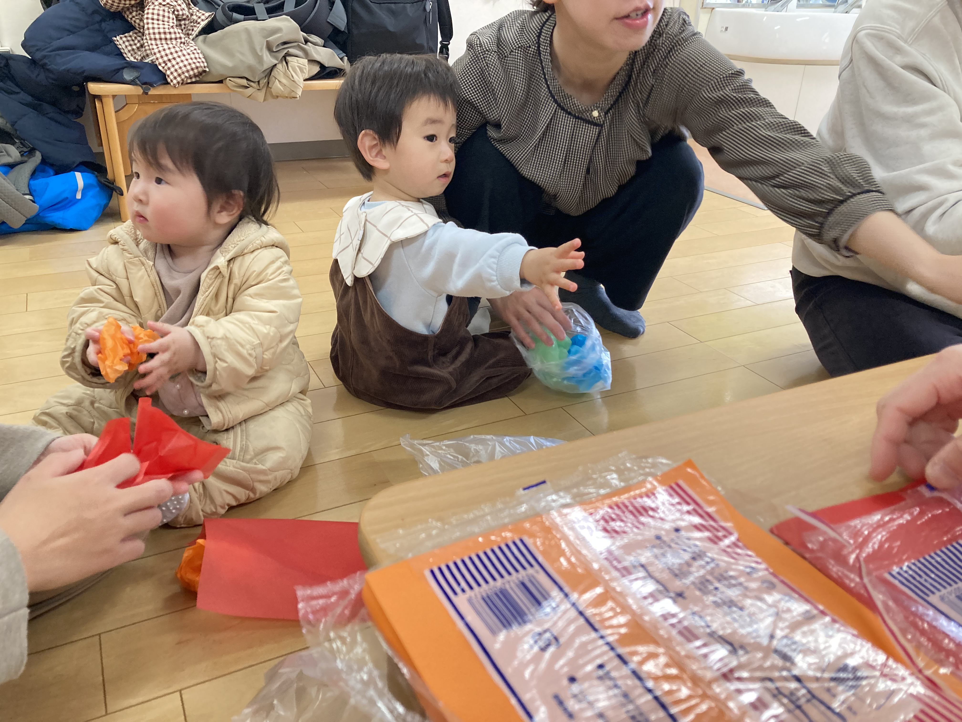 お花紙を一生懸命ぎゅっと丸める姿が可愛らしいですね!