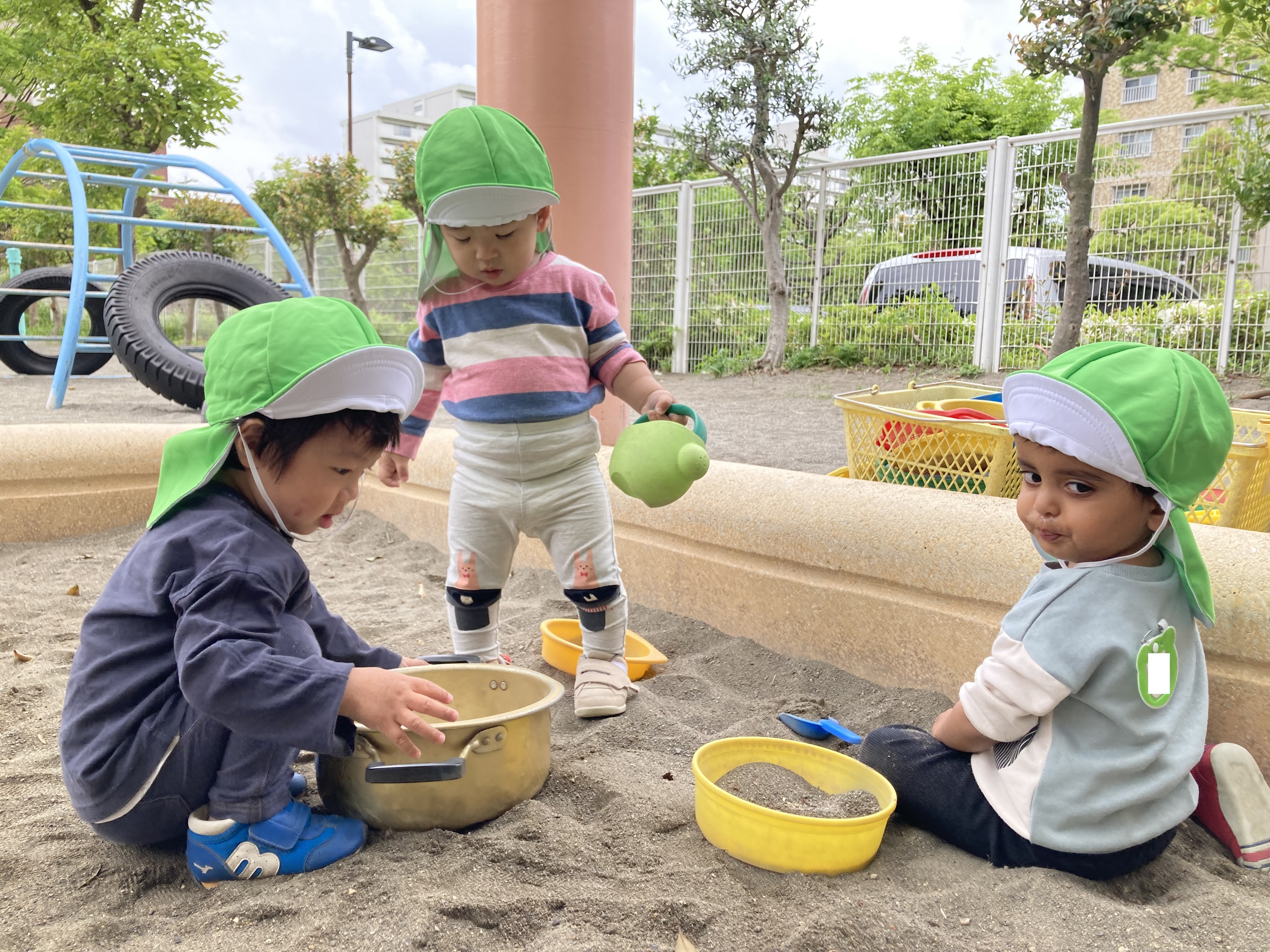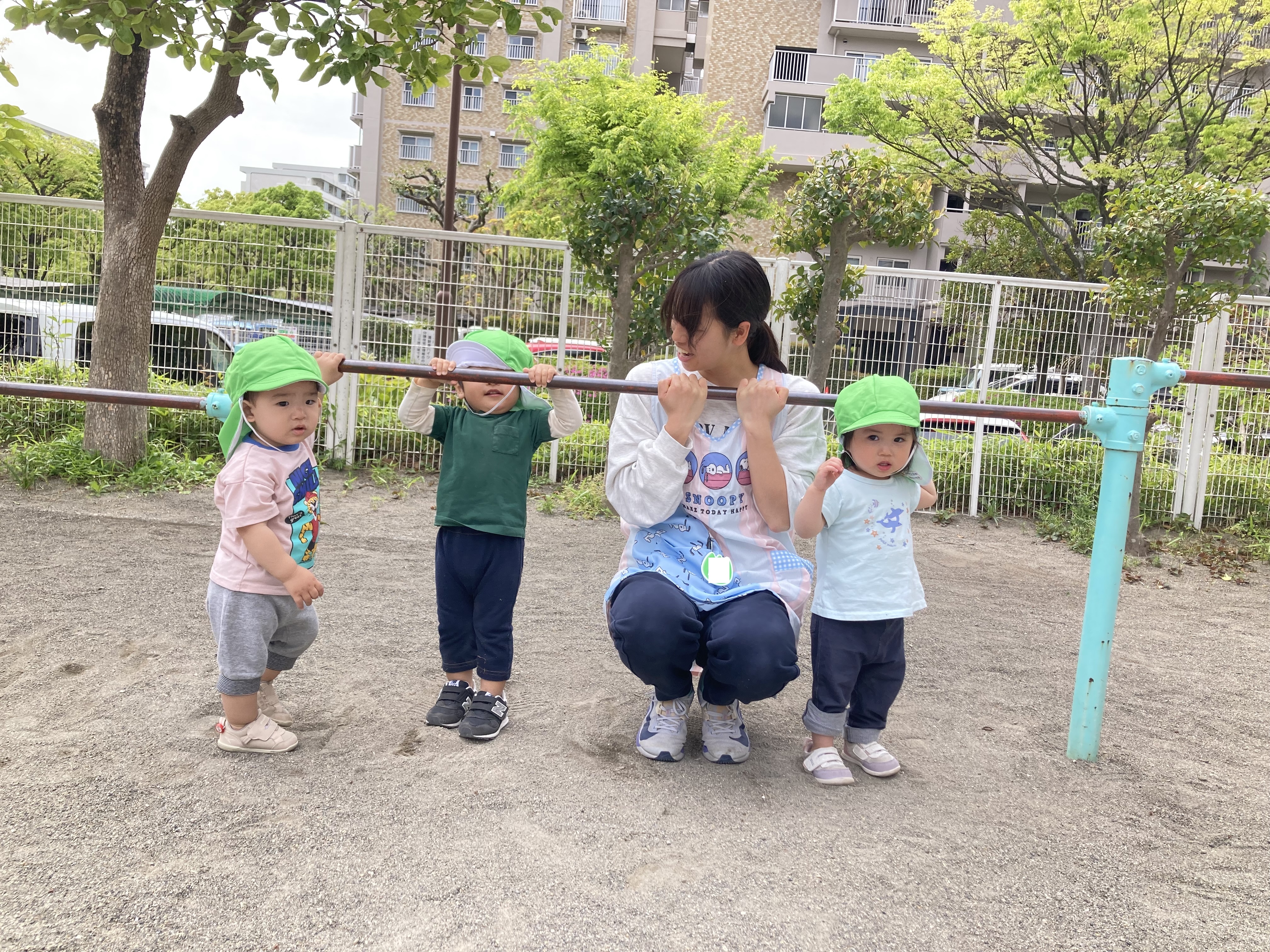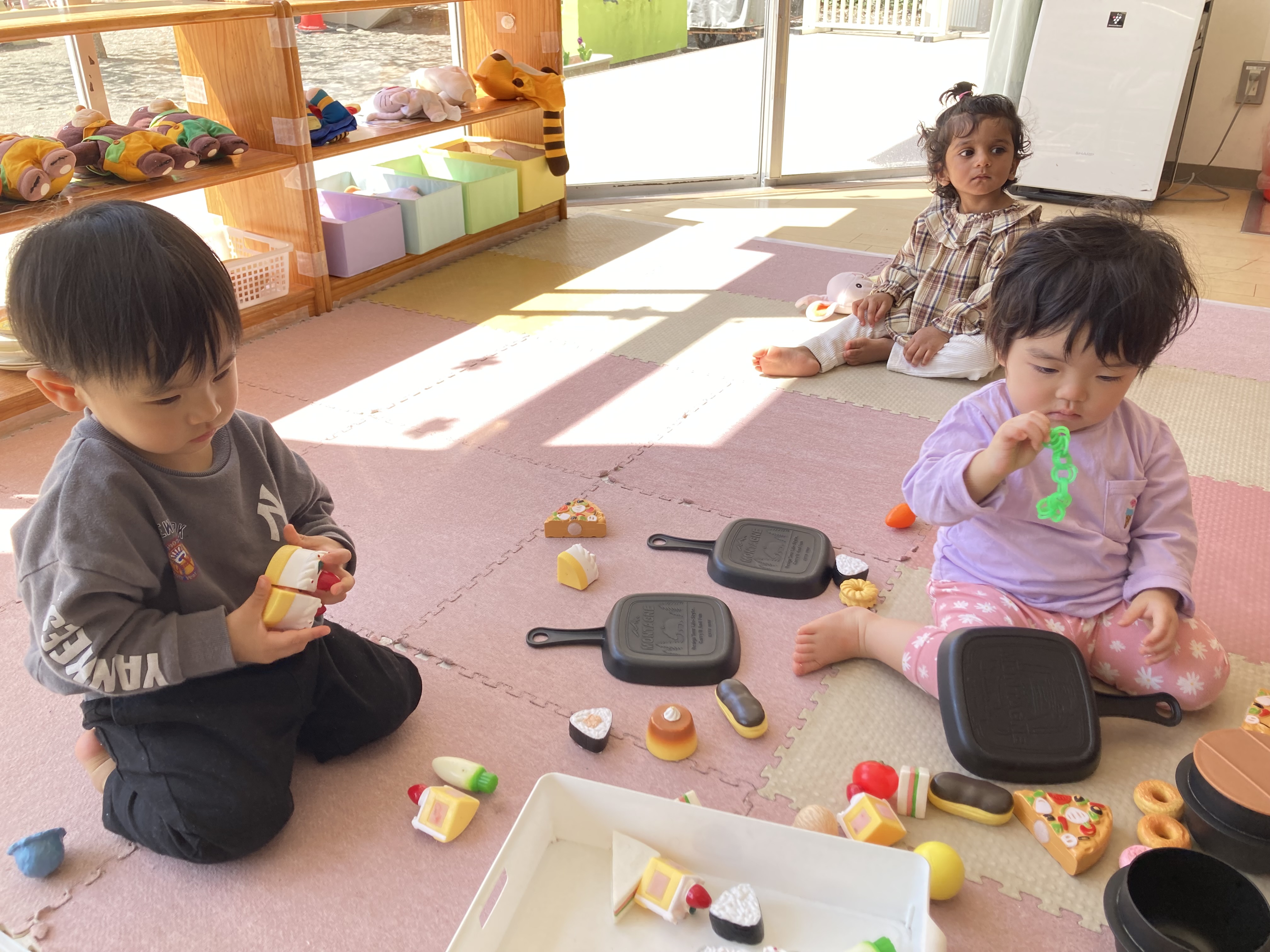 涙を流していたお友だちは徐々に好きな遊びを見つけたり、保育士の側で遊びを楽しんでいます。