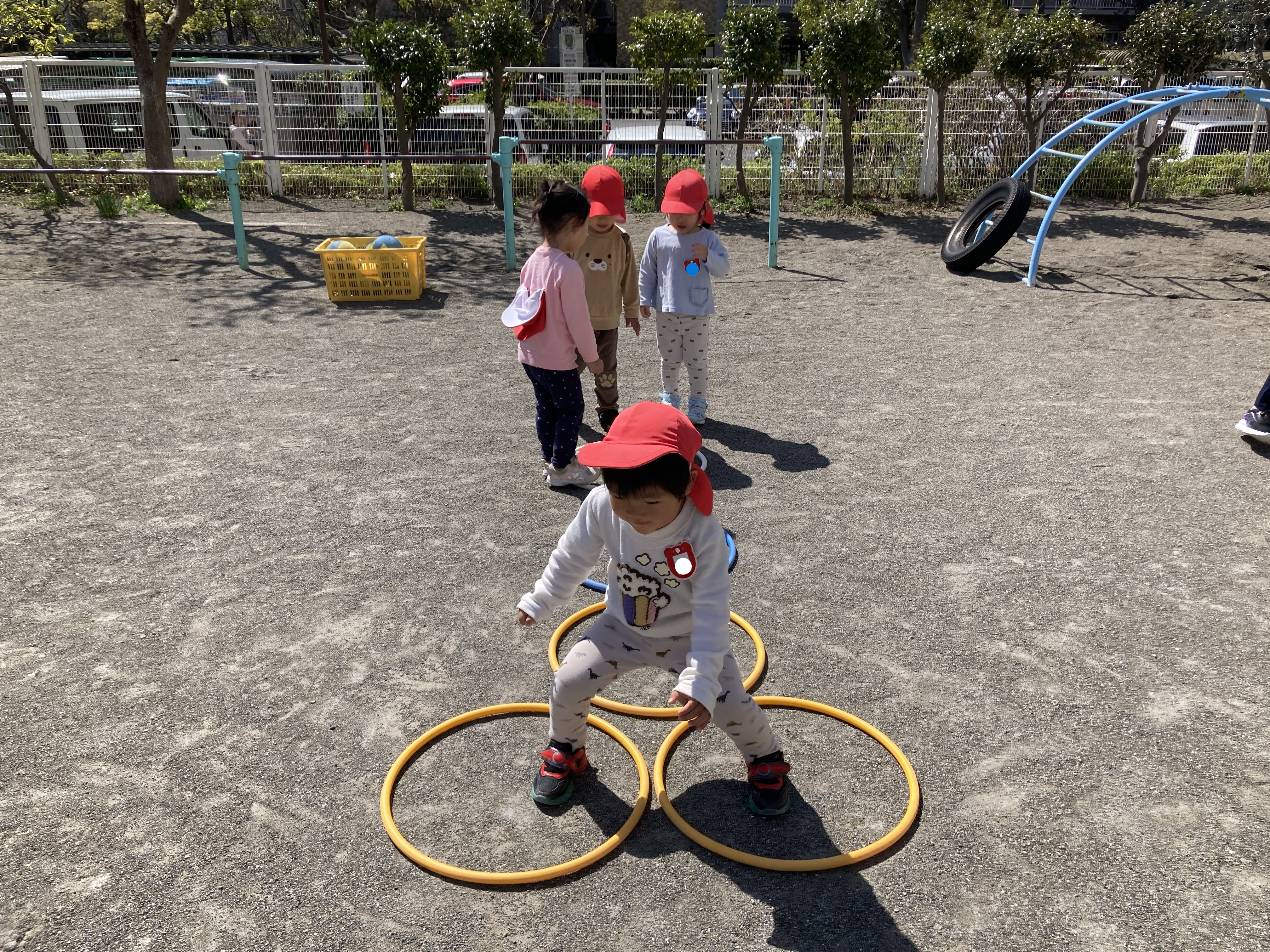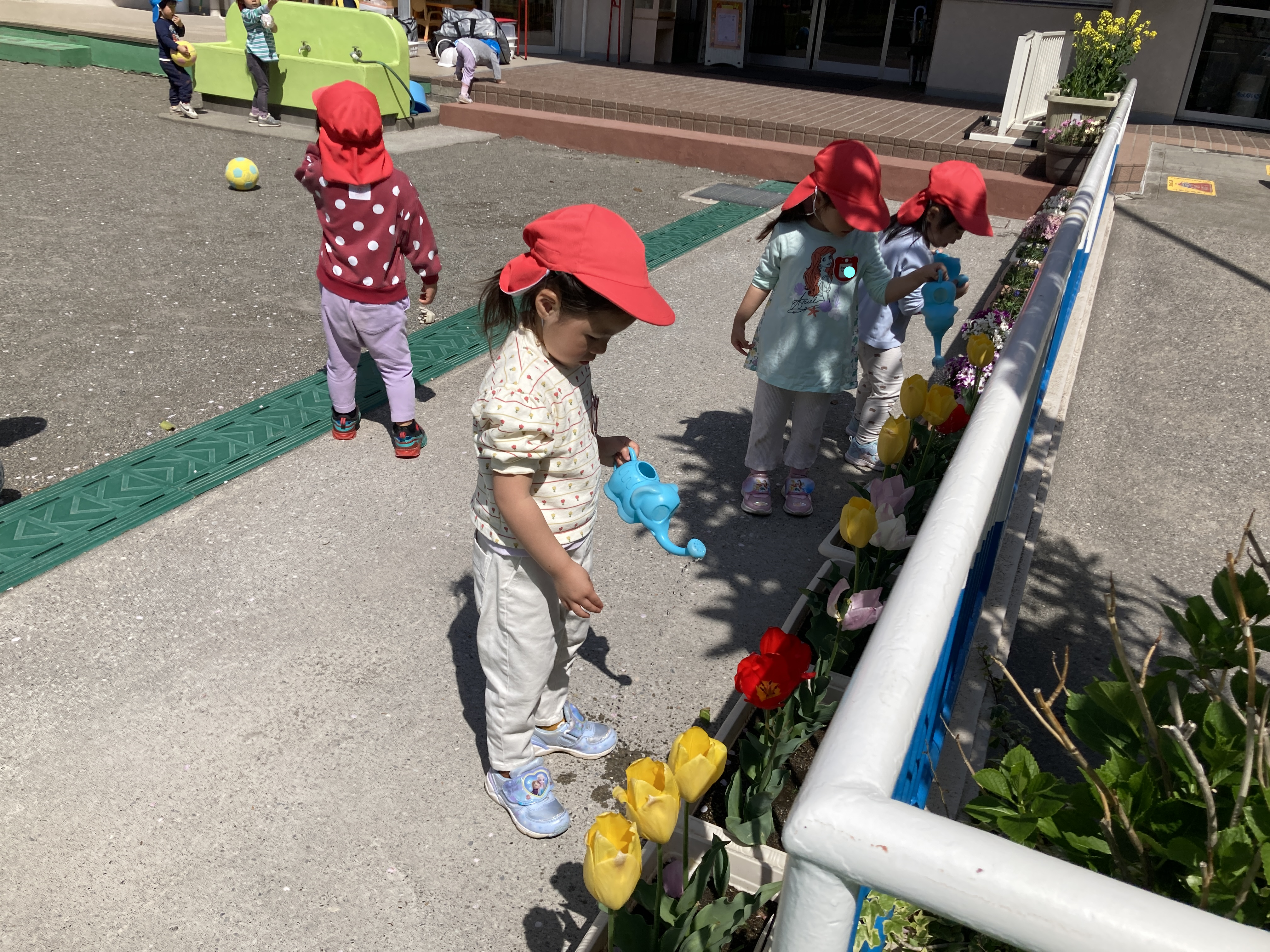 フープを使って体を動かしたり、チューリップのお水やりなど率先して行う姿がみられ、優しさにほっこりとします。