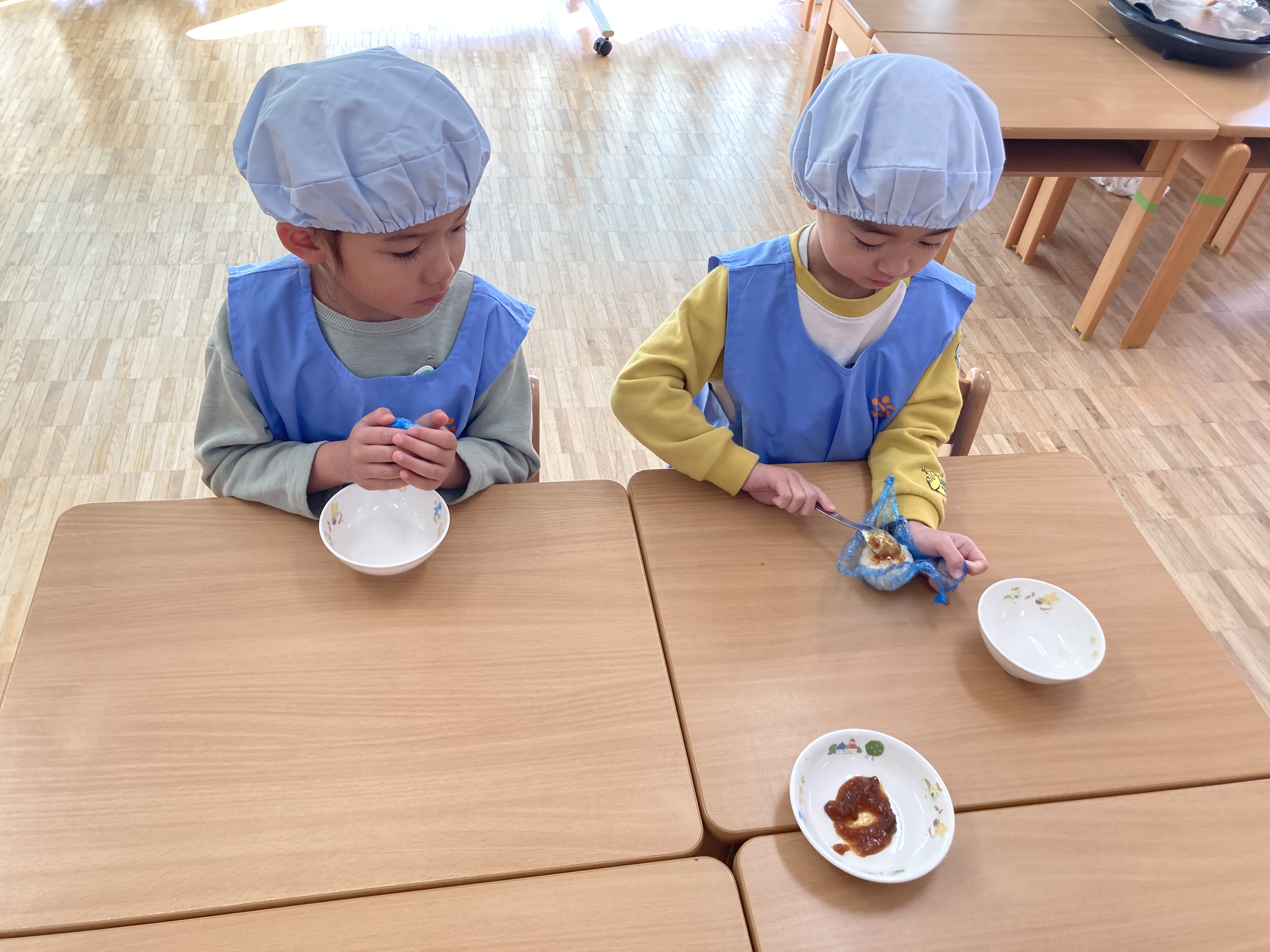 エプロンなどを着ると「わくわくするね」「嬉しい」等と言った声が聞こえました。
