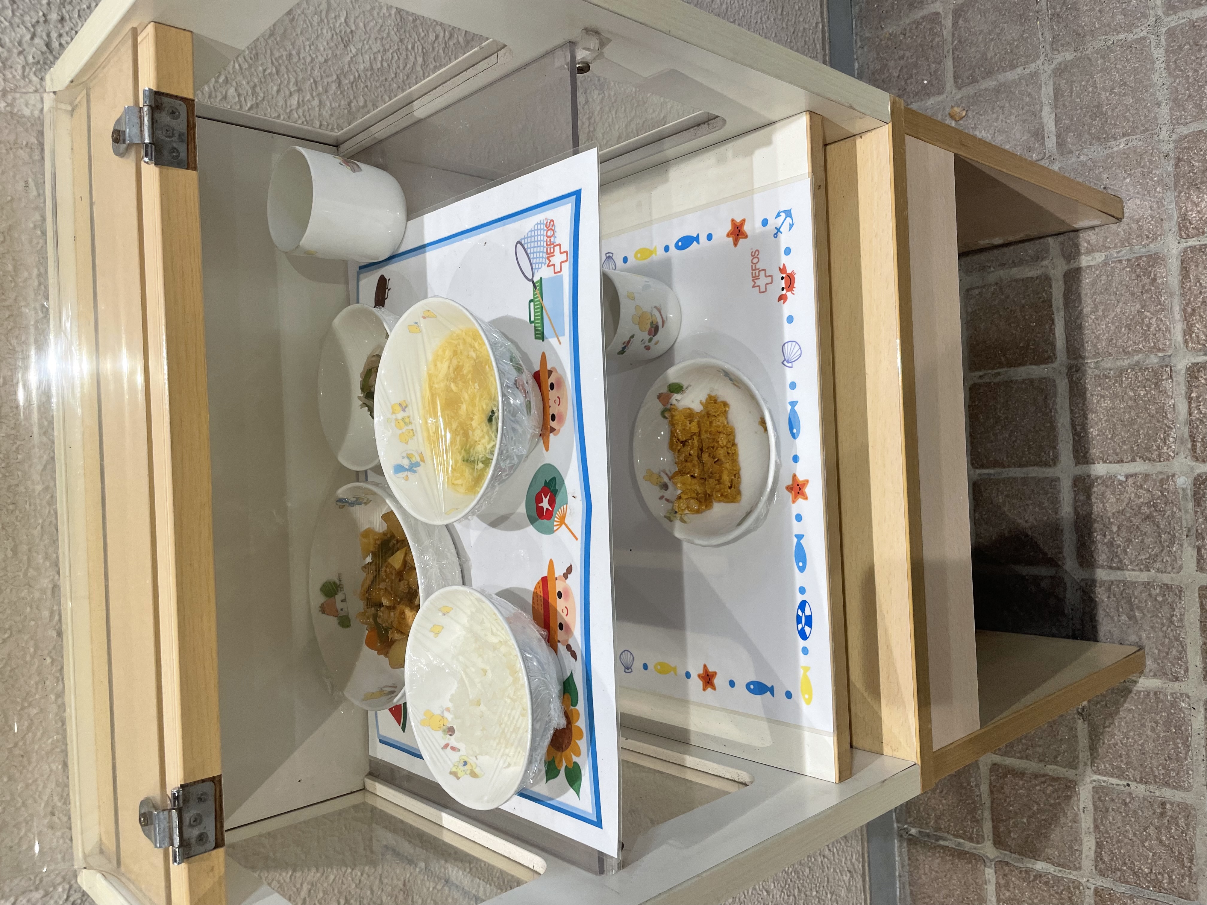 園舎の出入り口には、給食サンプルが置いてあります。降園する時に、親子で見ながら「今日の給食これだったんだよ!」などと、嬉しそうに報告しています。