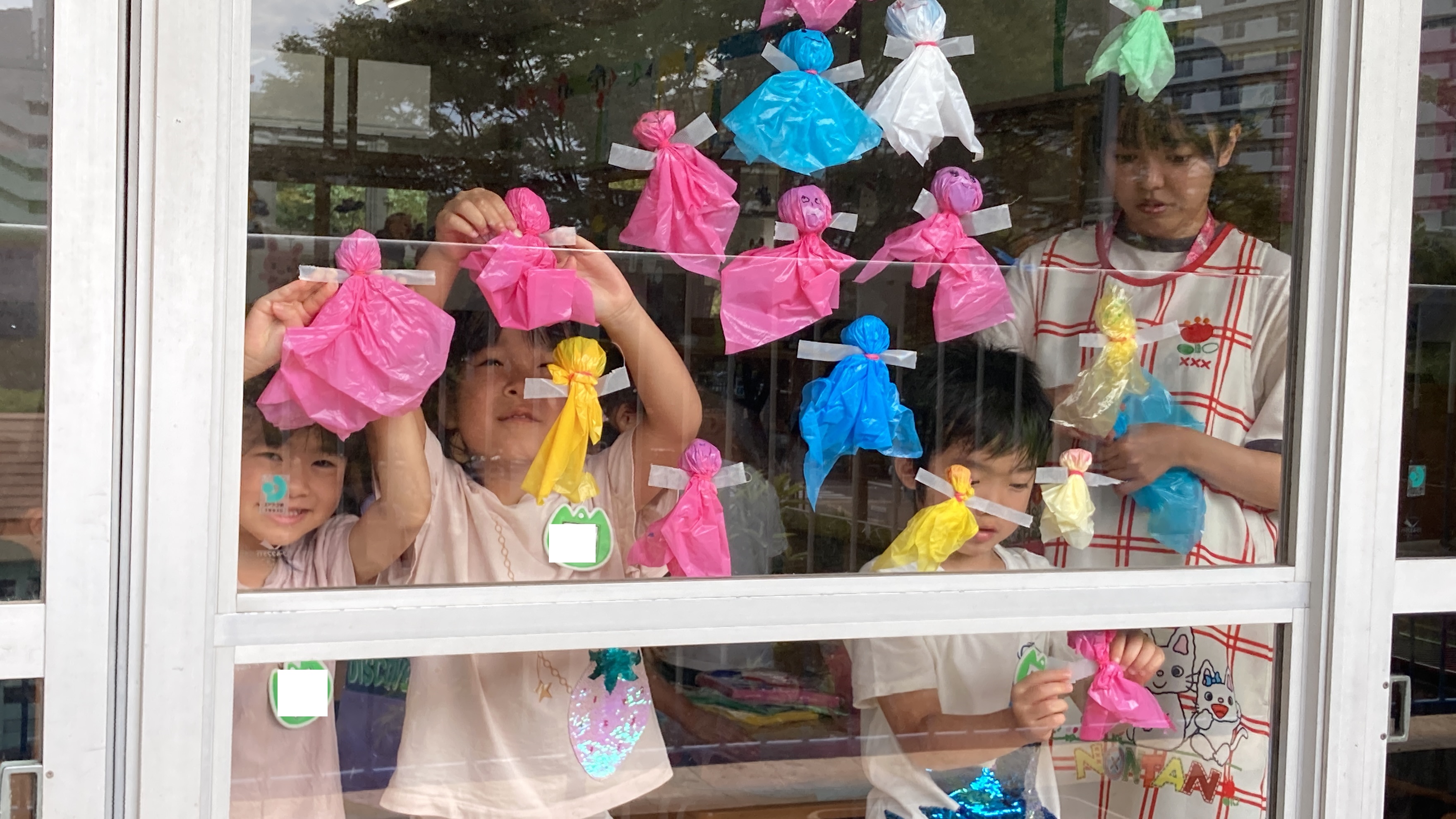 そして、いよいよ運動会。天候が不安に感じた子ども達は「テルテル坊主だ」「つくろう」と