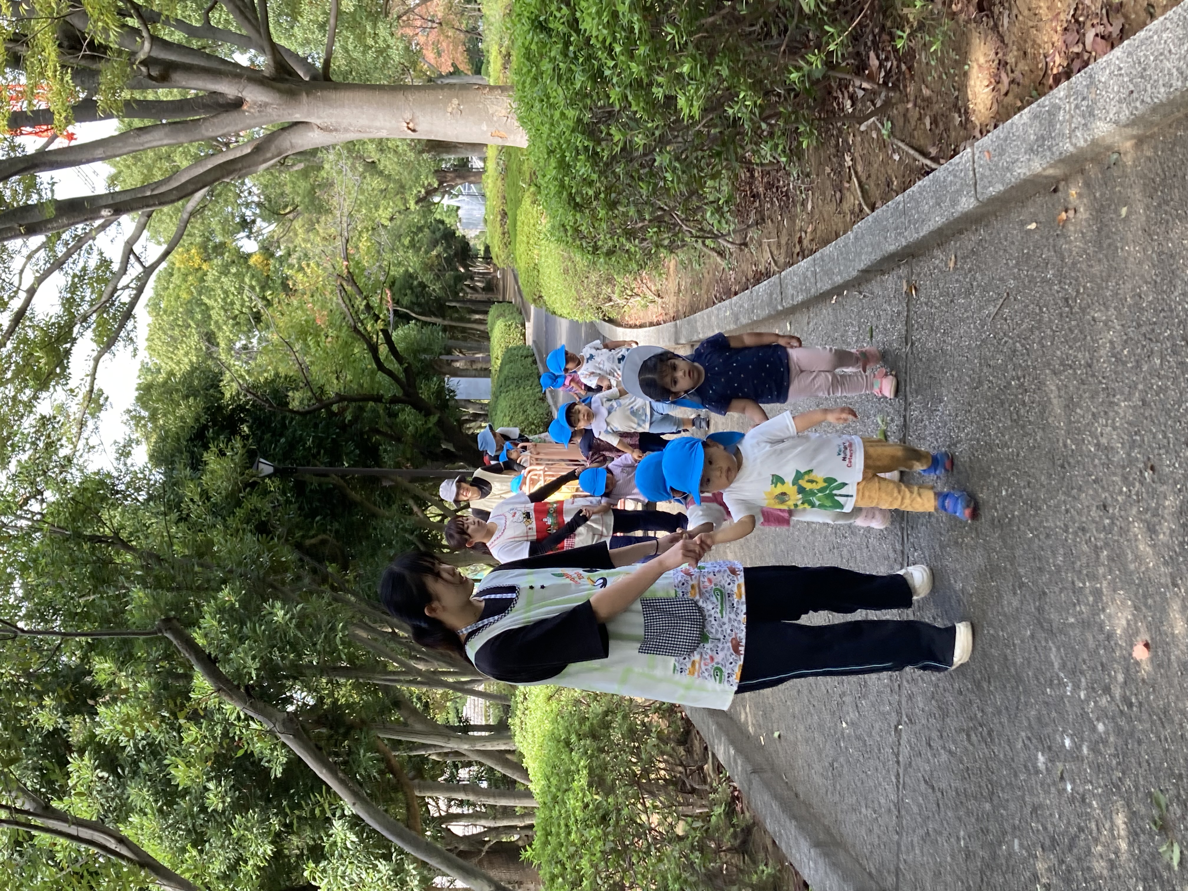 1歳児クラスで散歩に出発。友だちと手を繋ぎ散歩をしていると…ごみ収集車に遭遇。繋いだ手を離して興奮していた2人ですが、また歩き始めるとお互いに「てって」と言いながら手を繋ぎなおす姿に、ほっこりしました。