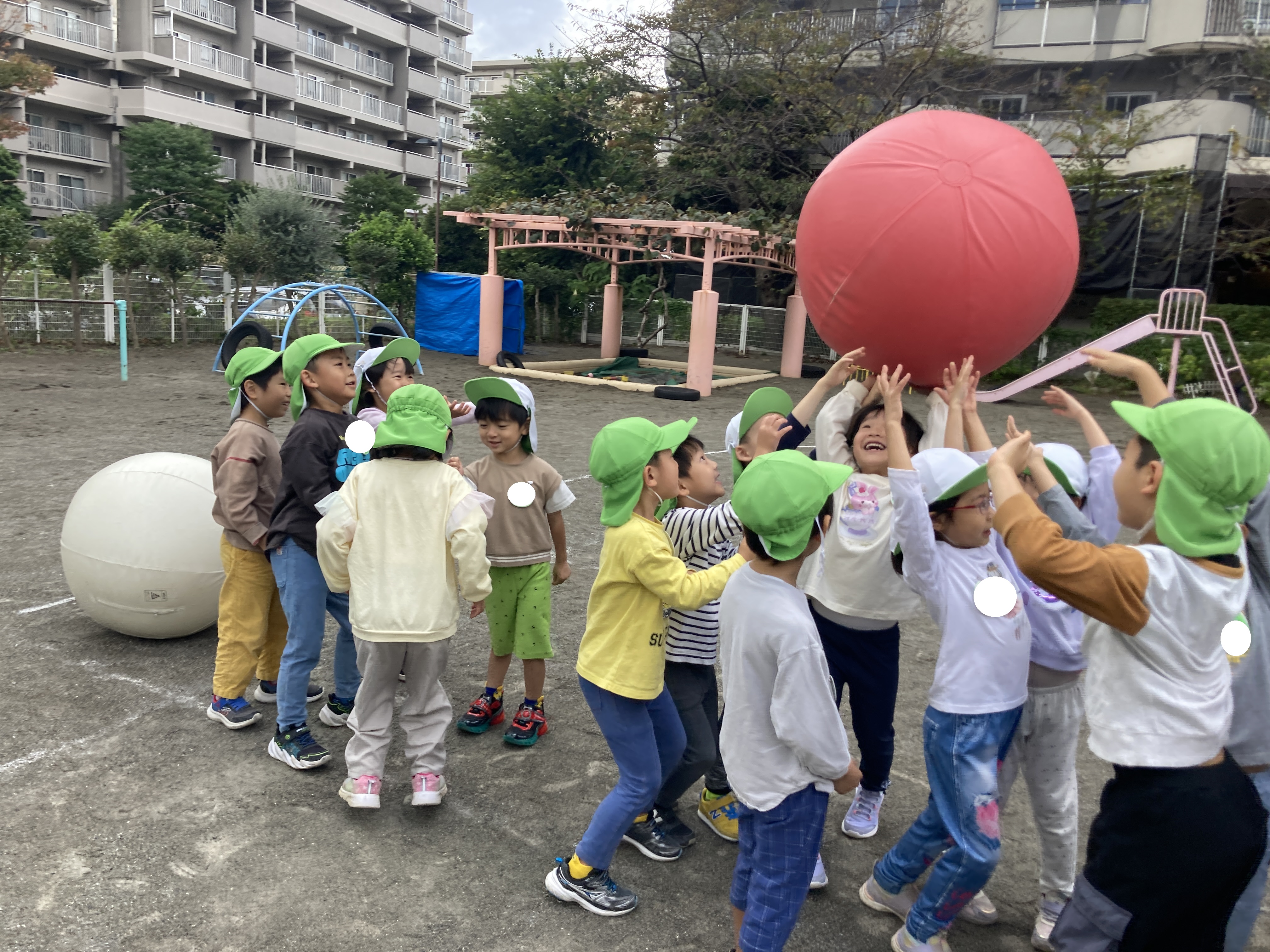 さわやか体育祭に参加したのちにも「大玉で遊びたい」との事だったので園庭で沢山楽しんでいます。