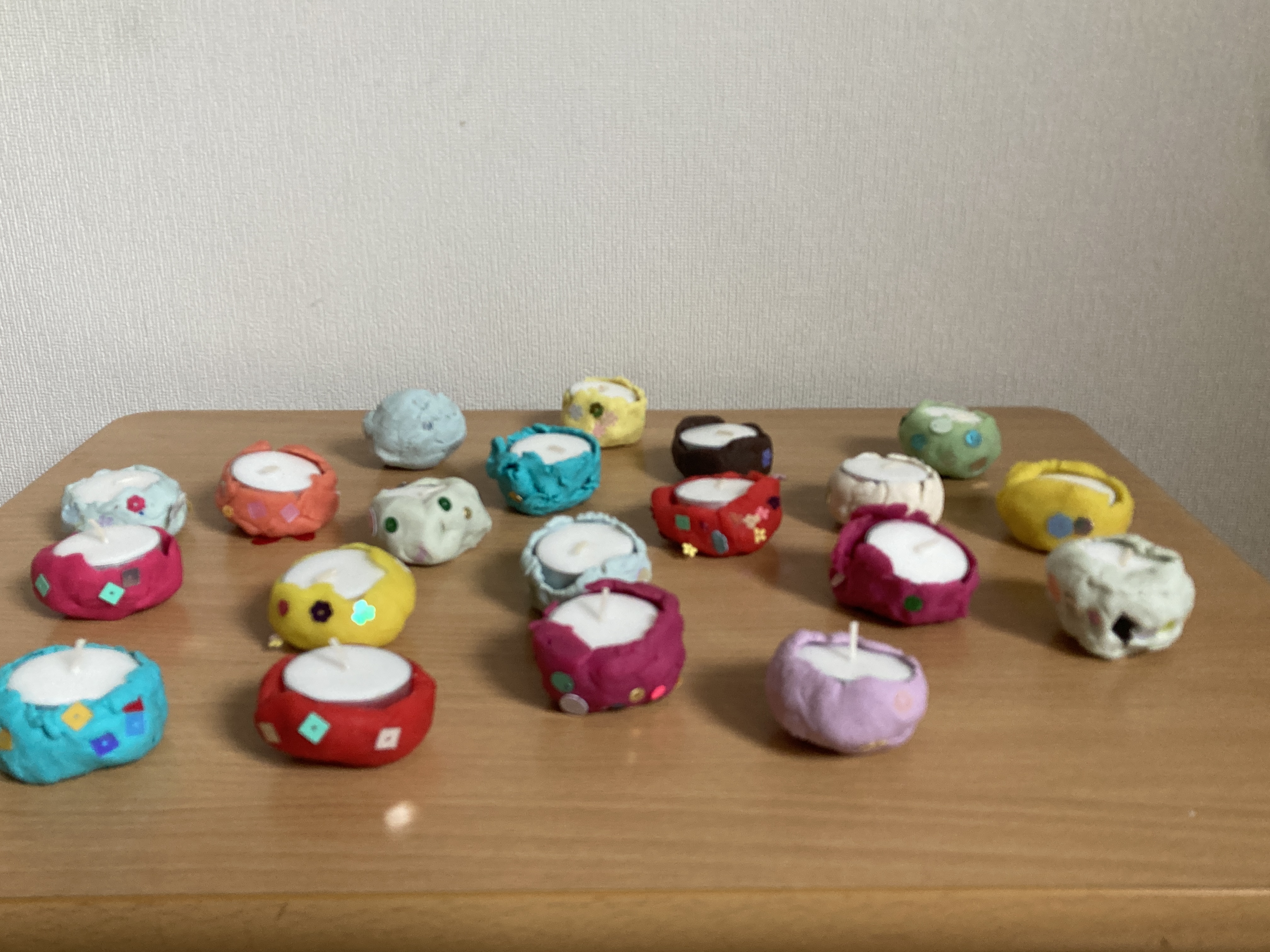 ディワリについての由来や花火でお祝いをすることなどを知りました。また、玄関などに火を灯してお祝いするということでキャンドル作りを行いました。