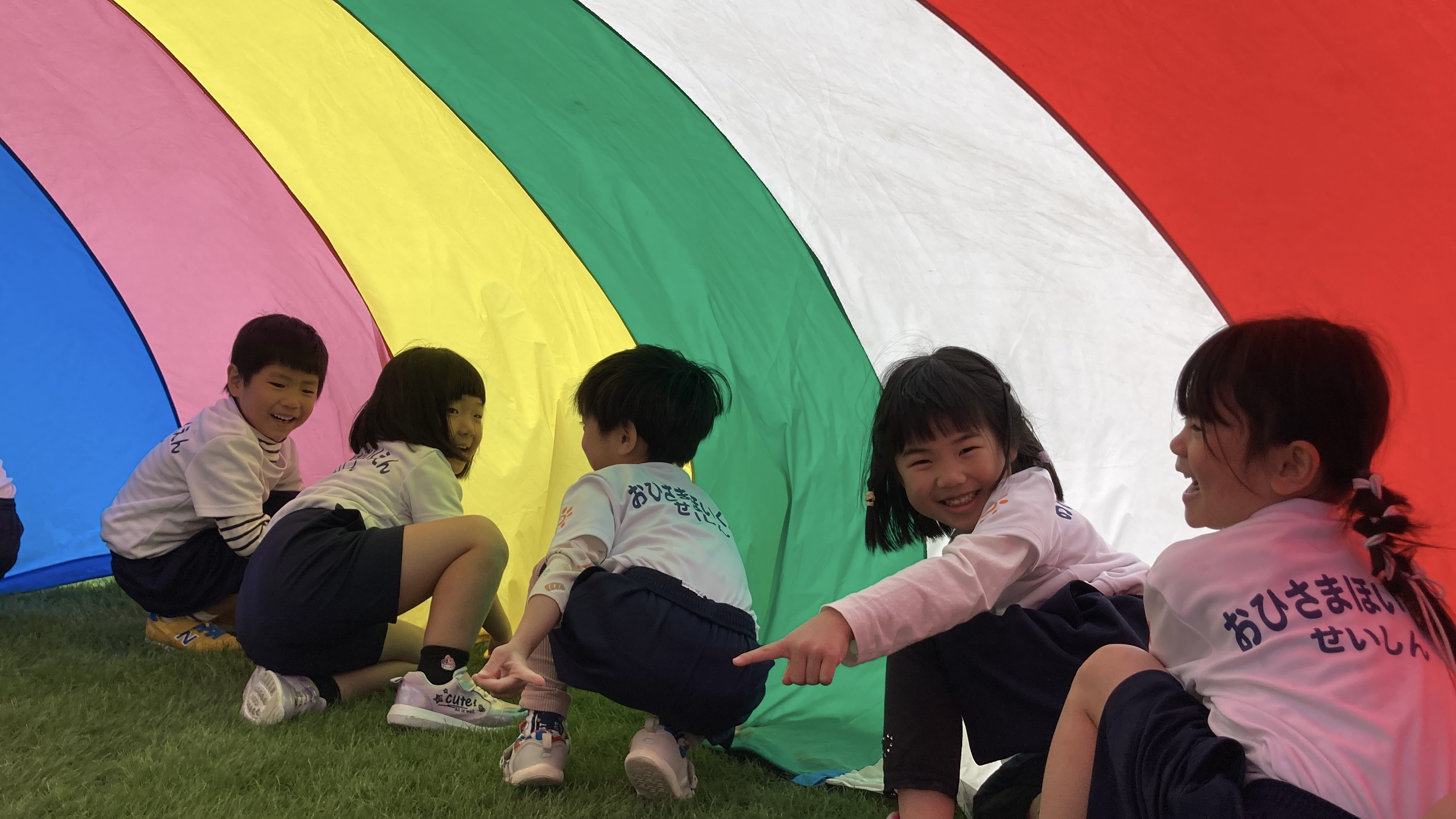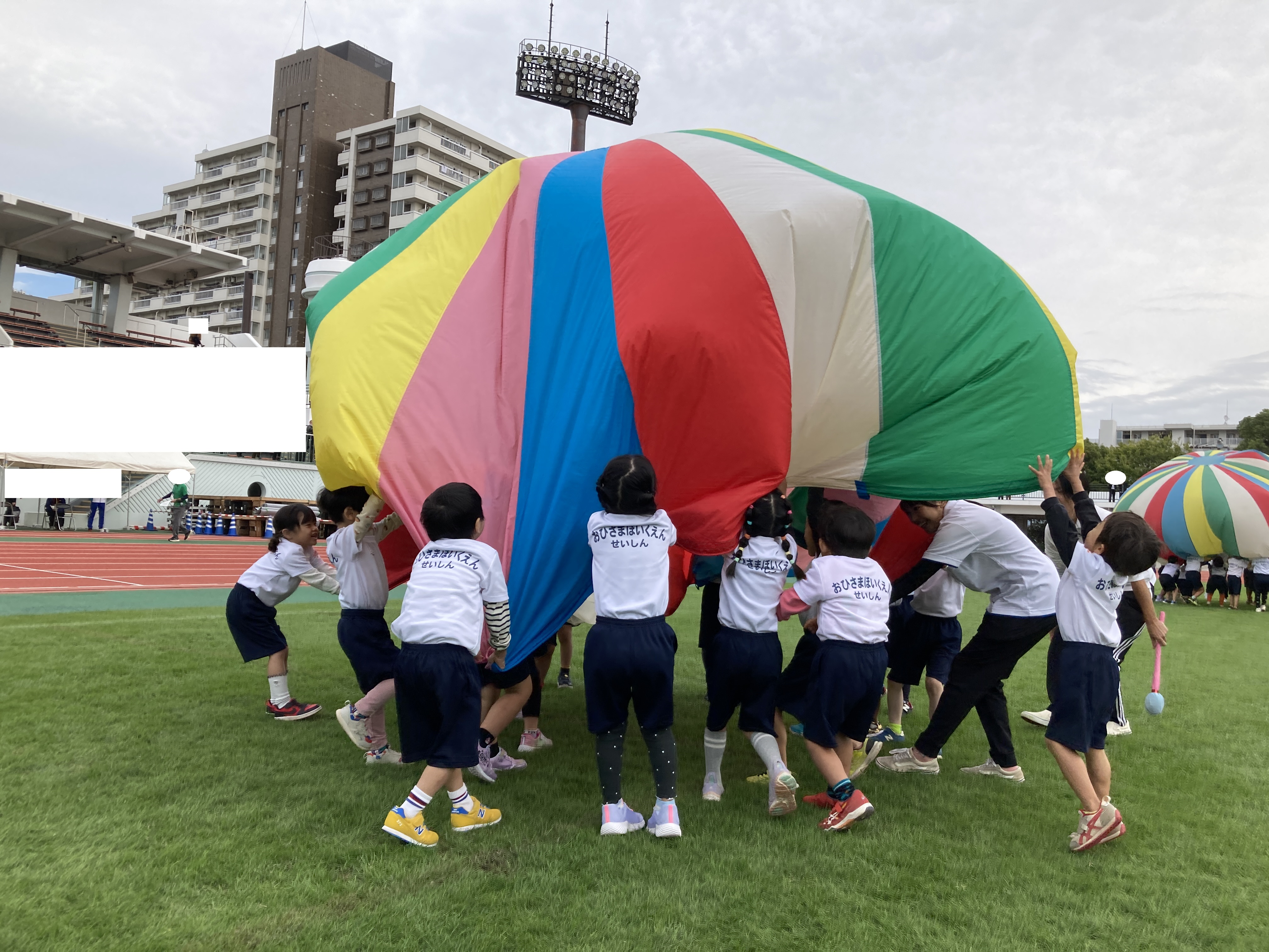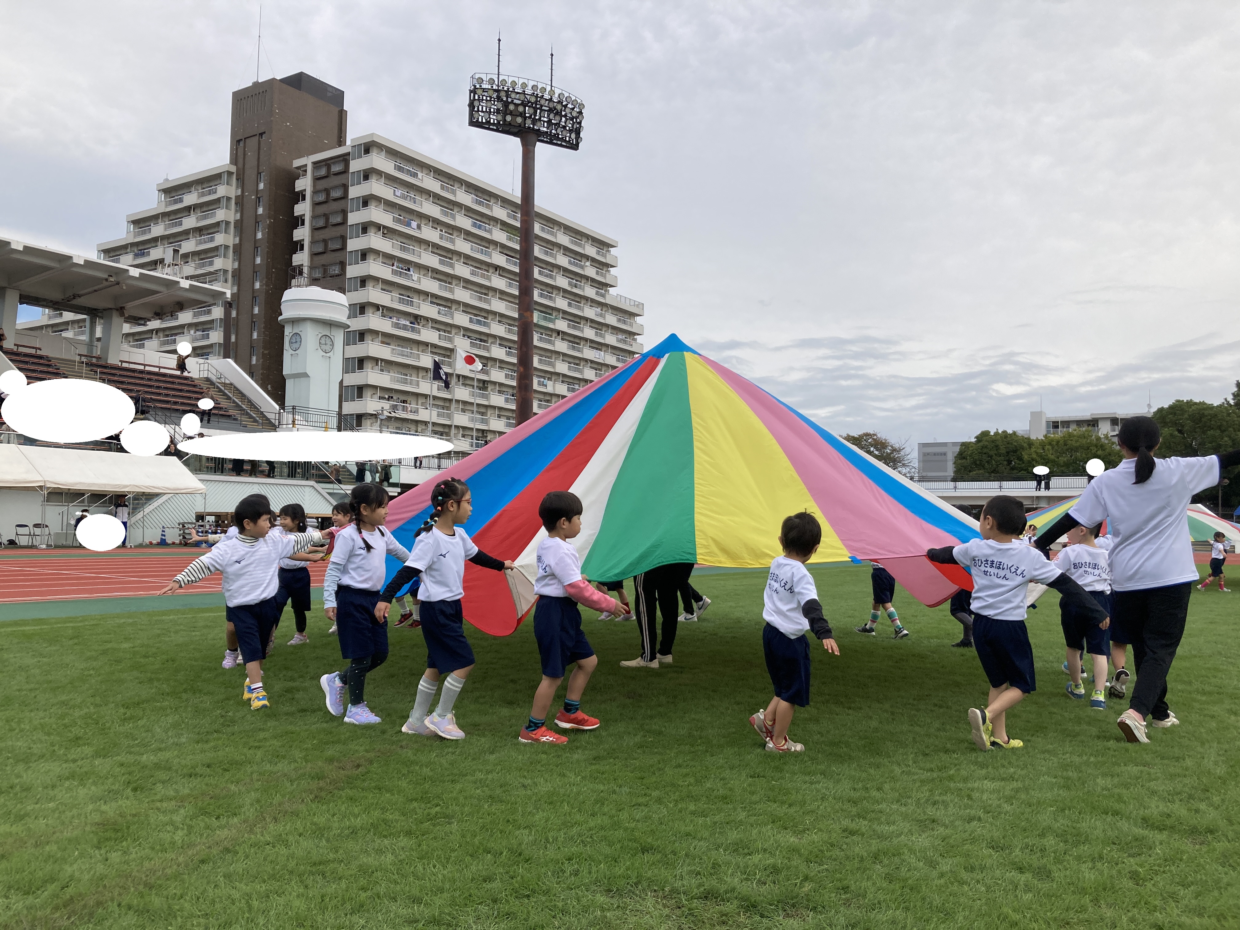 おひさま保育園の種目は、パラバルーンでした。大きなトラック内で23園のバルーンはとても素敵でしたよ。
