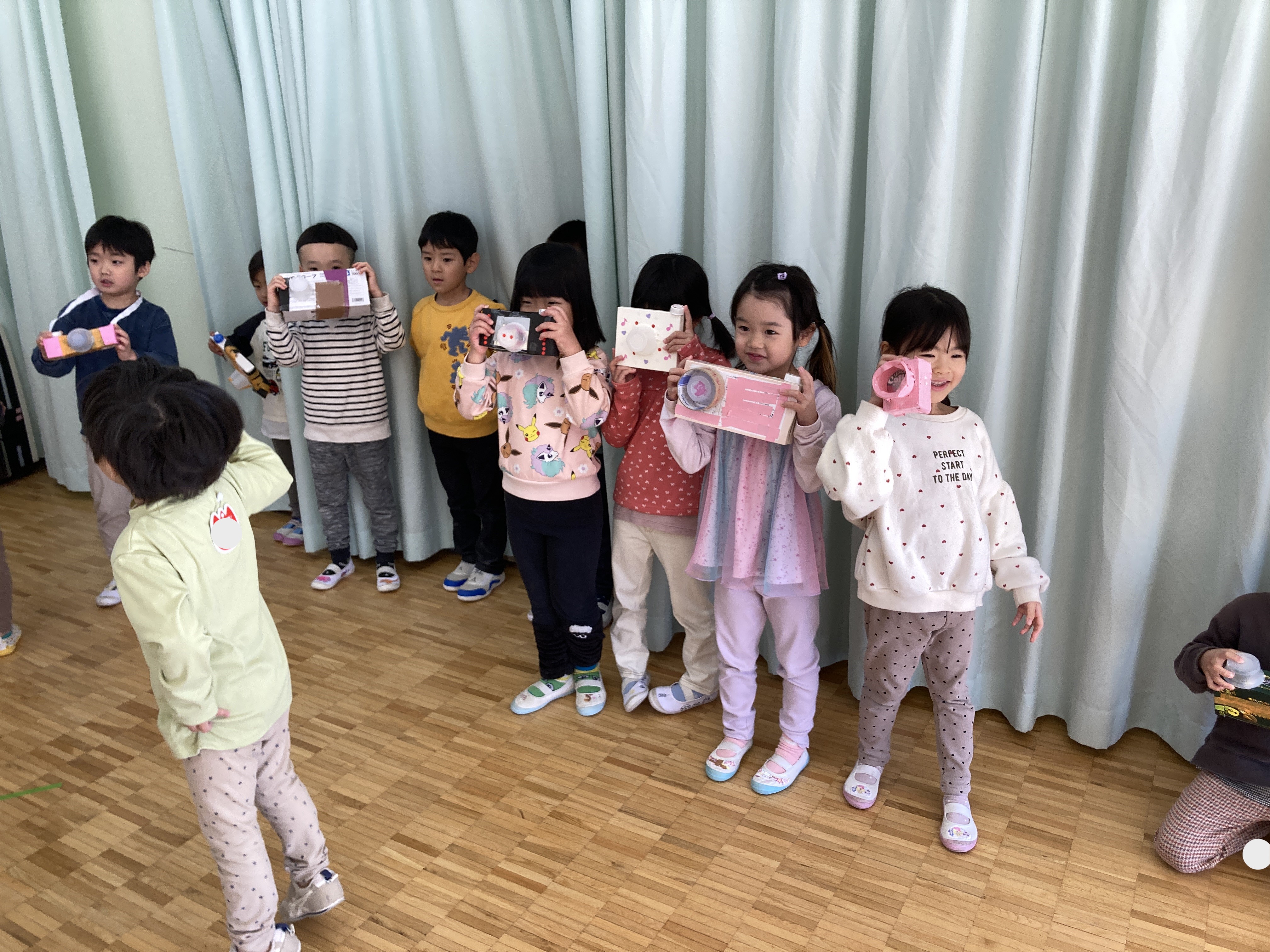 完成したカメラを持ってその後は園内探索!「こっちむいてー!」・「かわいいね!」など本当のカメラマンのようで可愛かったです!