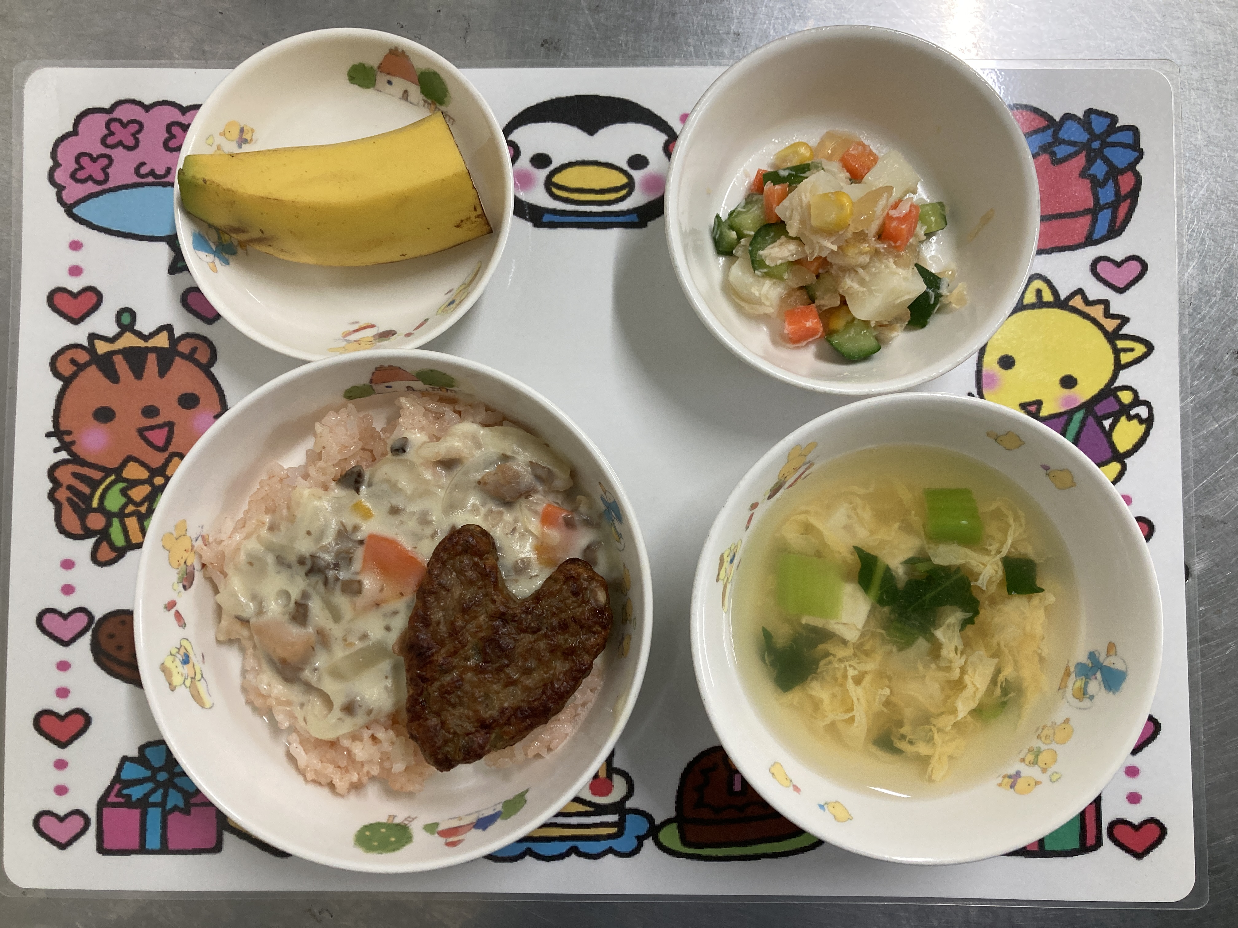 今日の給食はバレンタインにちなんだ献立でした。