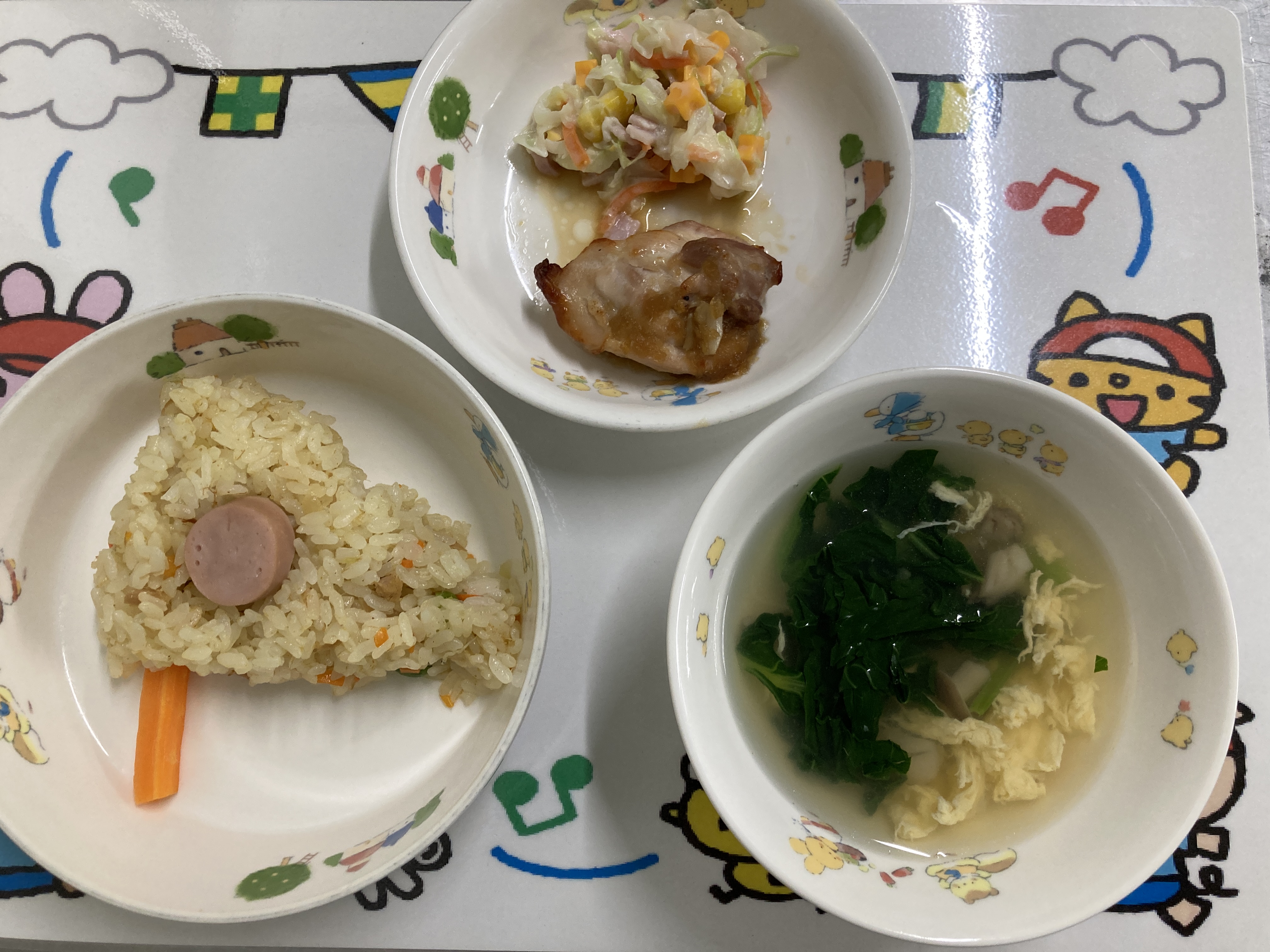 明日は運動会!頑張ろうという思いを込めて運動会献立の給食でした!