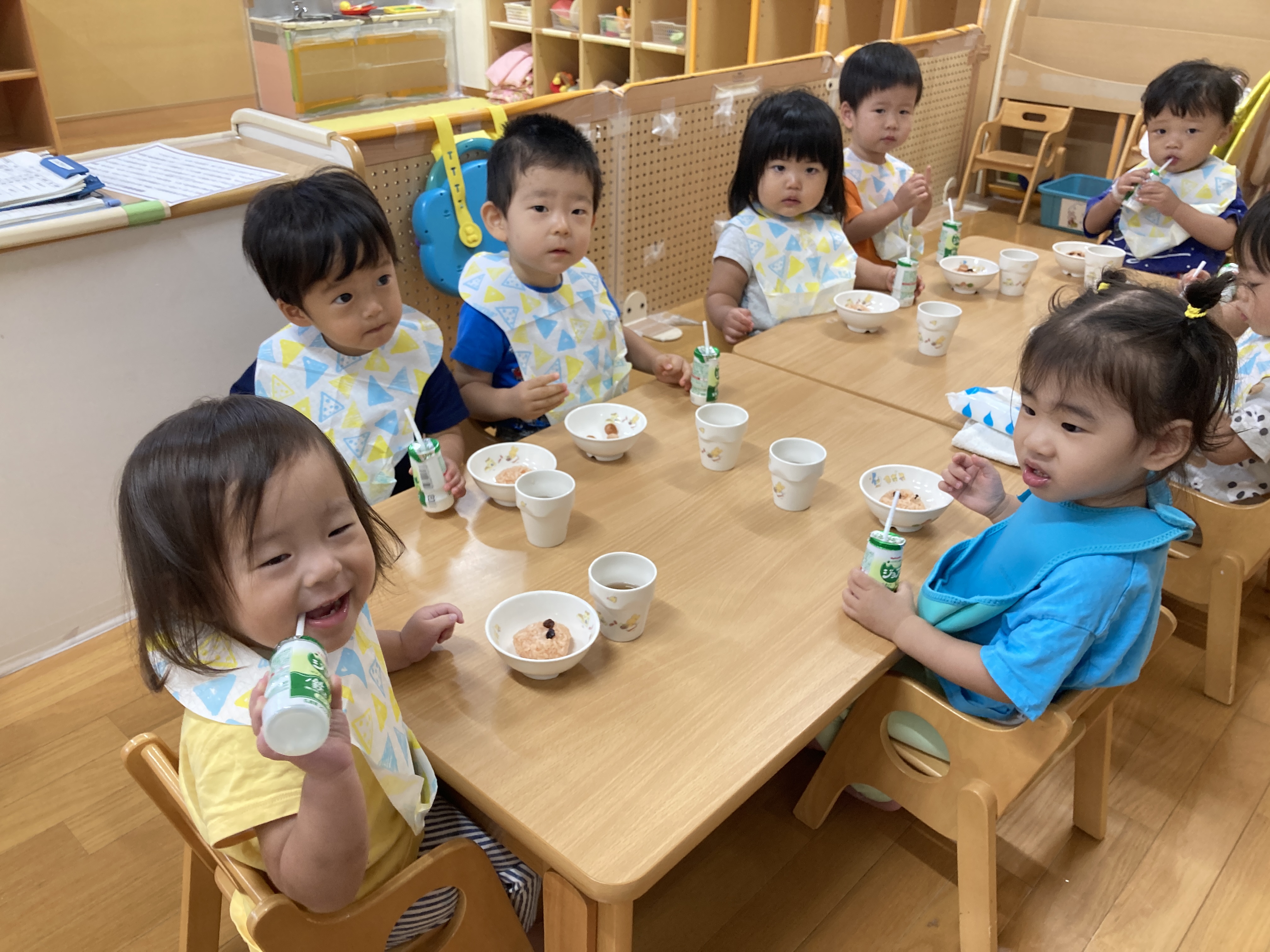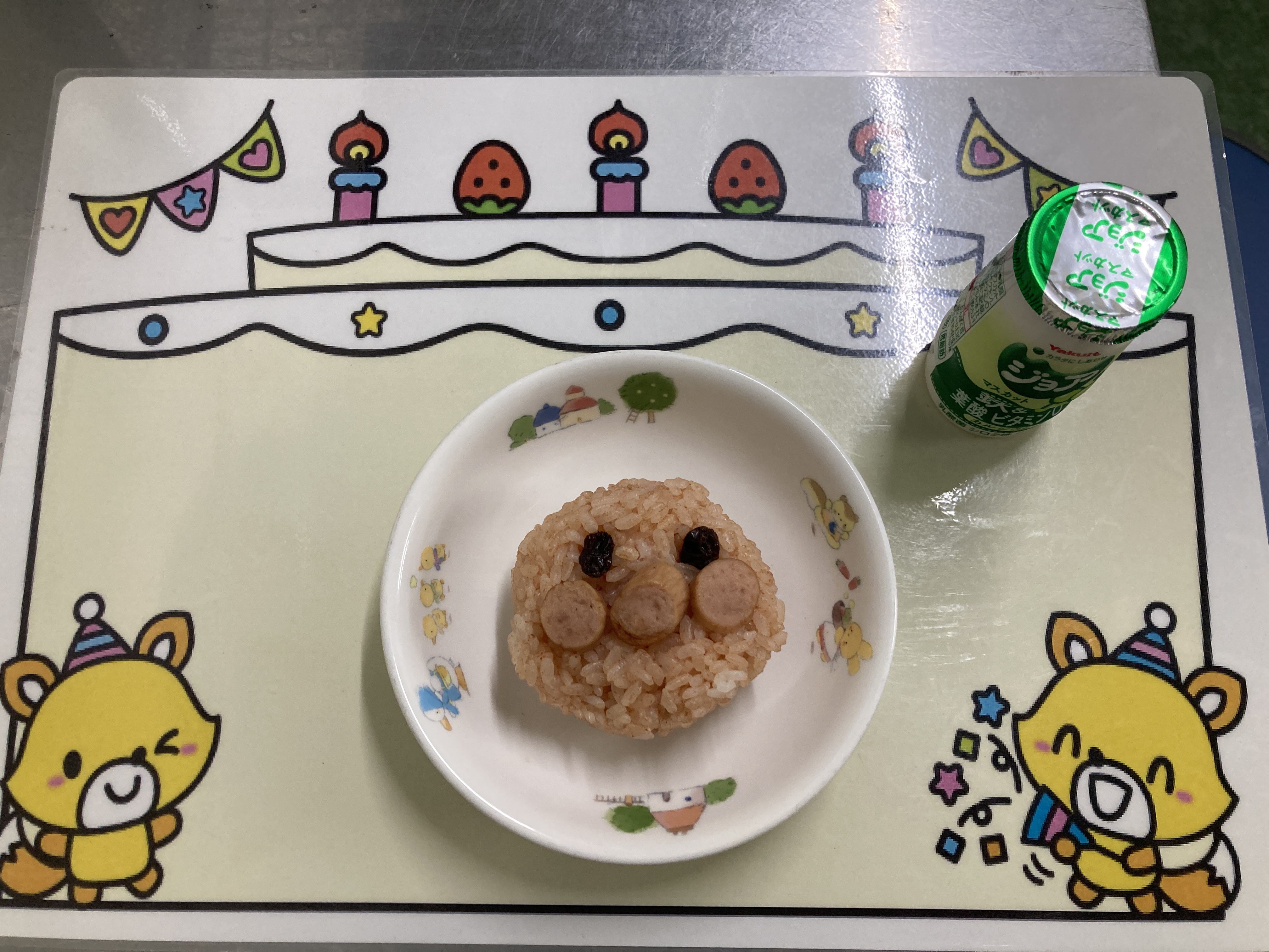 みんなが大好きなキャラクターのおにぎりでした。1歳児クラスのつくし組さんもとても喜んで食べていました。