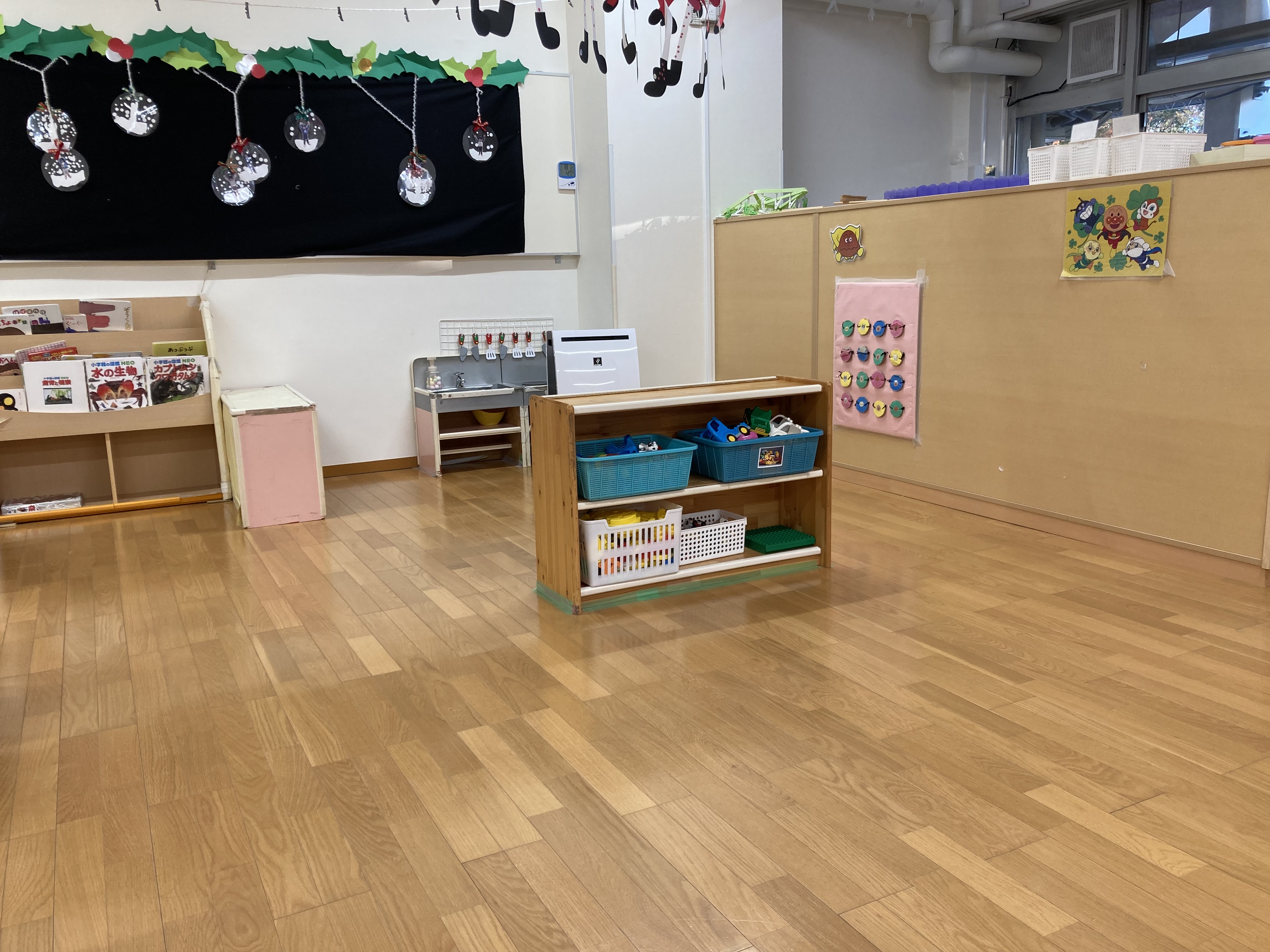 2~5歳児クラスは同じような部屋の形となっており、今回は代表して4歳児クラスです。