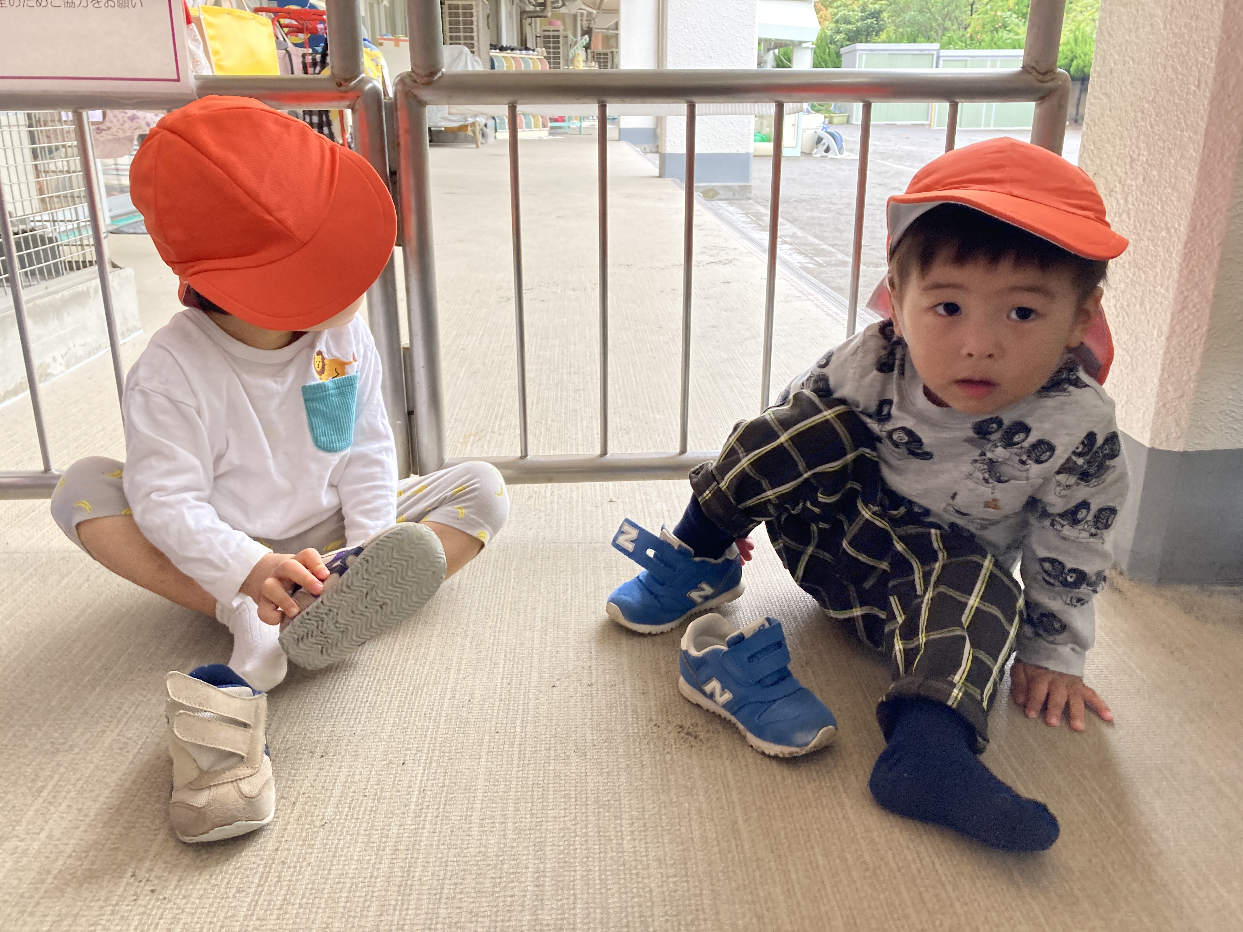 保育園の生活にも慣れてきて、自分で帽子や靴下、靴を履くことにも挑戦しています!