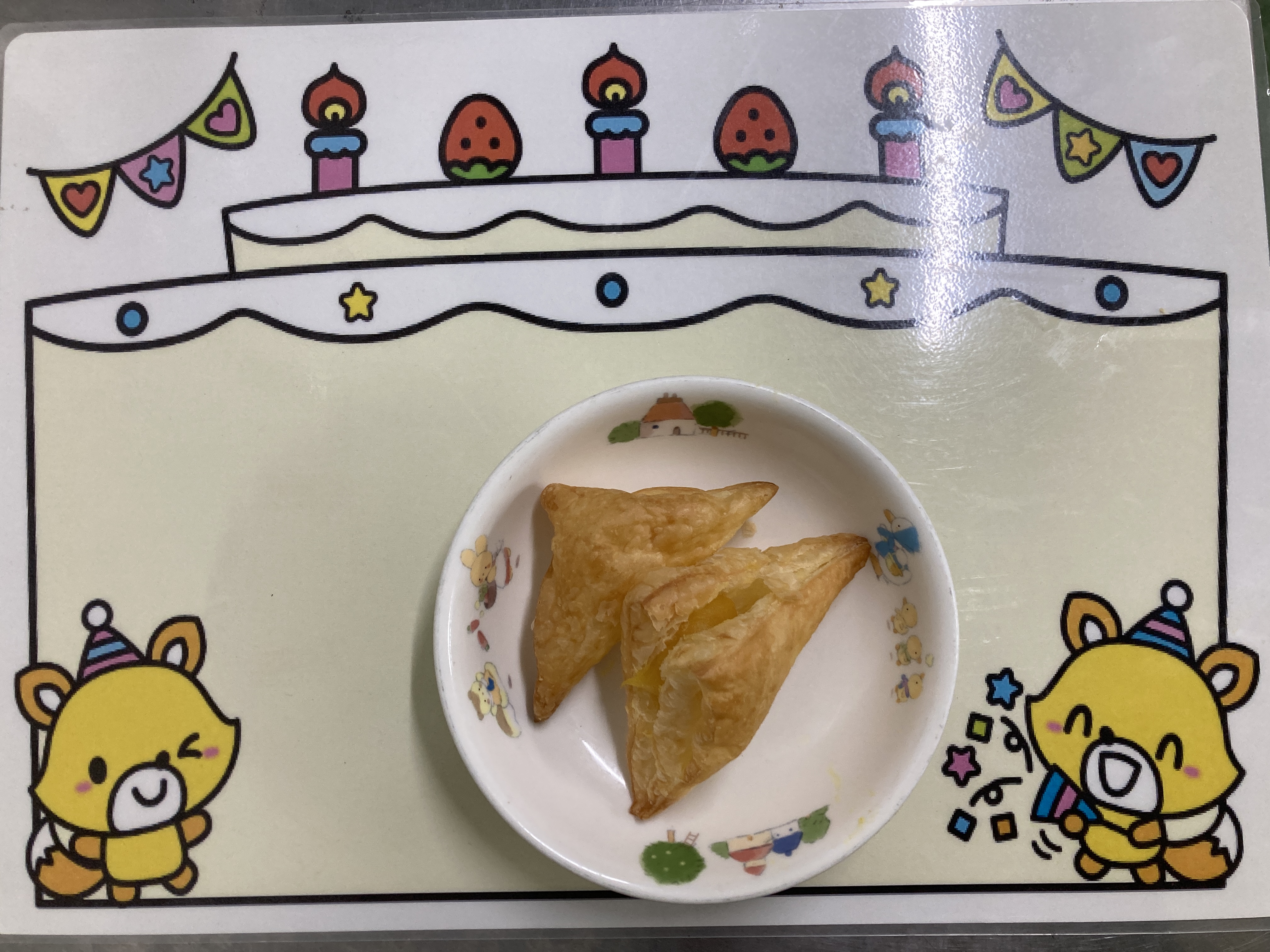 こんにちは。運動会も終わり、早い物で今年度も後期に入りましたね。すっかり秋も深まりました。今日の給食はお誕生日献立でした。