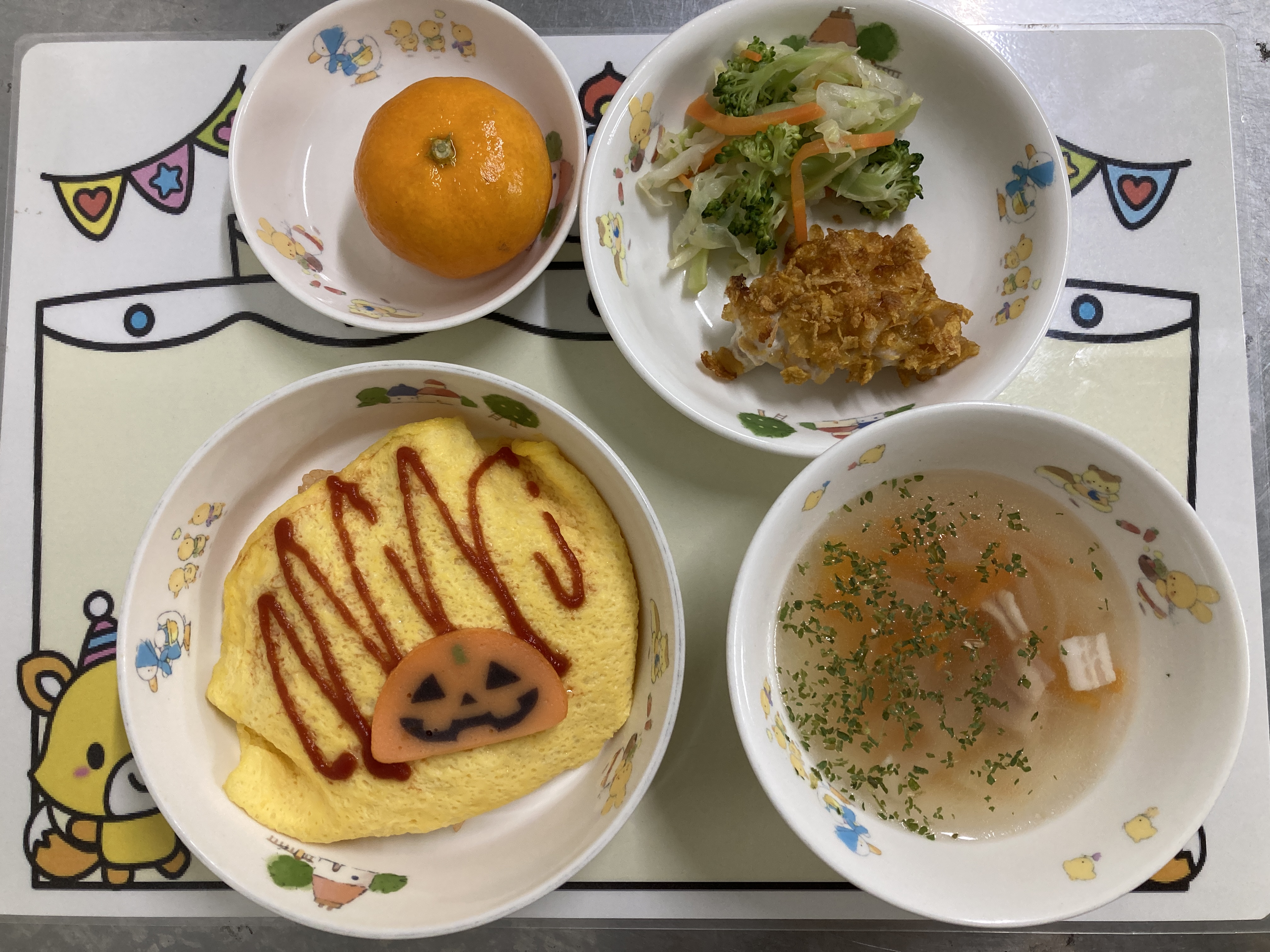 ハロウィンも近いので今日はかまぼこがジャックオランタンの形で子ども達はとても喜んでいました!