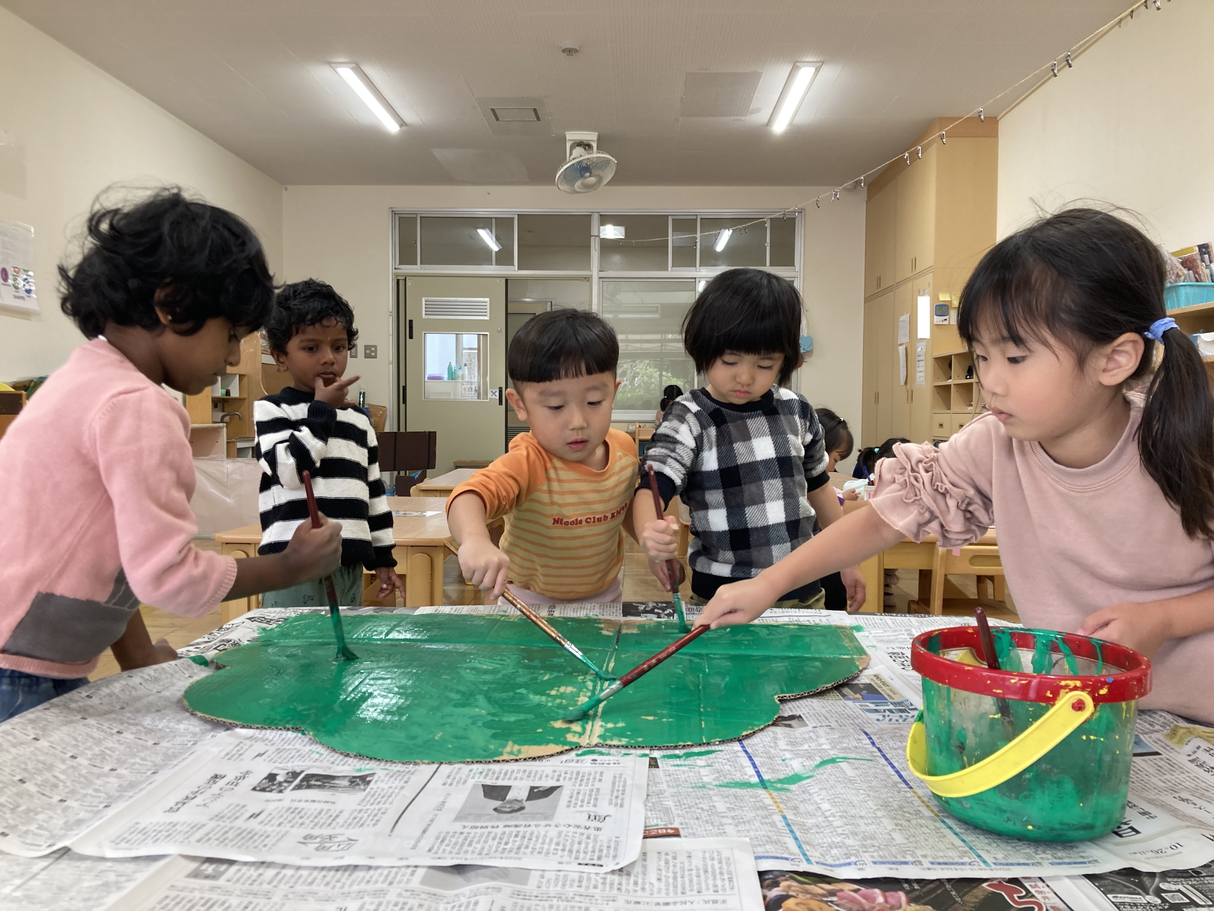塗れていない箇所を探し、お友達と協力して頑張っていましたよ☆
