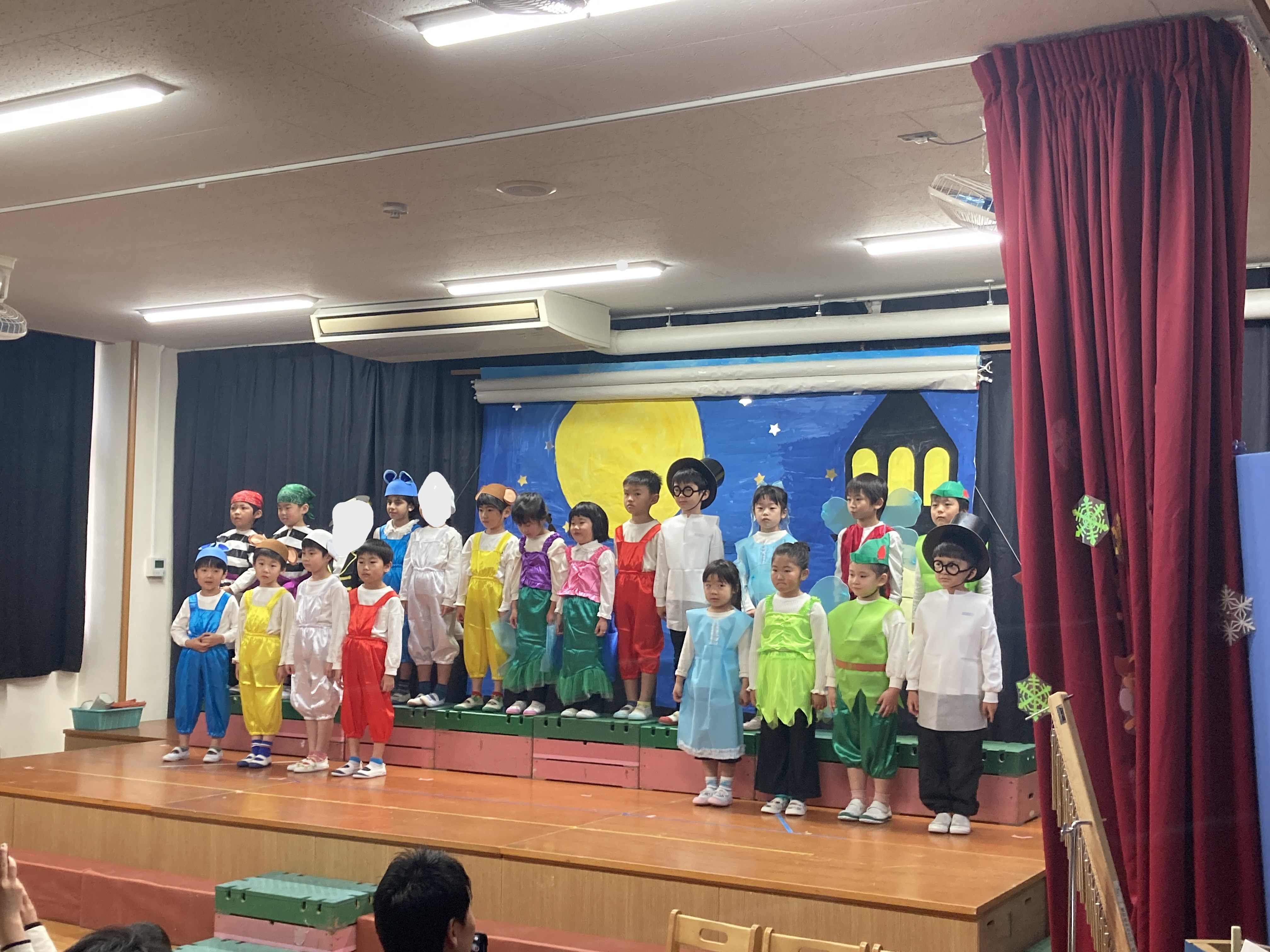 次はさくら組による発表です。劇で「ピーターパン」です。保育園生活最後の発表会で一人ひとりの子ども達が自信を持って台詞を言ったり役になりきる姿が見られました。最後の歌では迫力があり、とても上手に歌えていました!