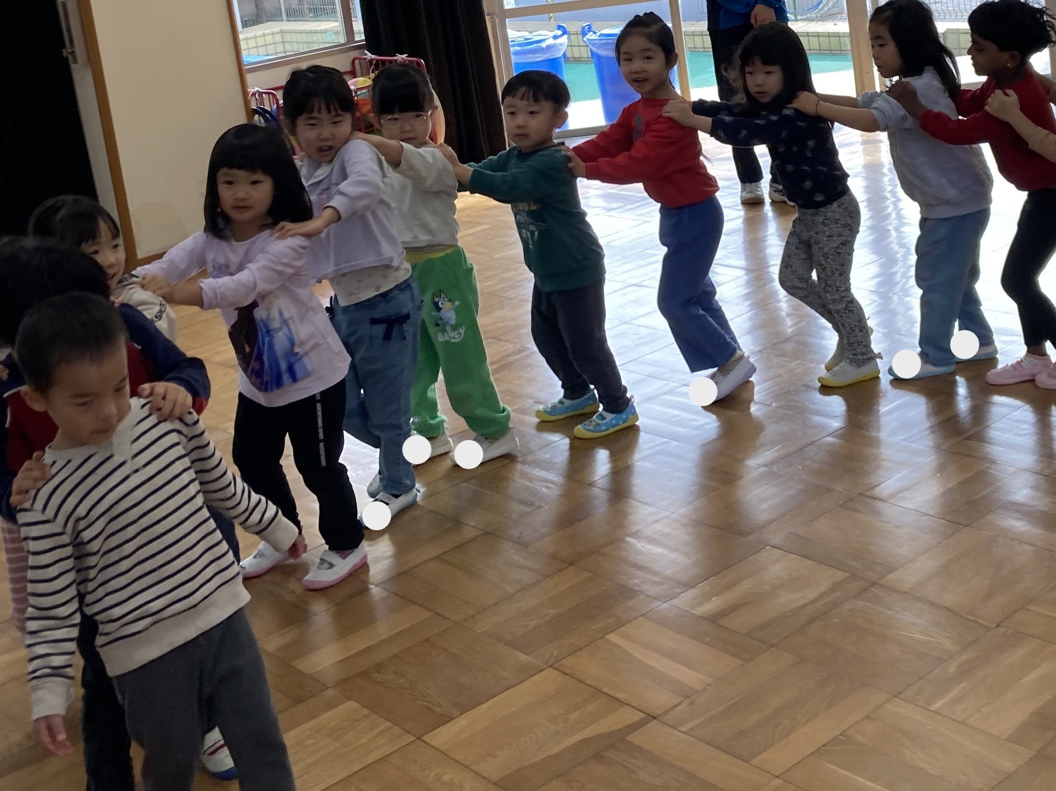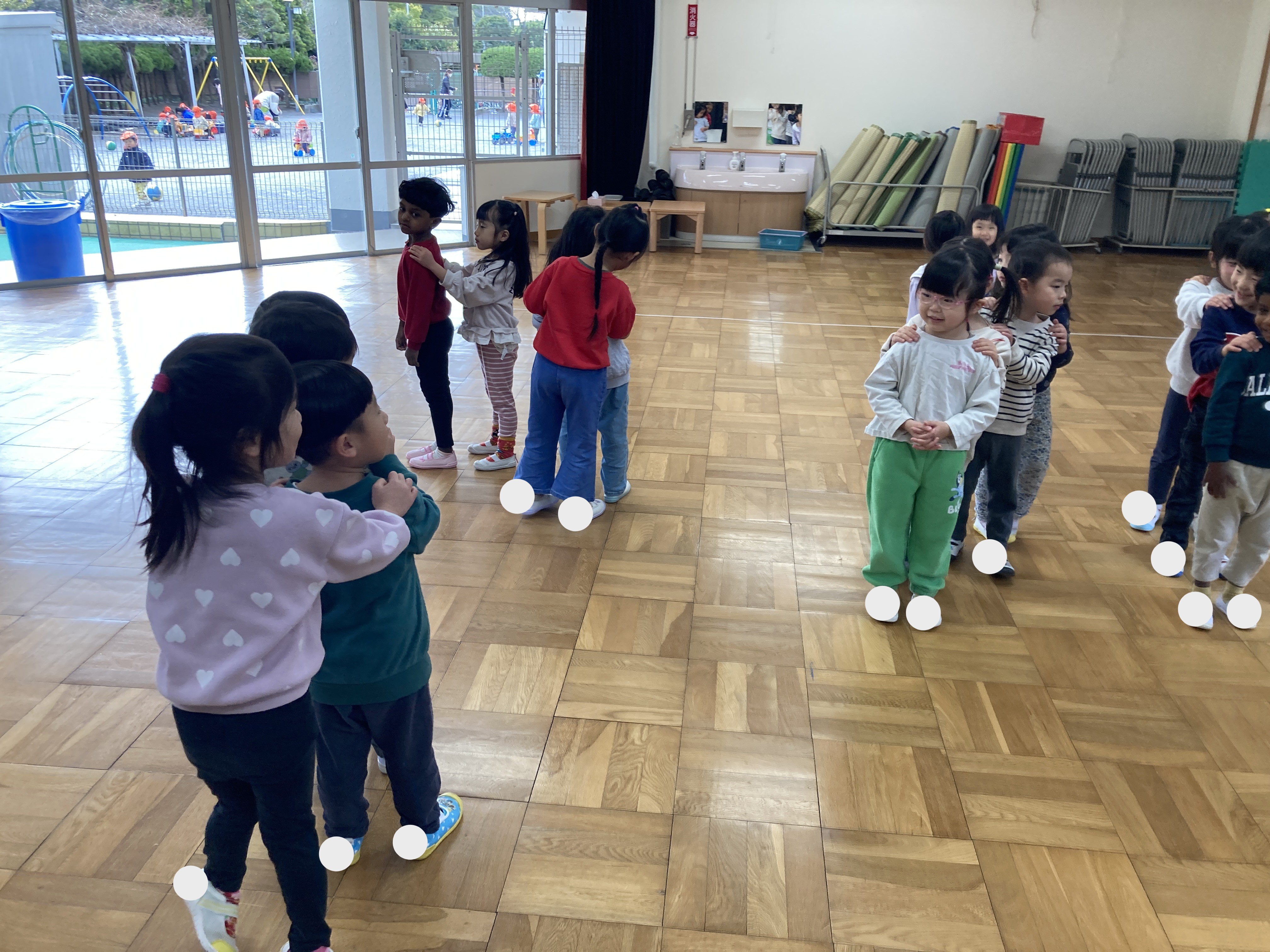 ホールではルールのある遊びを楽しんでいます。ルールは保育士と一緒に確認しながら行っていますが、最後まで勝った子は「やった!」とじゃんけん列車のチャンピオンになったことをとても喜んでいました!