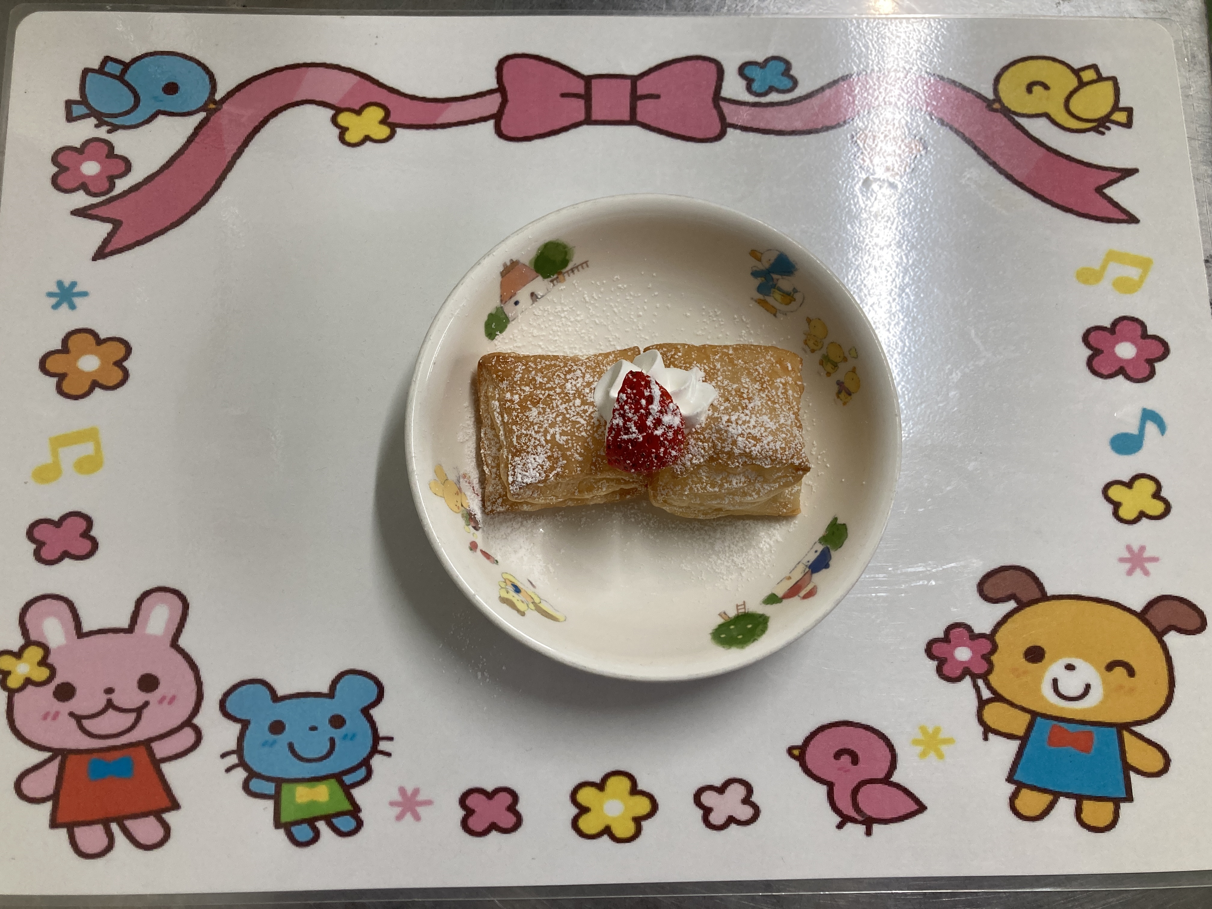今日は子ども達が大好きなオムライスやからあげだったので、「もっとたべたーい!」と言いいながら美味しそうに食べていました。