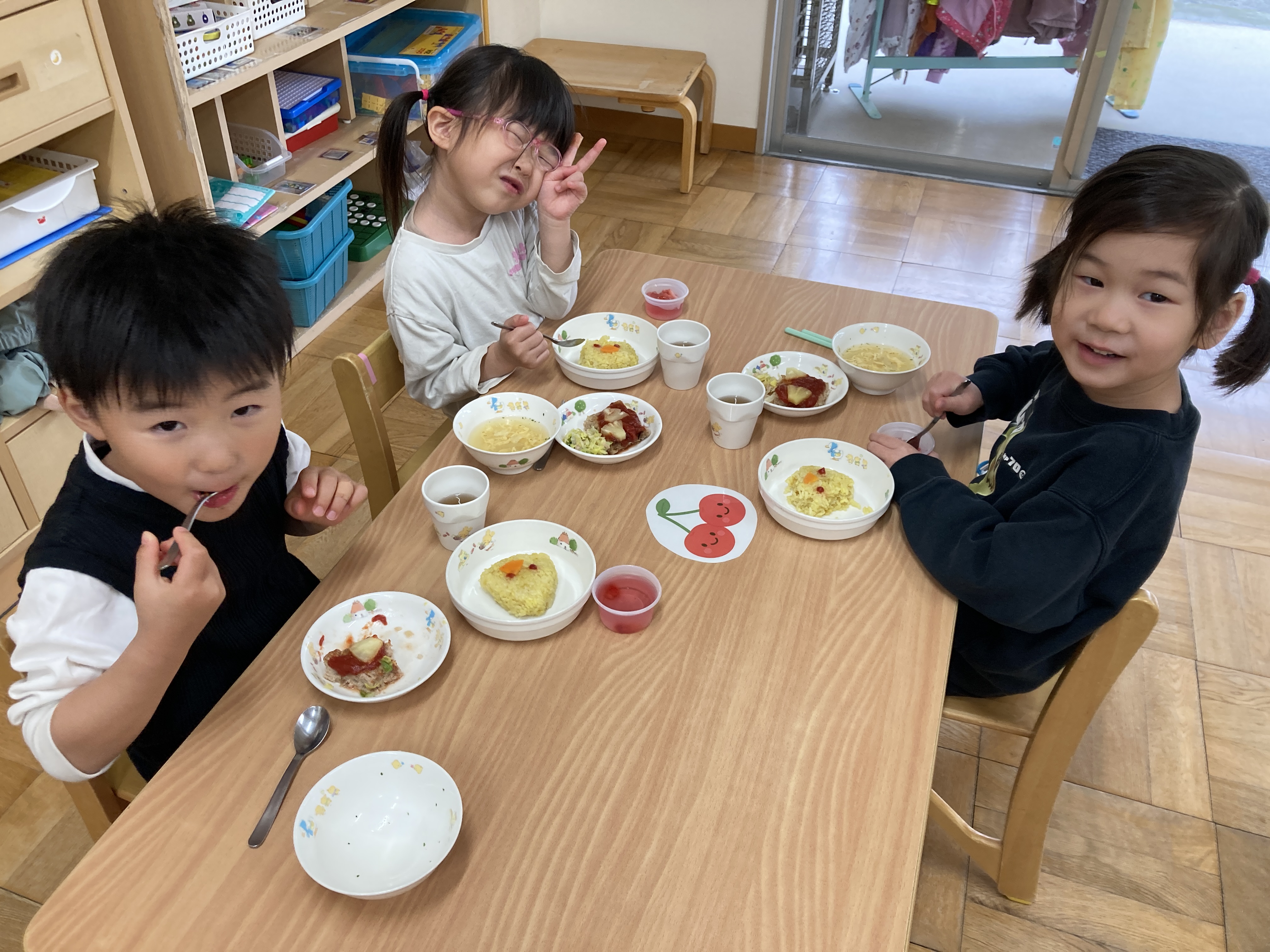 子どもたちの会話がはずんで楽しいお給食の時間となりました。