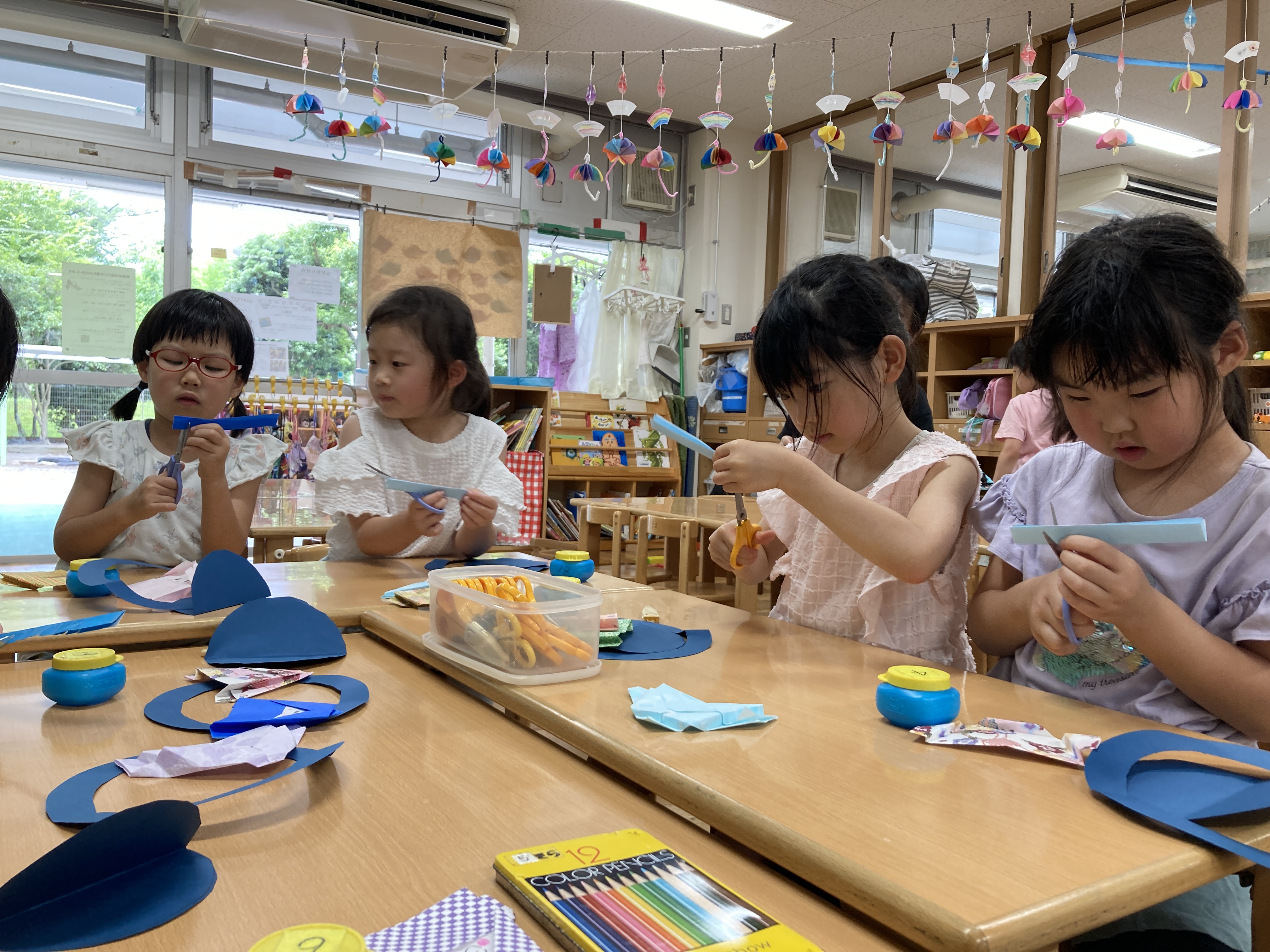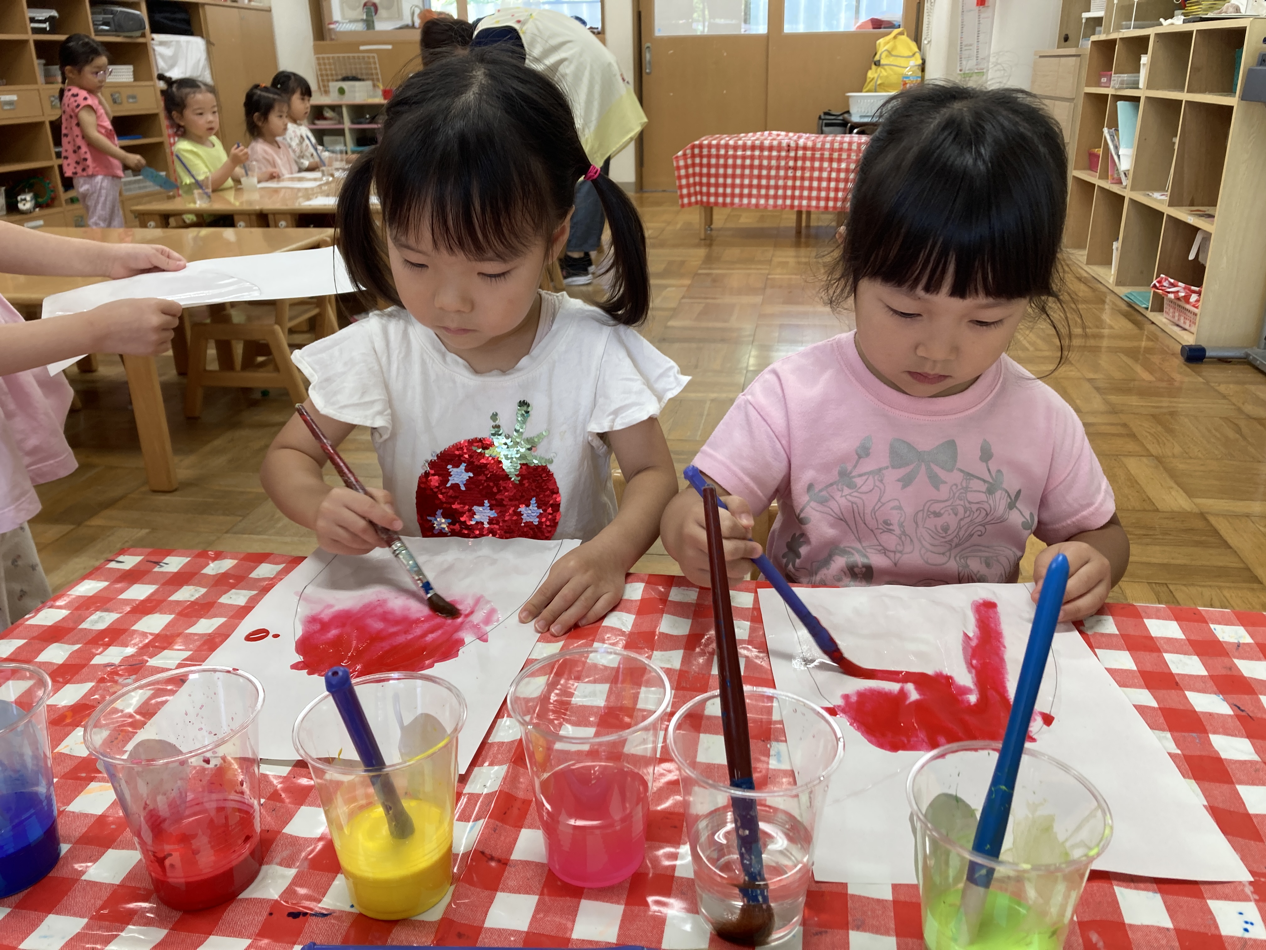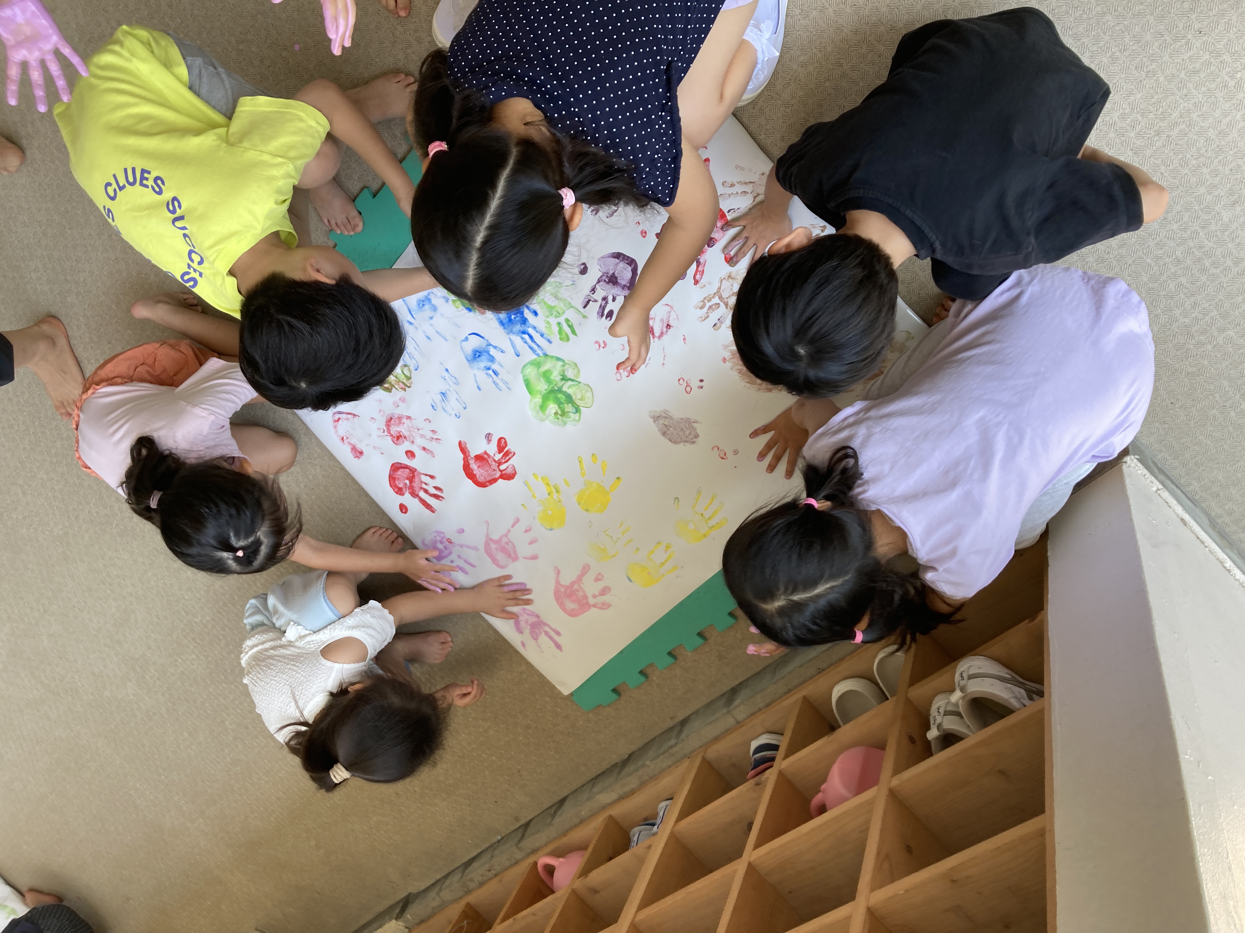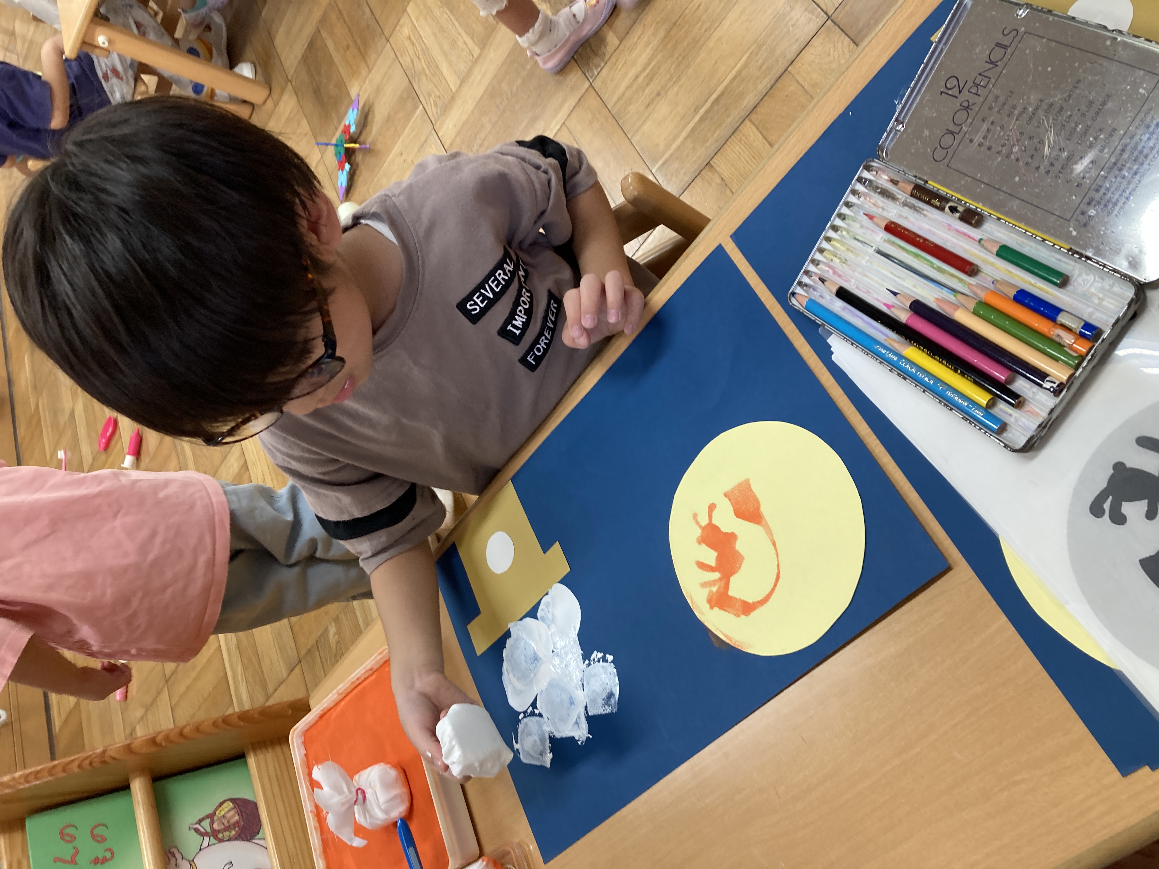 子どものペースに合わせて少人数で行う乳児さんから、みんなで説明を聞きながら制作に取り組む幼児さんまで、年齢に合わせた進め方で子ども達が楽しめるように工夫しています。