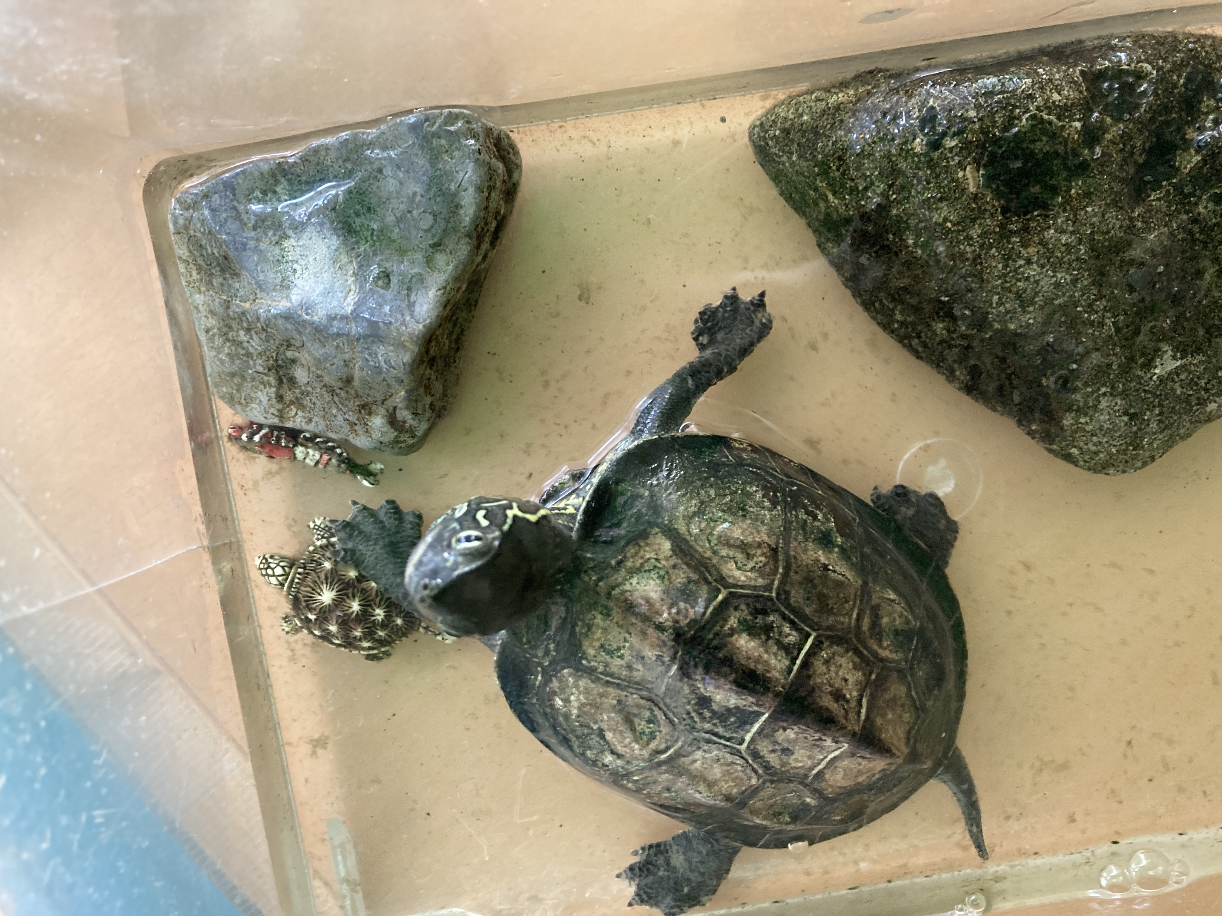 新田おひさま保育園には、亀の“カメチキ”とカニの“カニコ”がいます。