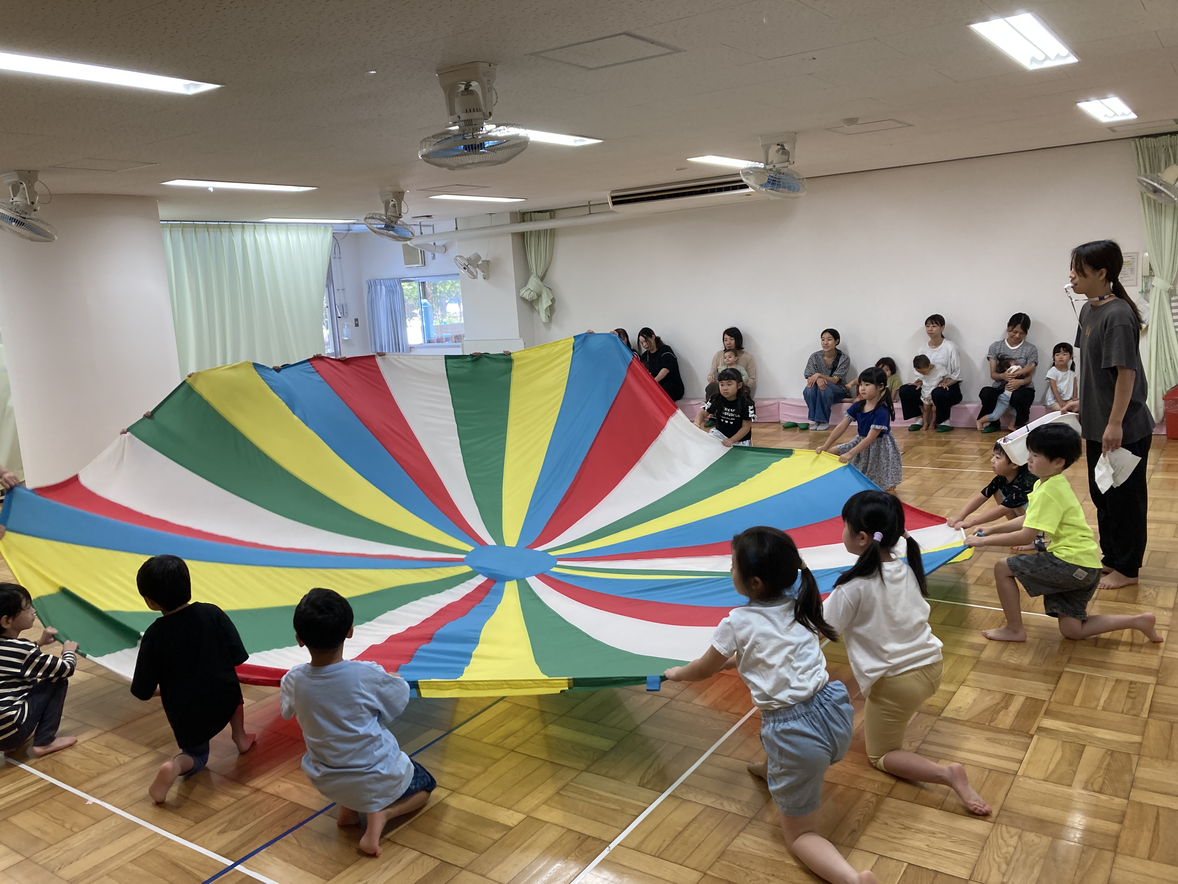 毎月1~2回、地域の子育て中の方に来ていただき、保育園の子ども達と交流したり遊んだりする機会を設けています。