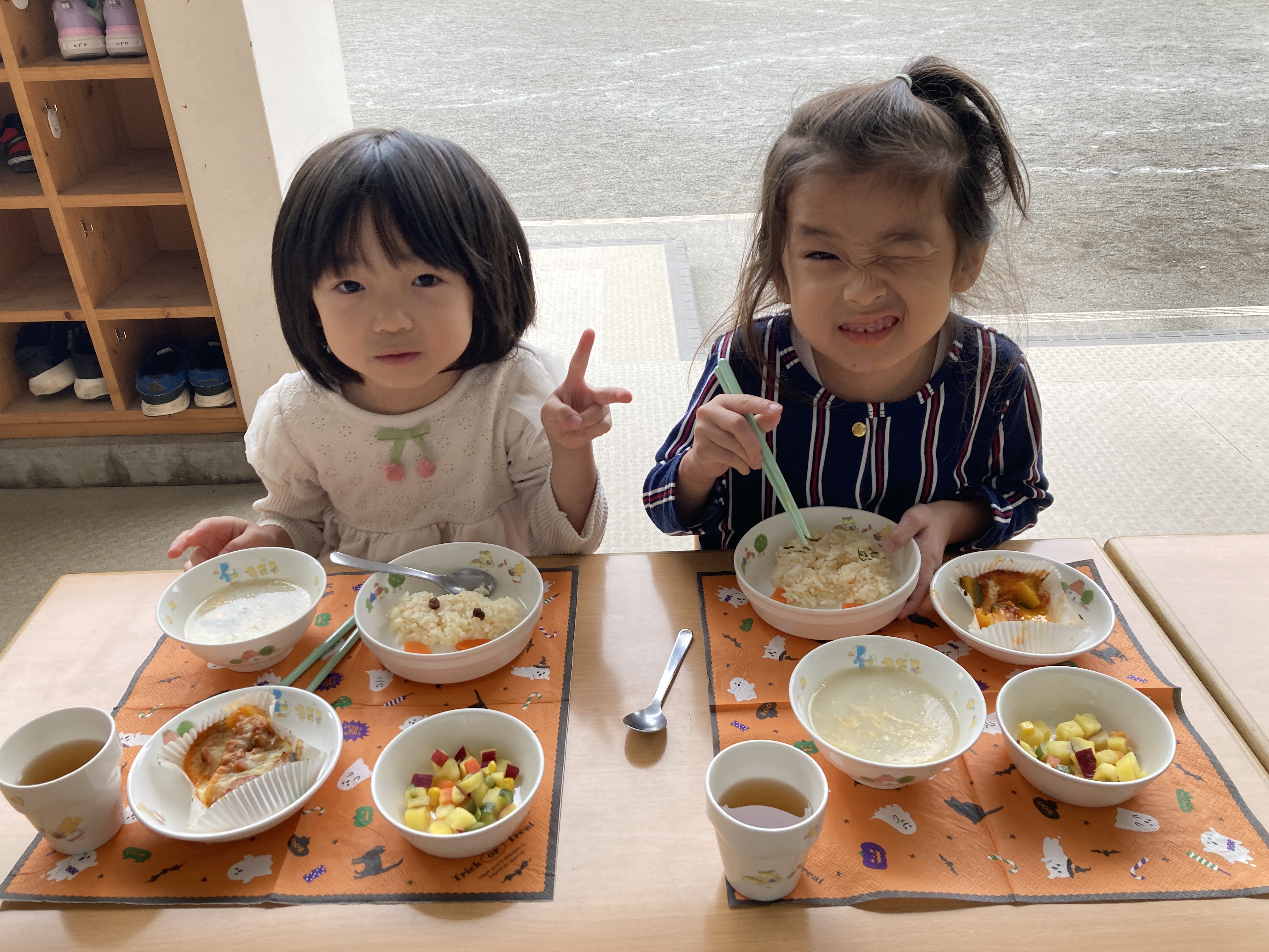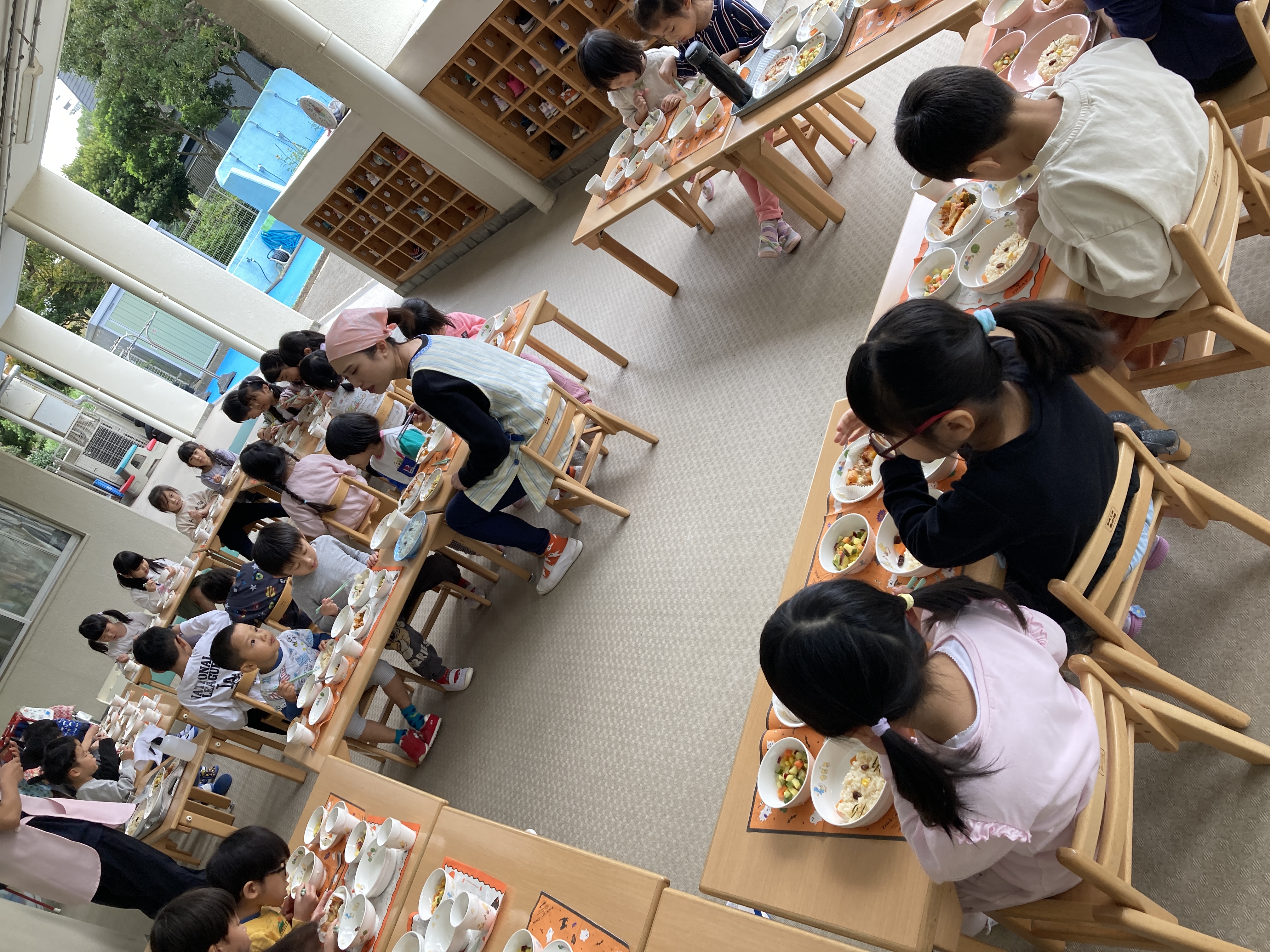 4・5歳児クラスはテラスで一緒にご飯を食べました!