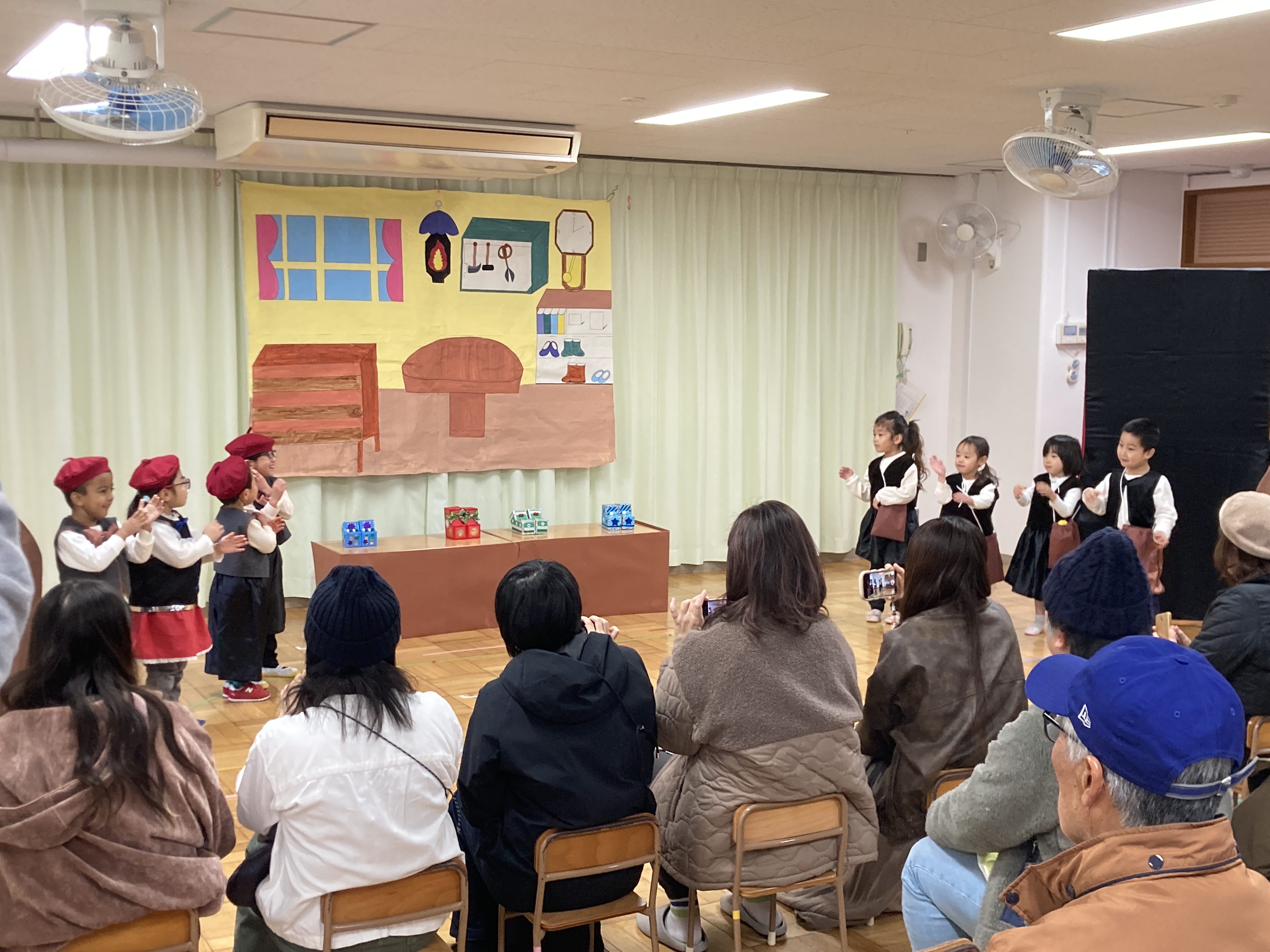 練習が始まってから、毎日劇に歌にとたくさん頑張ってきた子ども達。今日はいよいよ本番ということで、緊張の中の発表でしたが、保護者の方々に見てもらえてとても嬉しかったと思います。