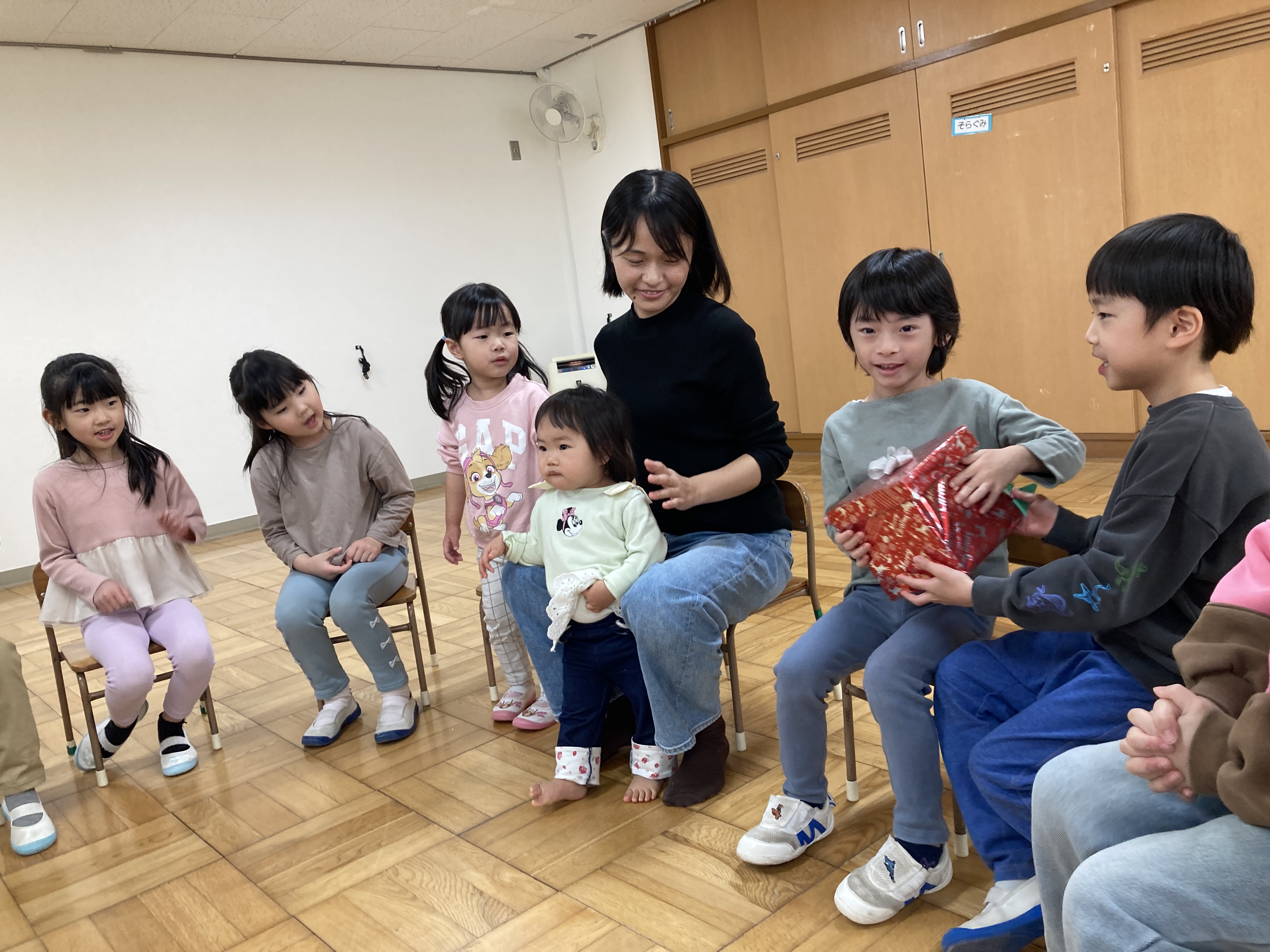 そして、爆弾ゲームのクリスマスバージョンという事でプレゼントの箱を音楽に合わせて回すゲームをしました。とても楽しくあっという間の時間でした。