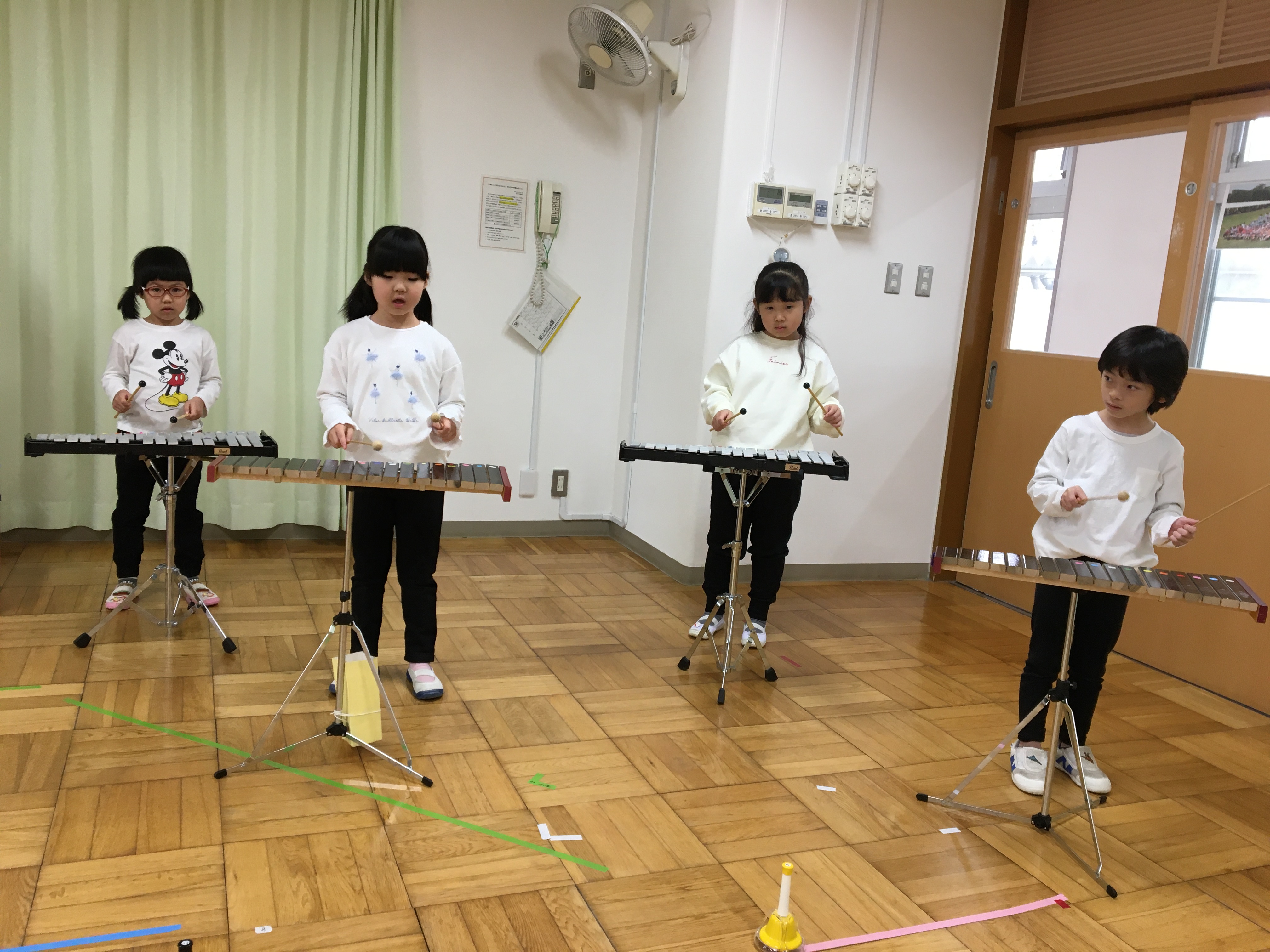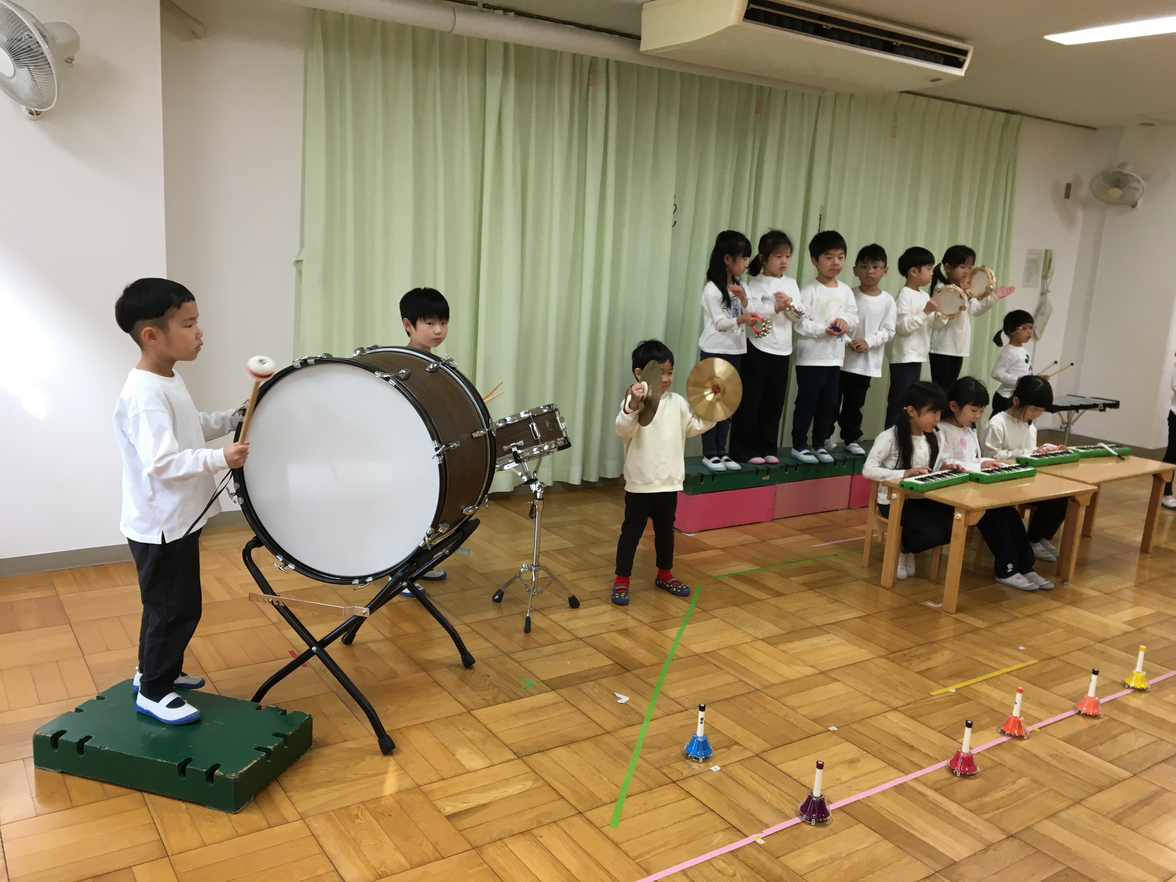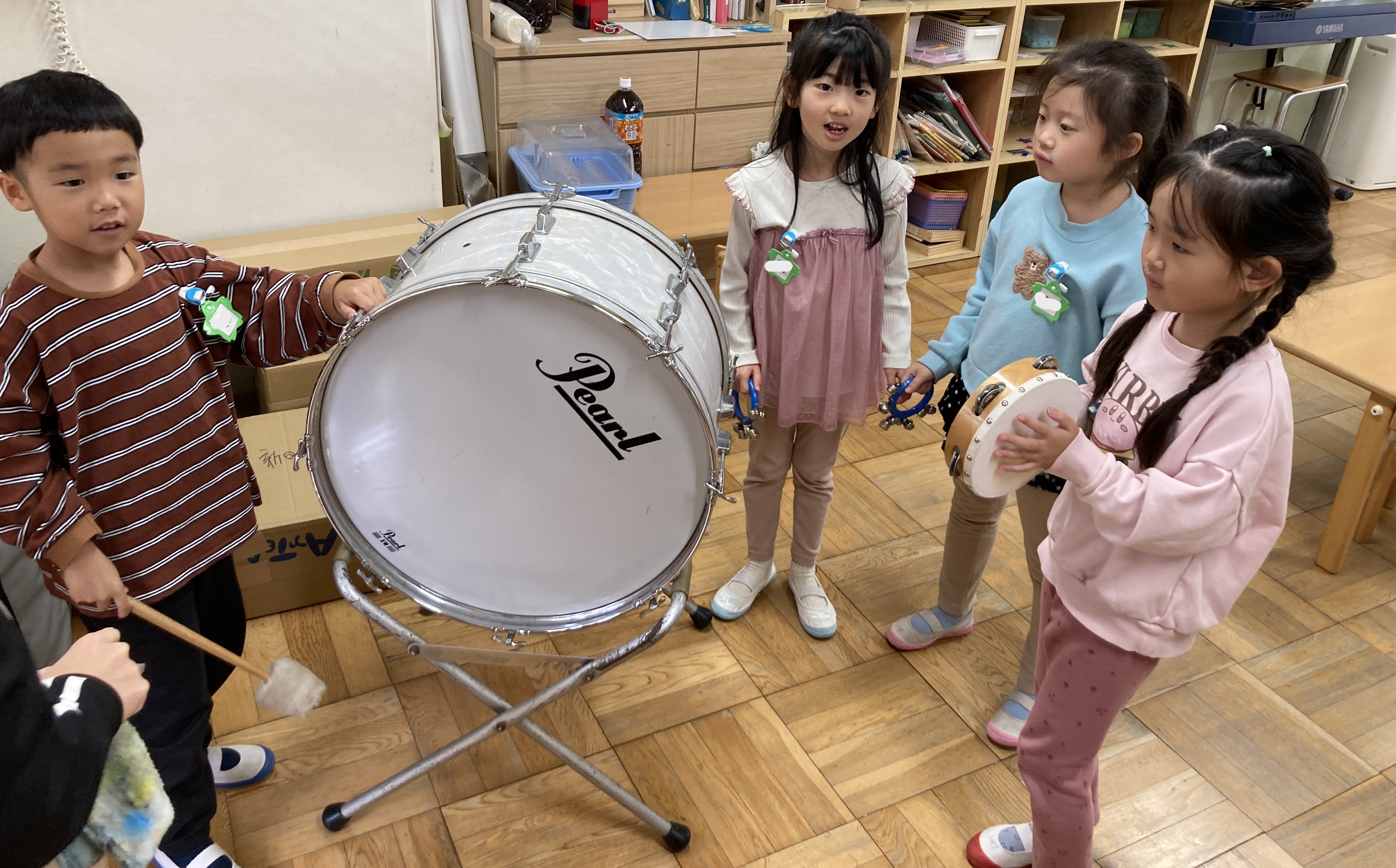 練習姿を4歳児のお友だちが興味深々で見ていたので、次回は4歳児でも合奏をして様々な楽器に触れて楽しんでいきたいと思います。