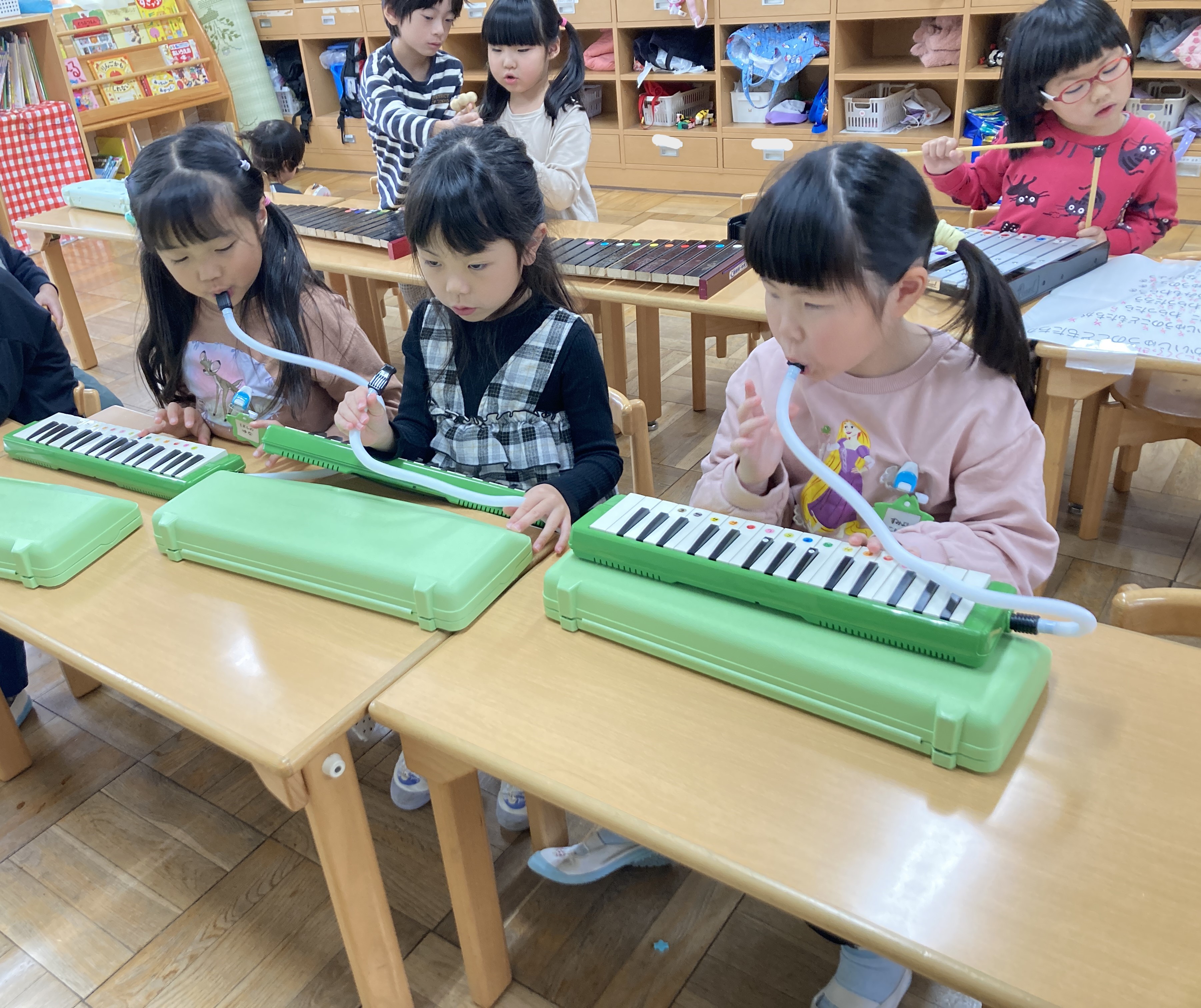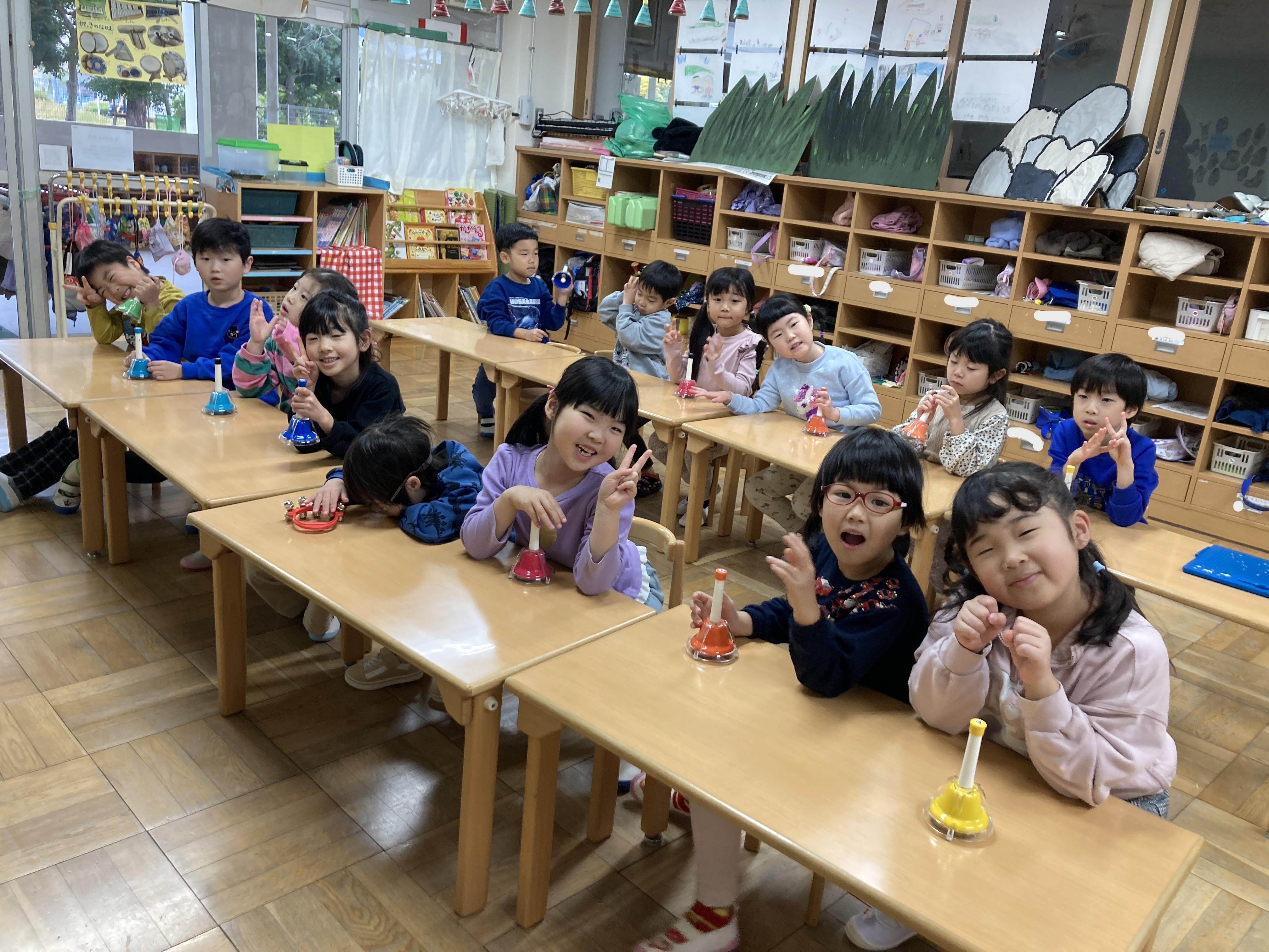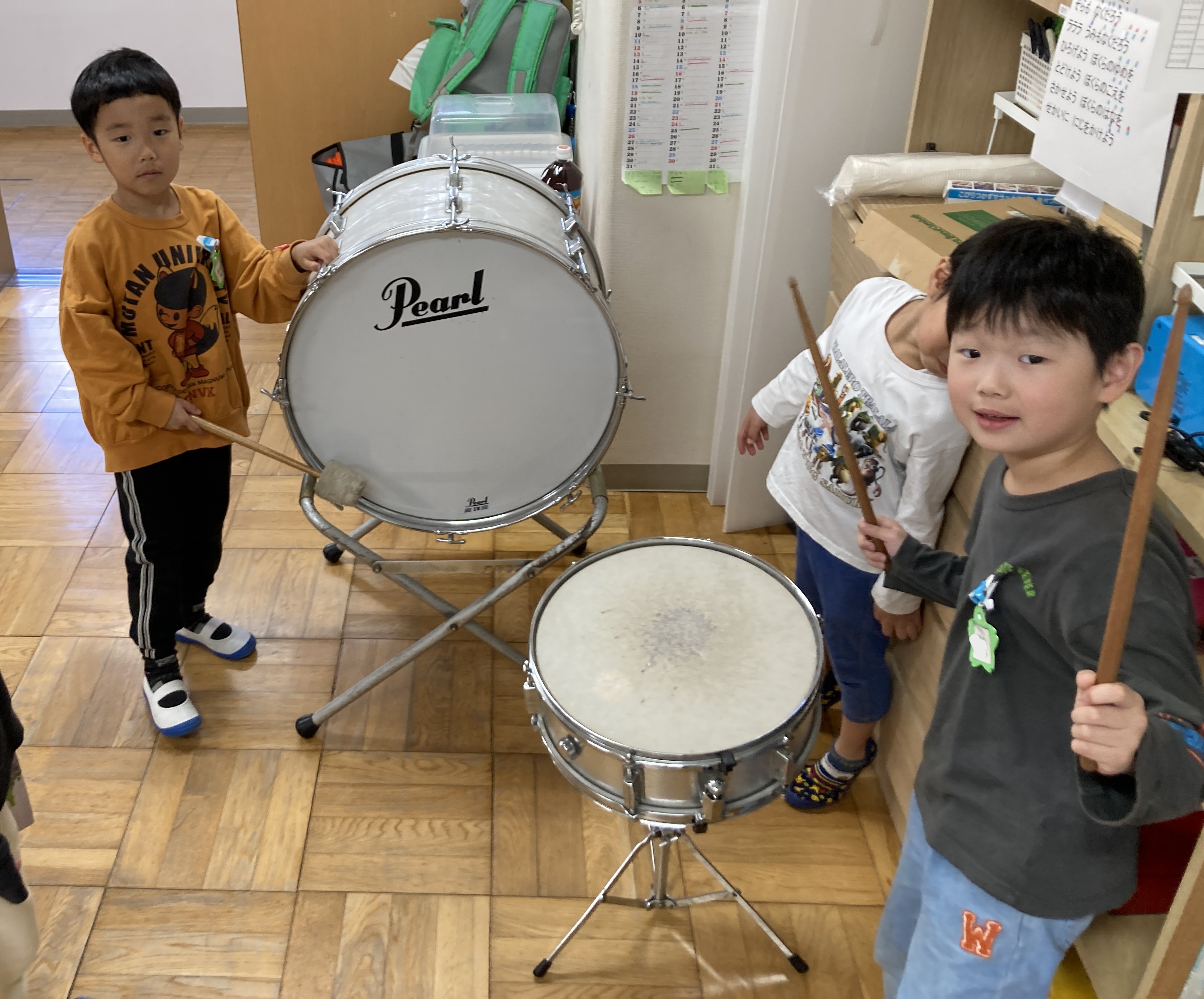 練習姿を4歳児のお友だちが興味深々で見ていたので、次回は4歳児でも合奏をして様々な楽器に触れて楽しんでいきたいと思います。