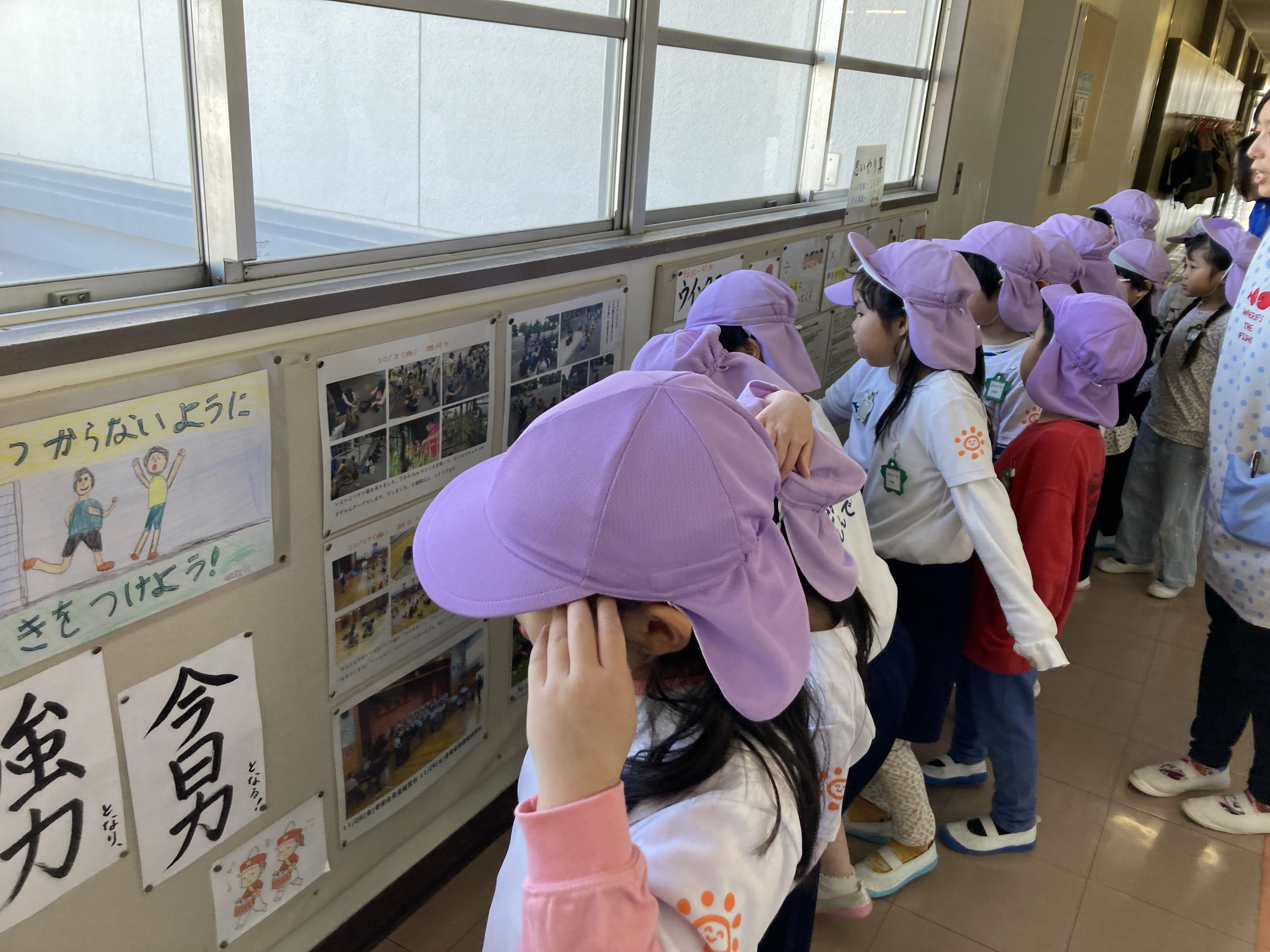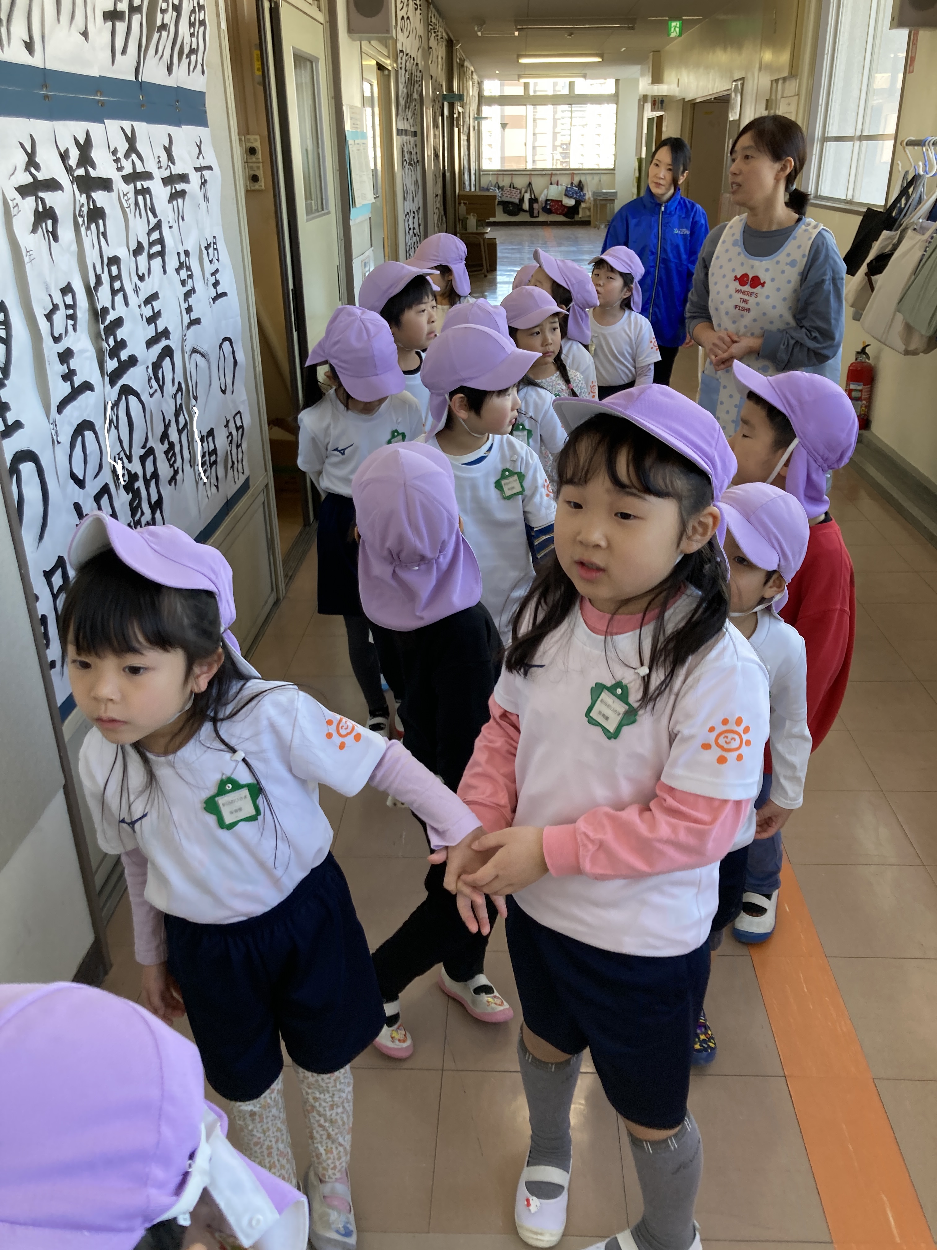 保育園生活残り3ヵ月を切った5歳児のたいよう組さんは先日、近隣にある新田小学校の書初め展にお邪魔させて頂きました。