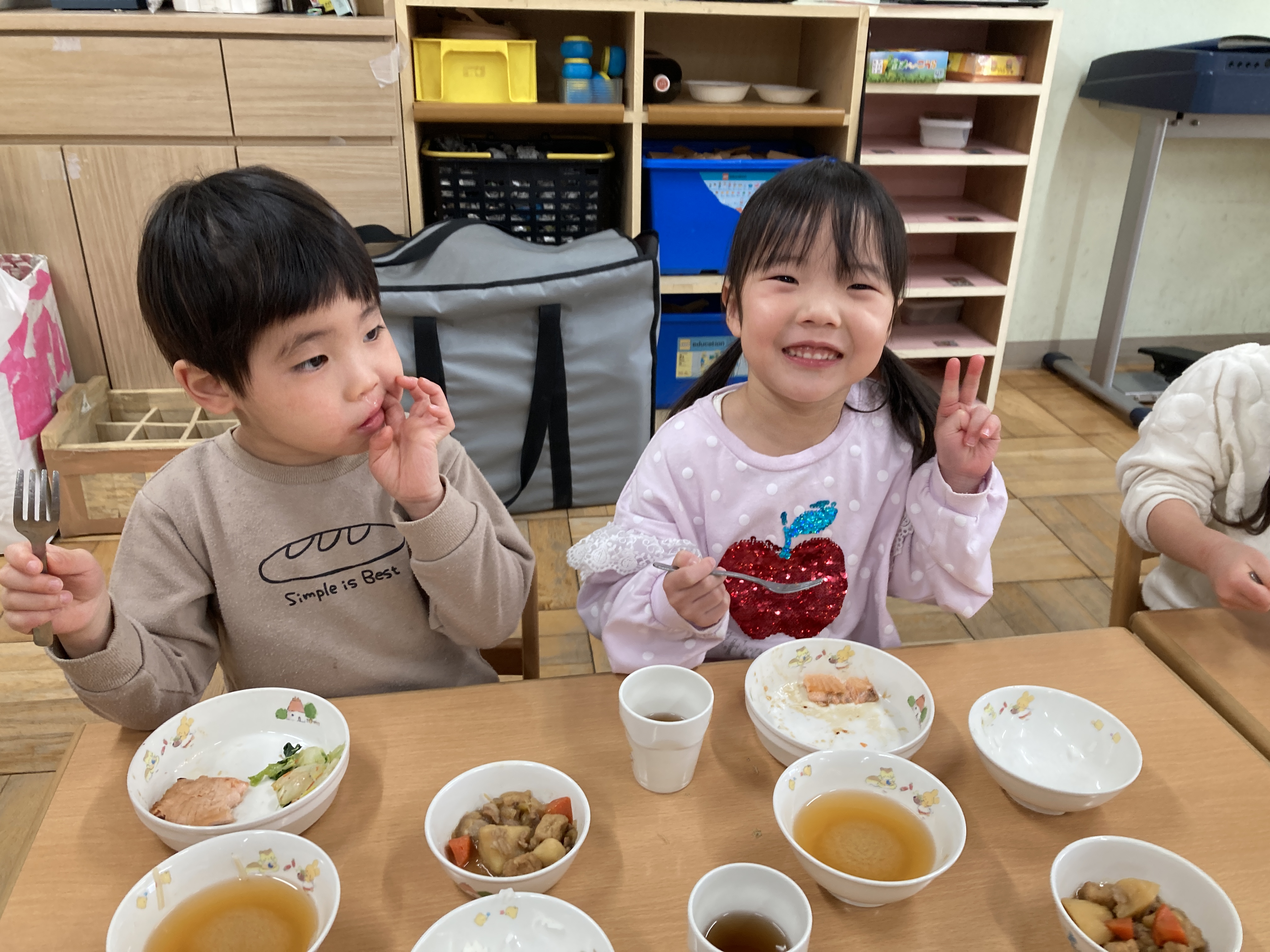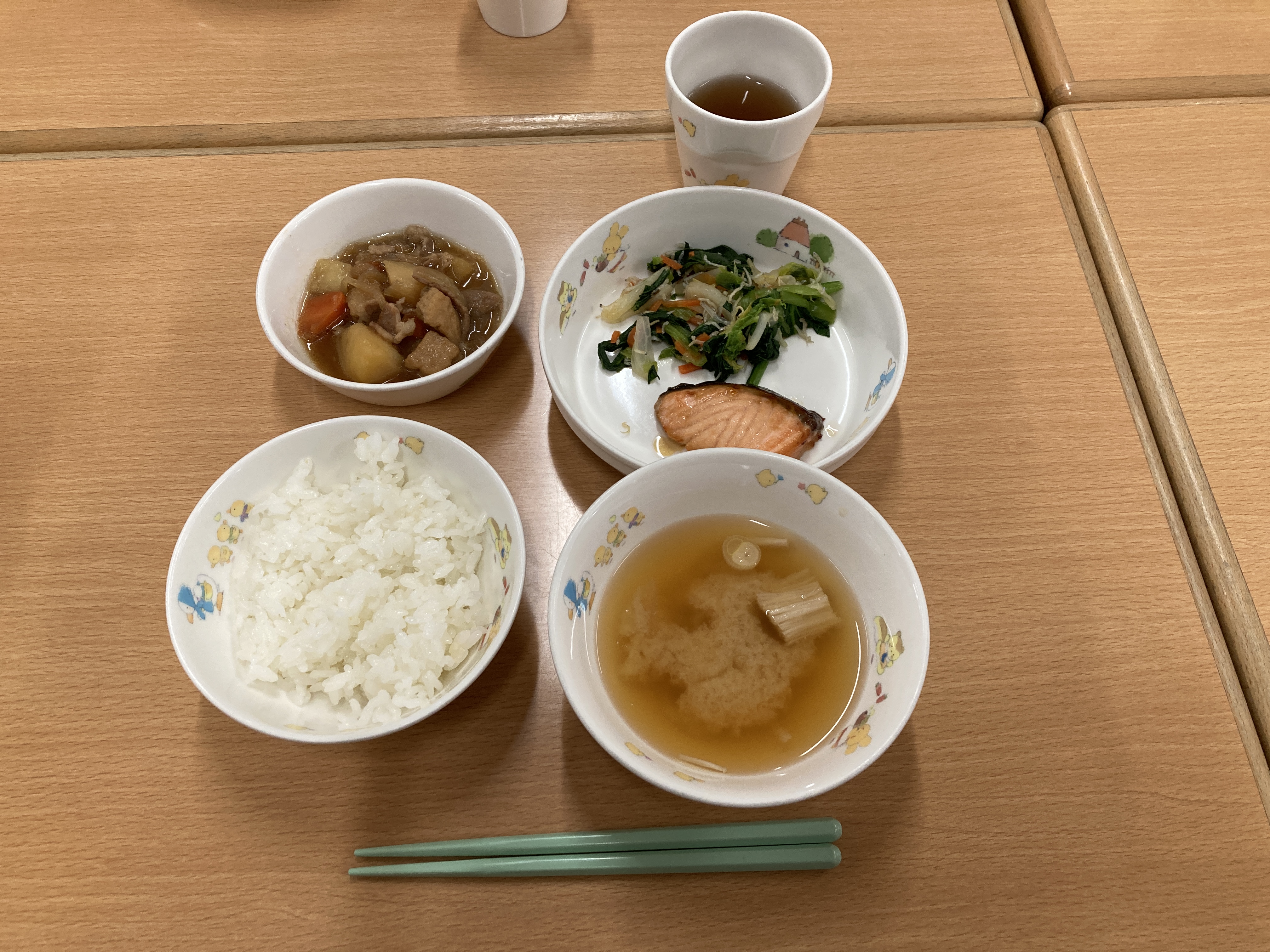 切りたてのサケは給食さんに調理してもらい、美味しい照り焼きに変身!