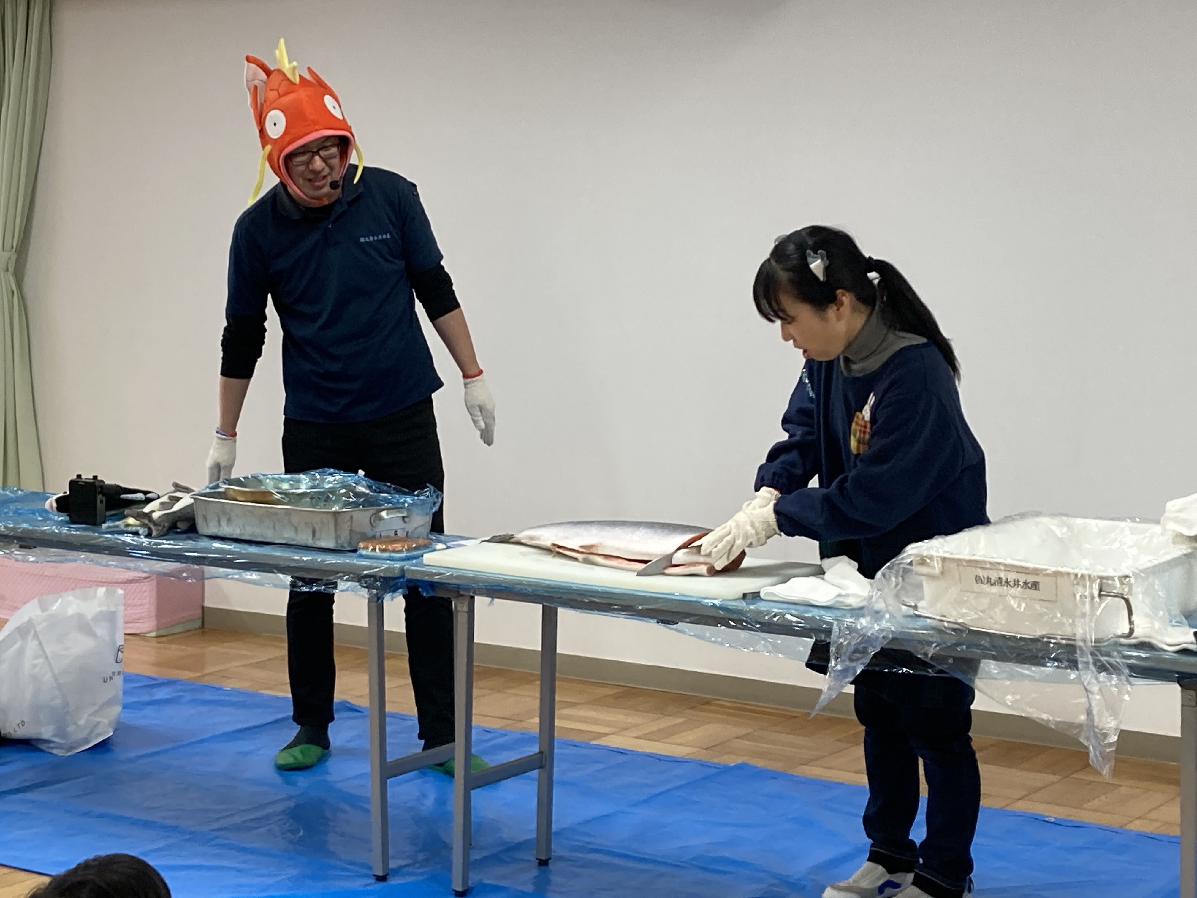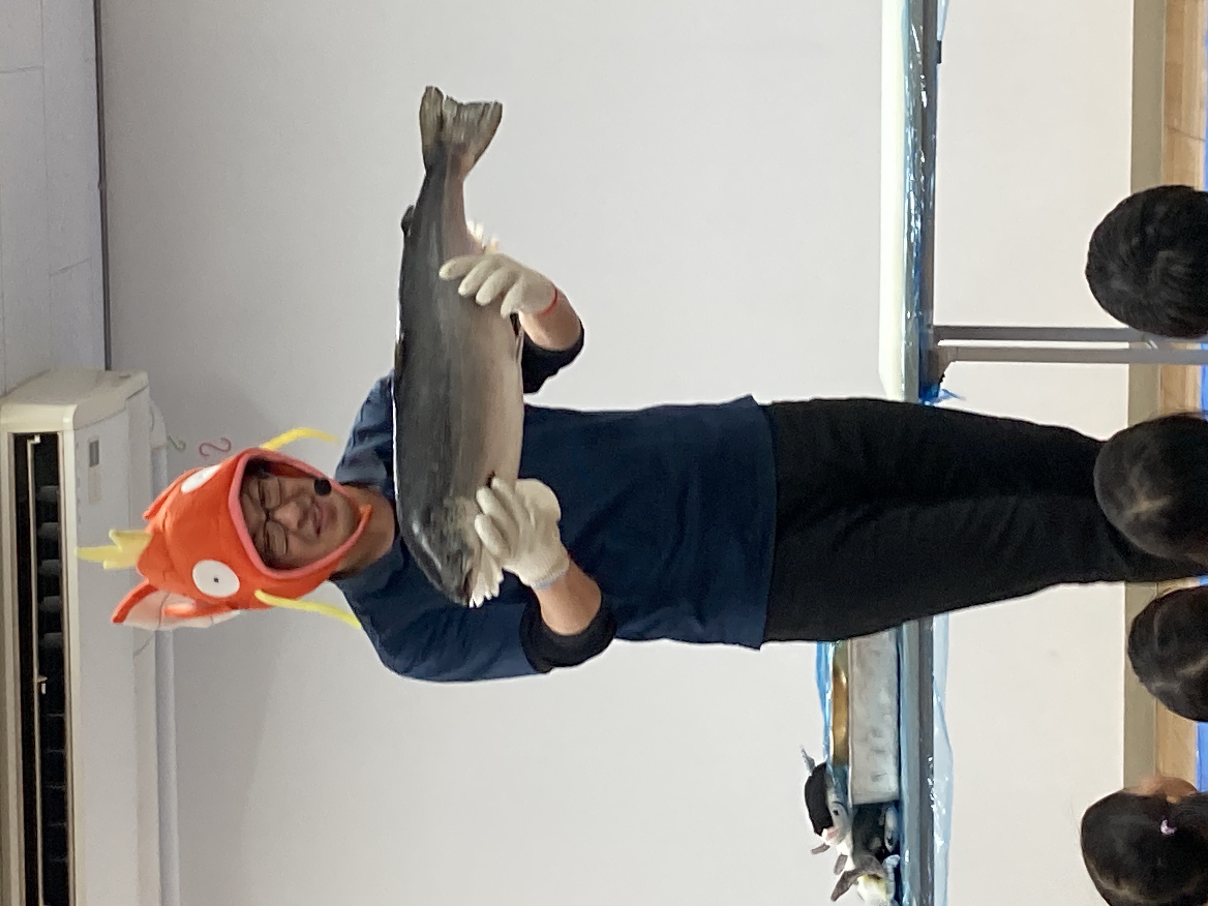 今日はホールで魚の解体を見学しました。