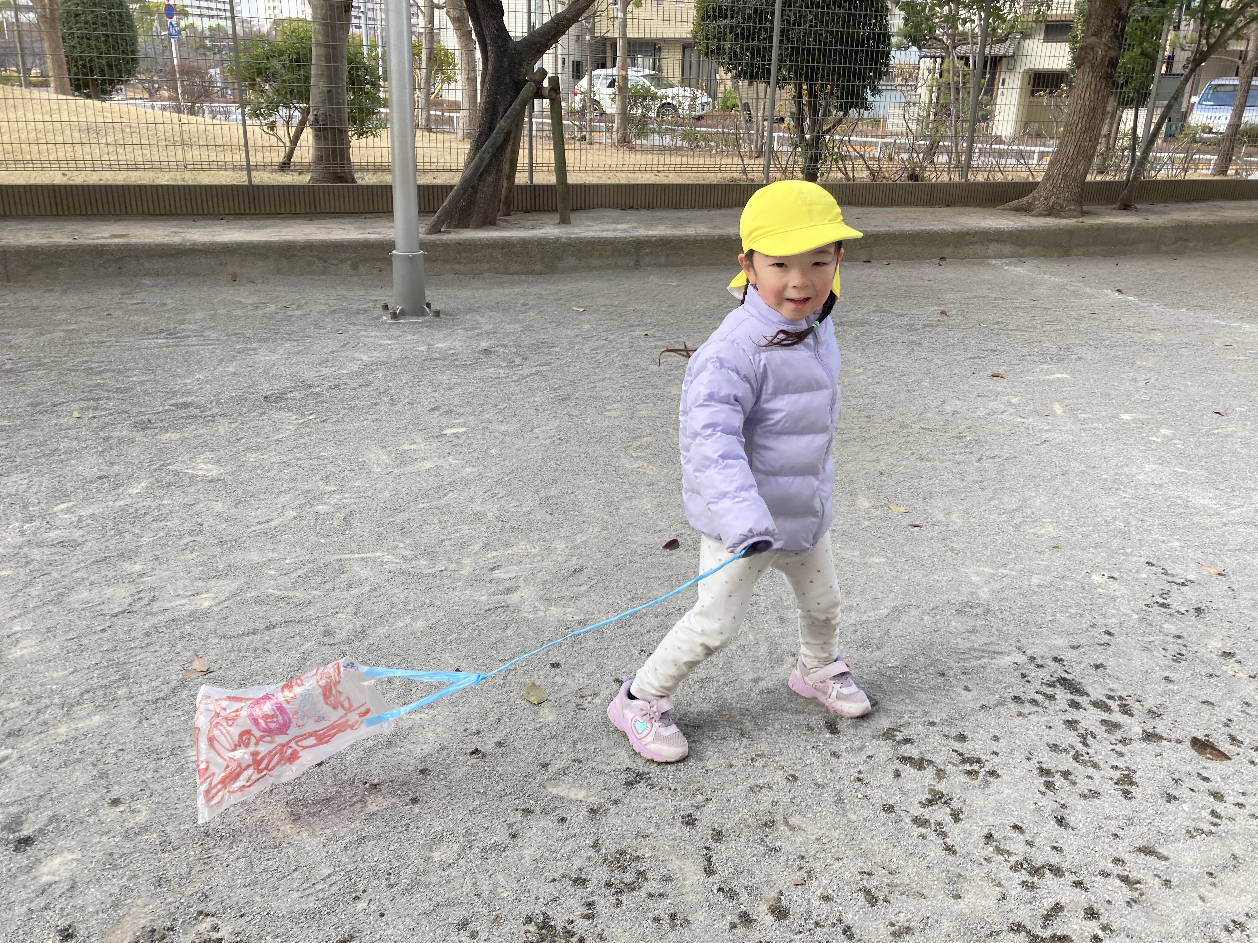保育園ではやま組さんがオリジナル凧を作成して、凧あげを楽しんでいましたよ♪