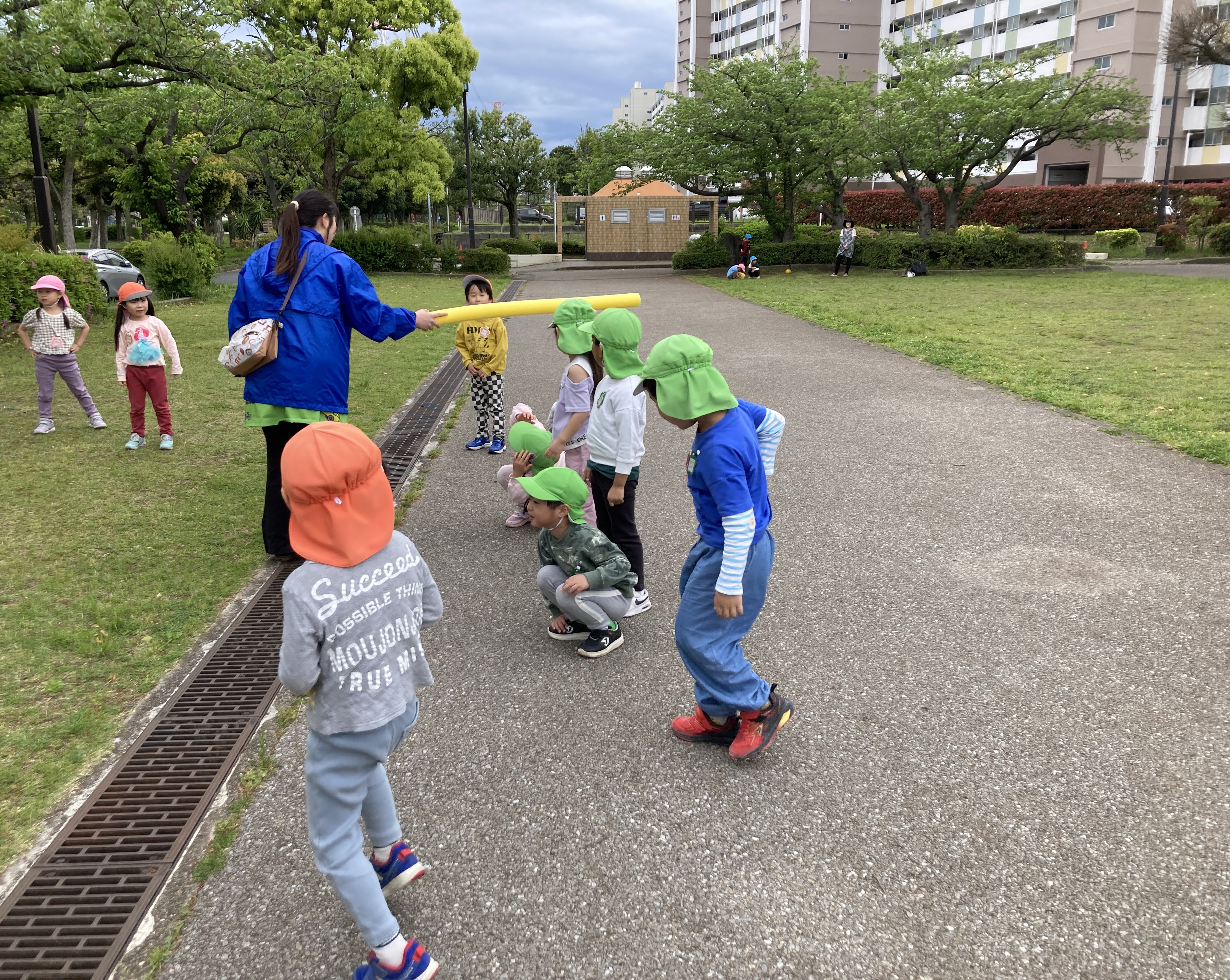 今回は“なんでもバスケット”“なべなべ底抜け”“跳んでしゃがんではいゴール”の3つのゲームを楽しみました。