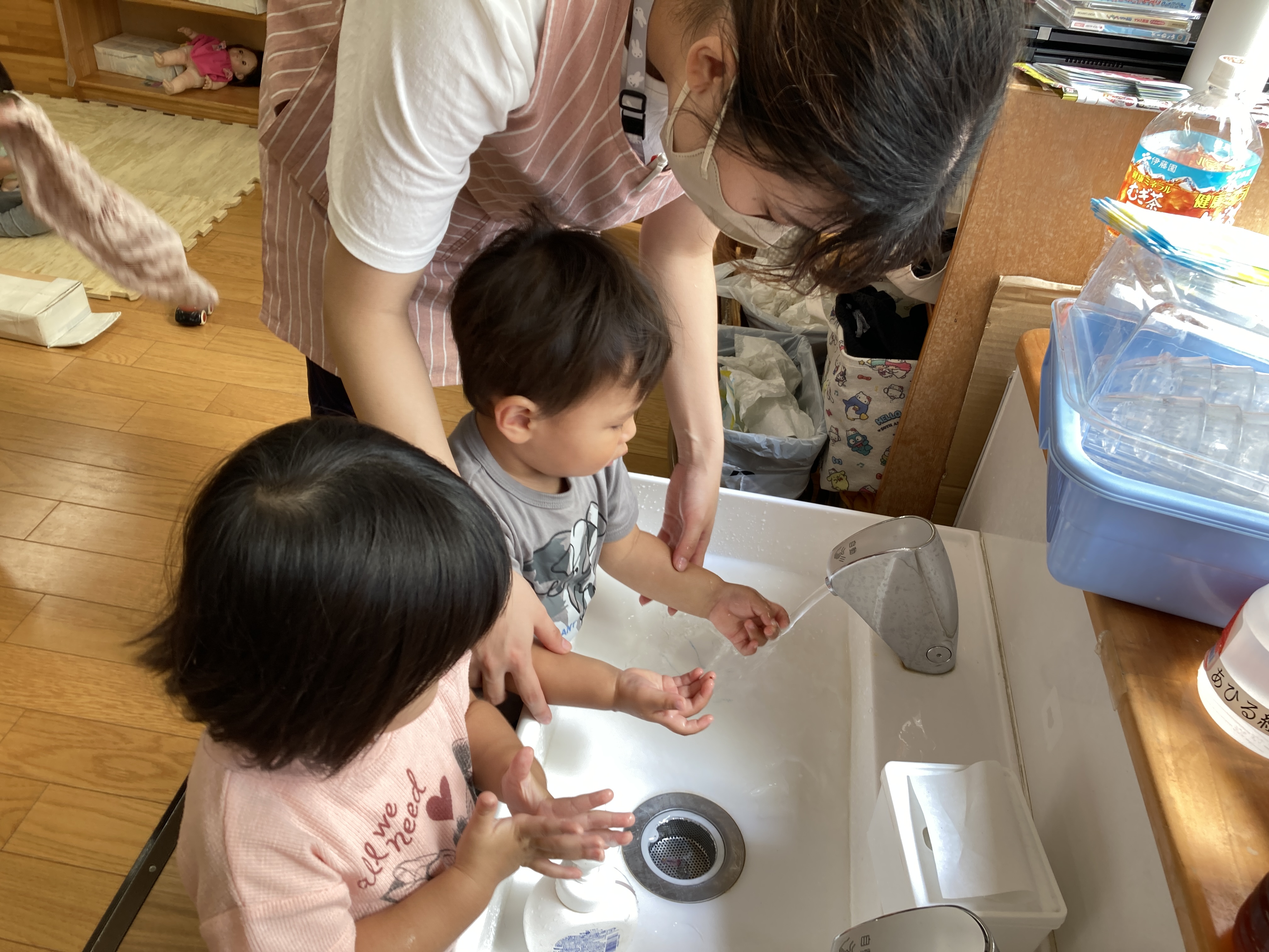 手洗いや食事も楽しく教えてもらい、上手になってきました。