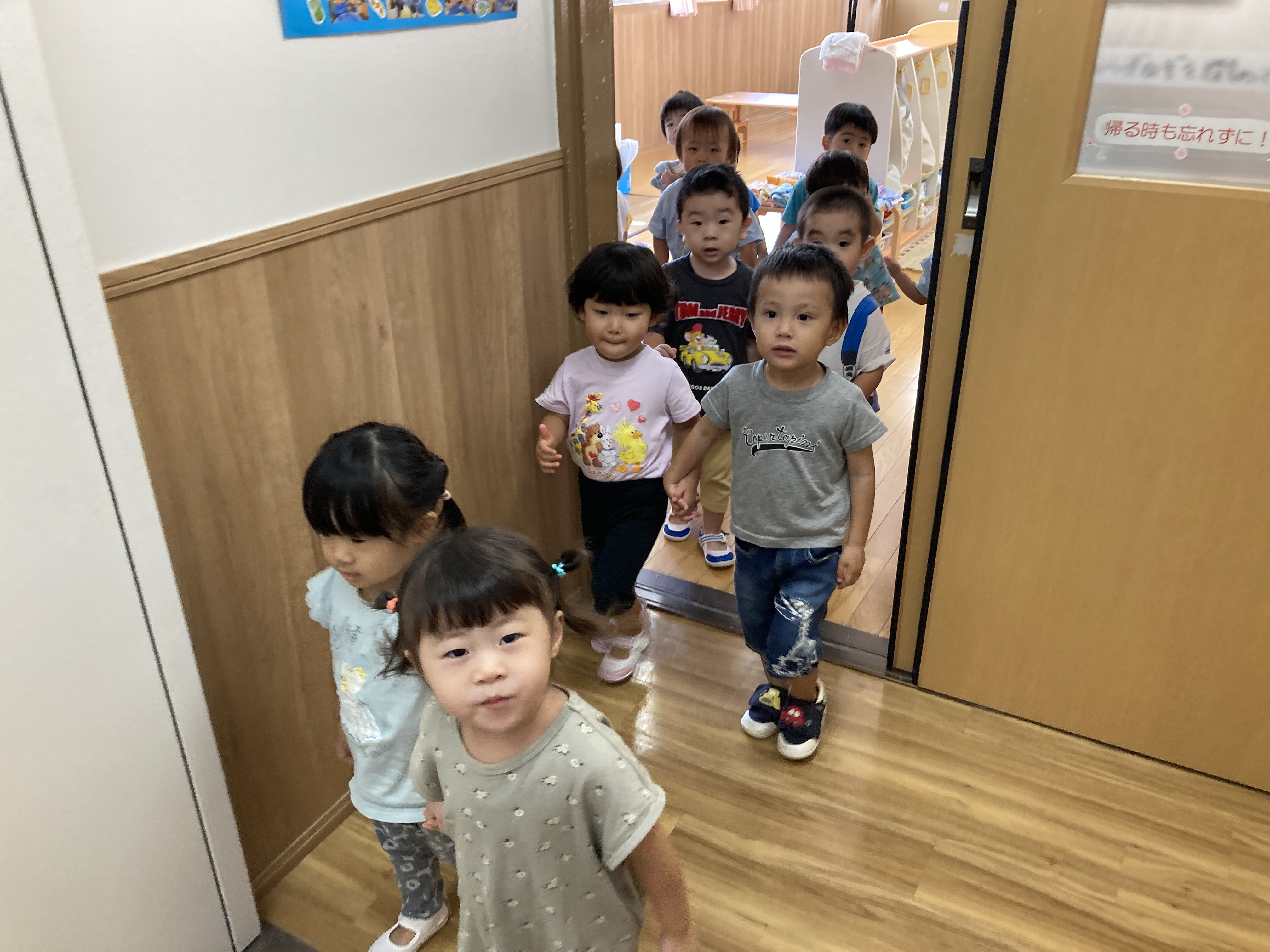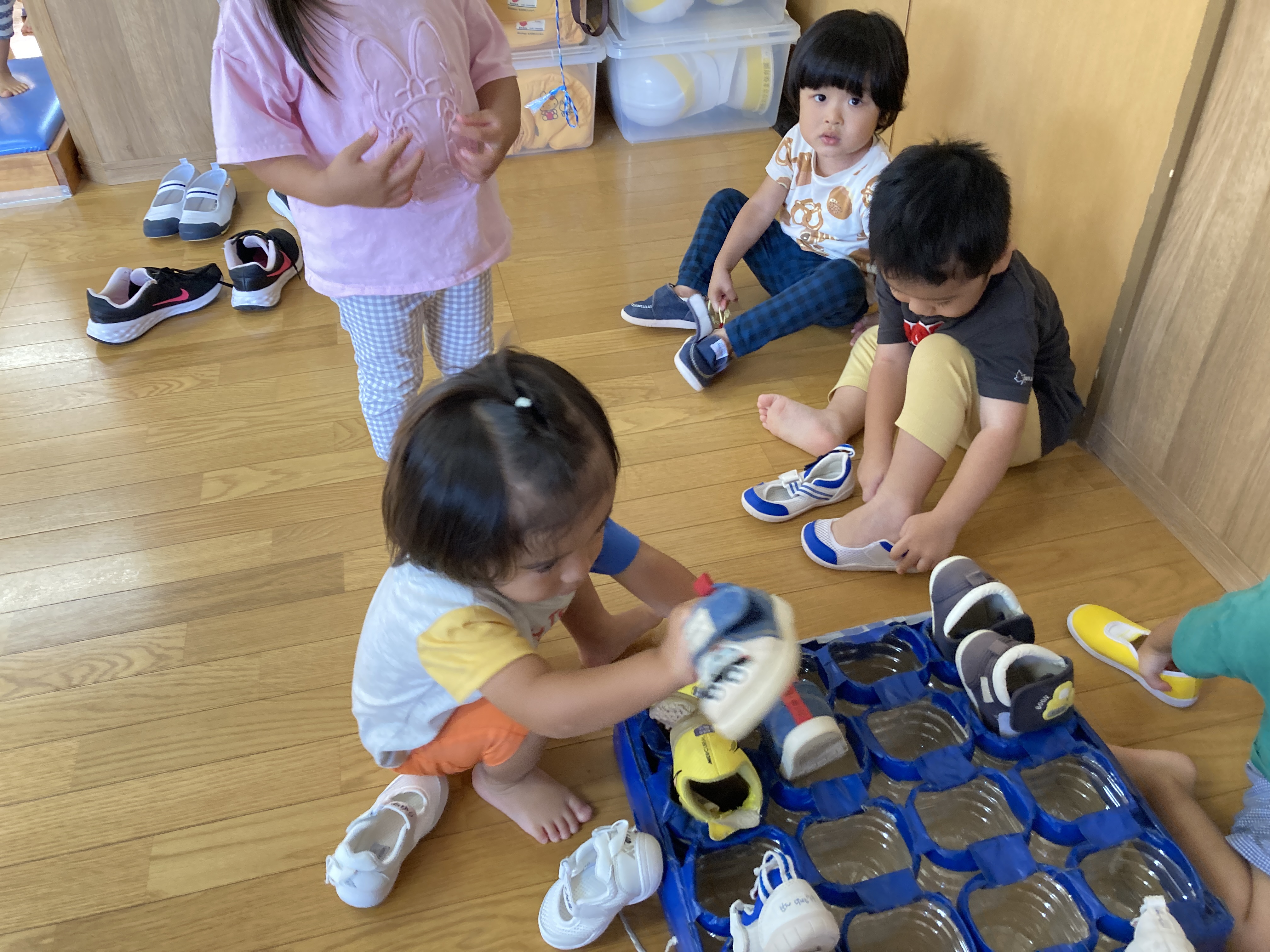 2階に保育室があるので、お部屋からの移動の際はいつも上履きを履くので、ささっと履くことができます。