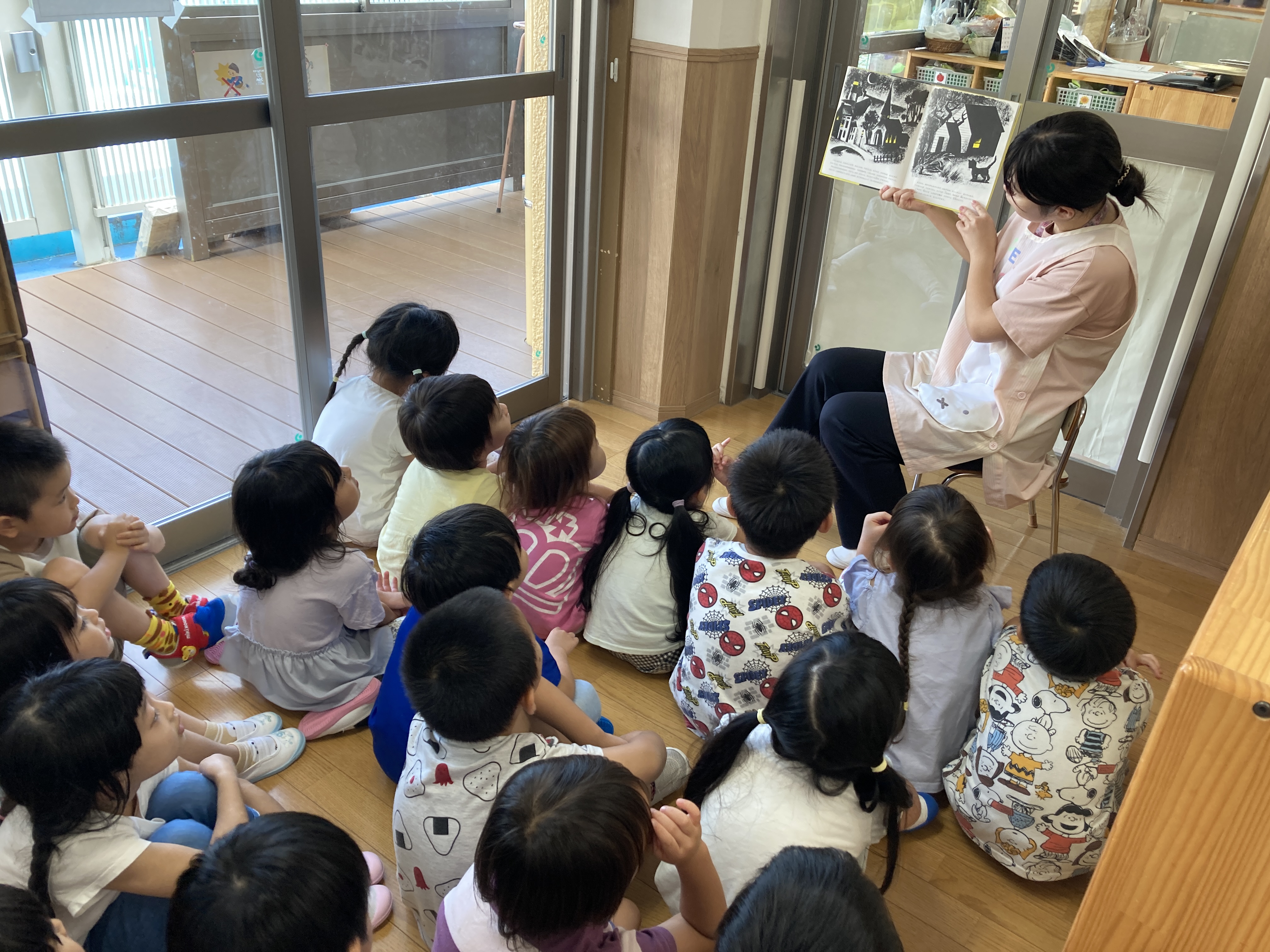 給食前は、先生の読み聞かせ。大好きな時間です。