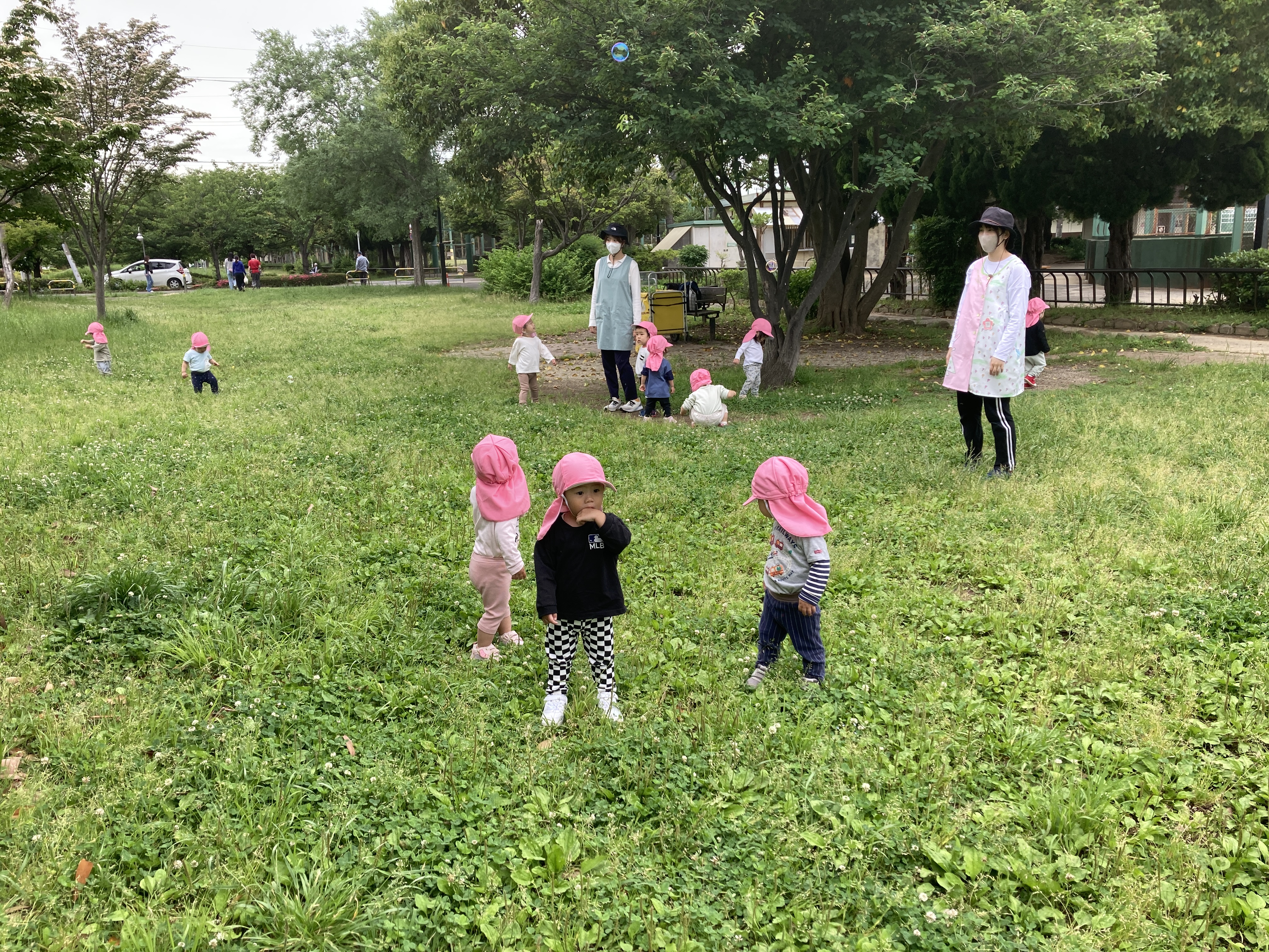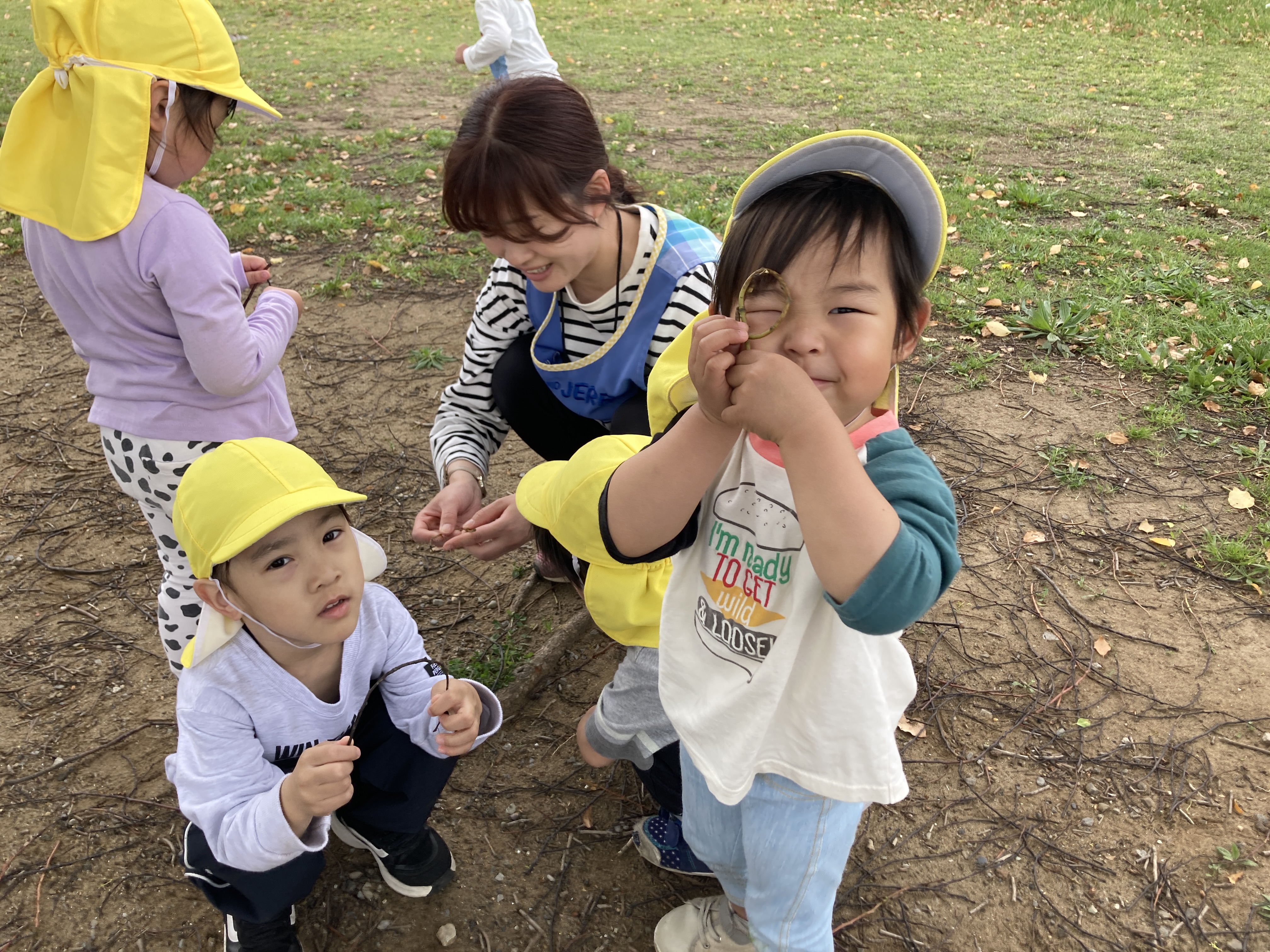 気候のいい時は、散歩もたくさんしています。園付近には緑道や大きな篠崎公園があり、自然の移り変わりを感じられます。